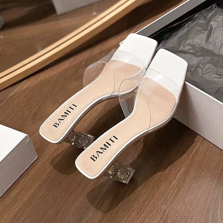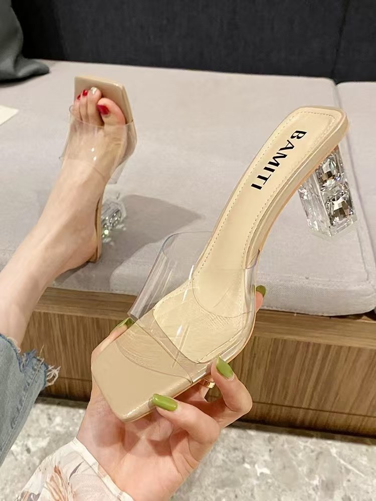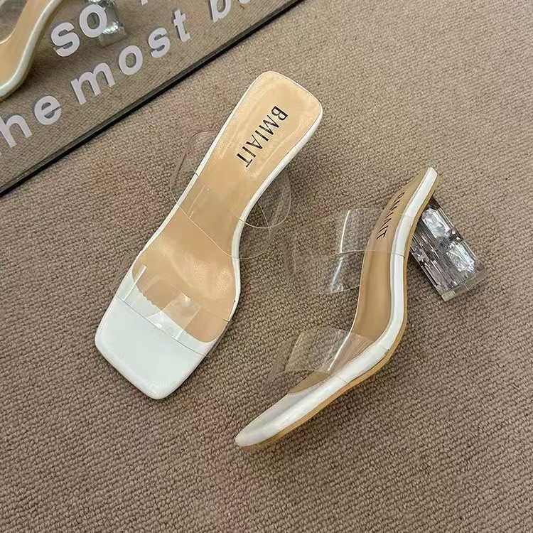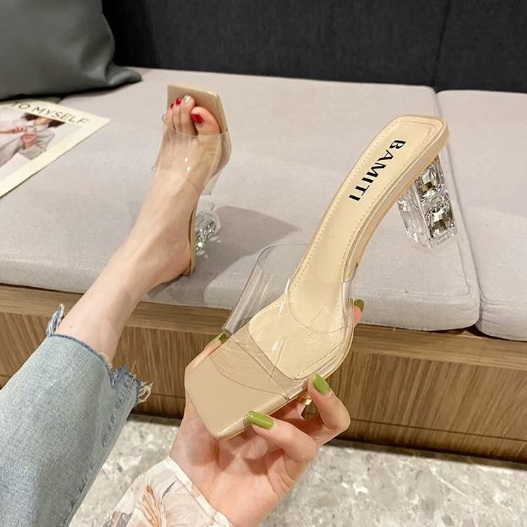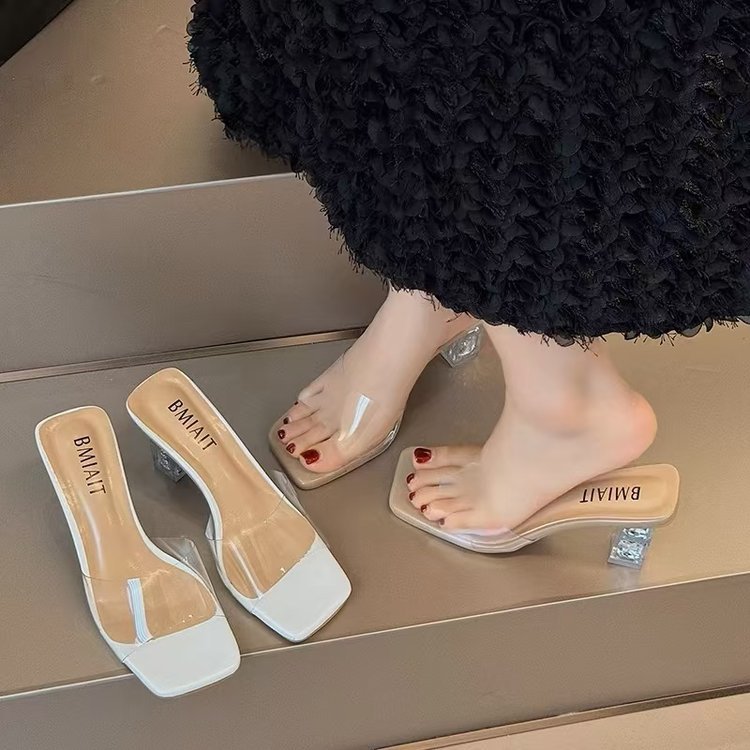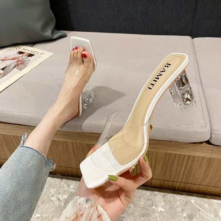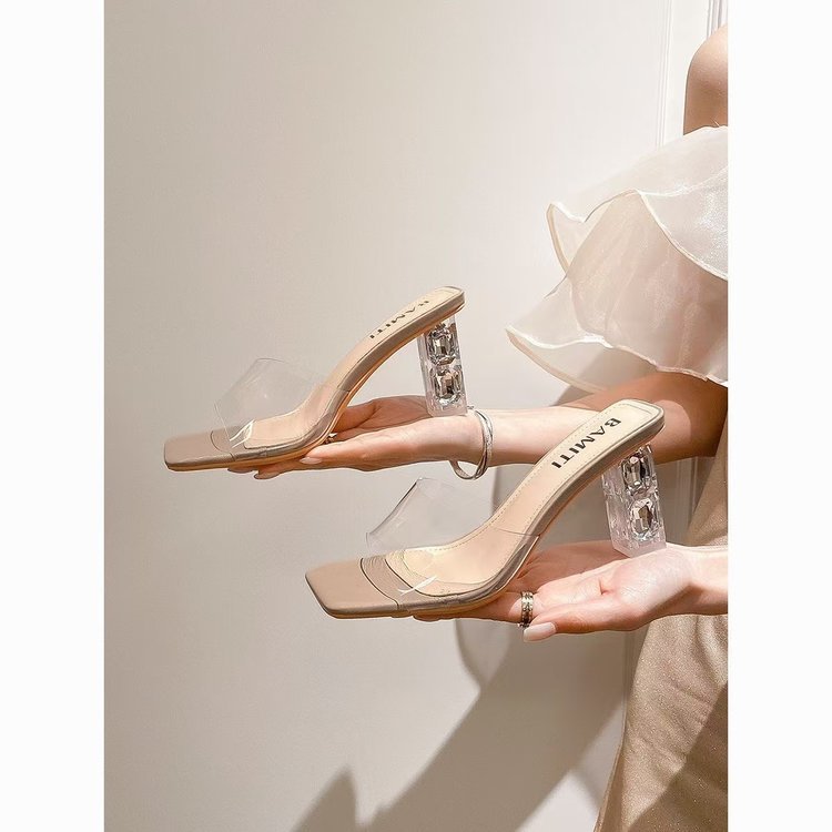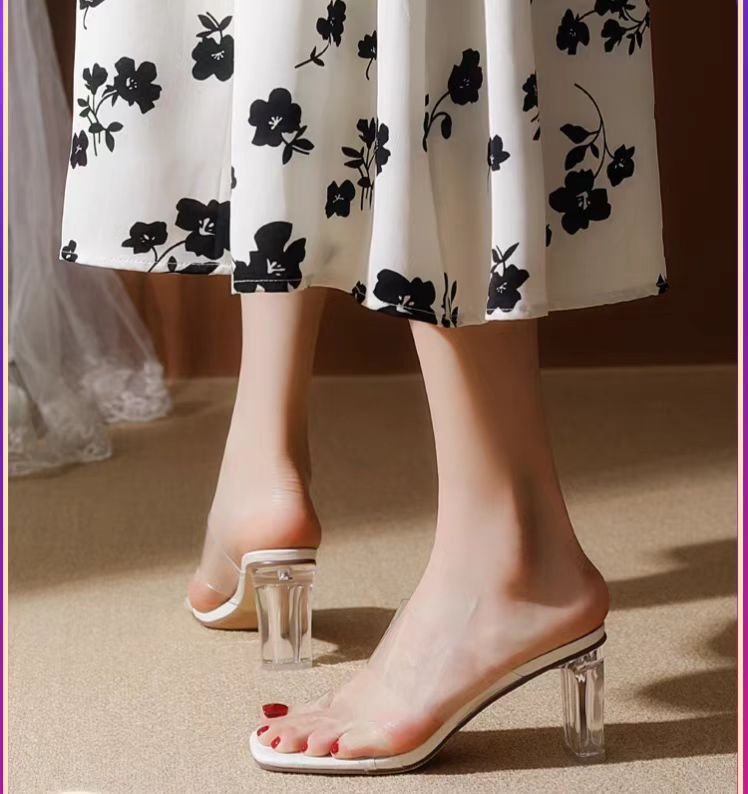 투명한 부드러운 접착제 겉옷 여자를위한 오픈 발가락 샌들 2024 새로운 크리스탈 하이힐 우아한 섹시한 청키 힐 샌들스토어 가기
