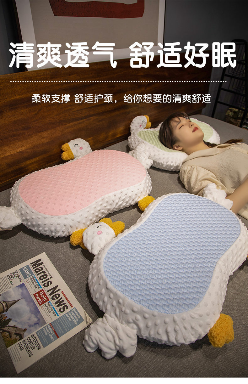 라이브 인터넷 축하 아이스 실크 Doudou 큰 구스 베개 여름 시원한 고양이 배 베개 메모리 면 자궁 경부 척추 보호는 수면을 돕습니다