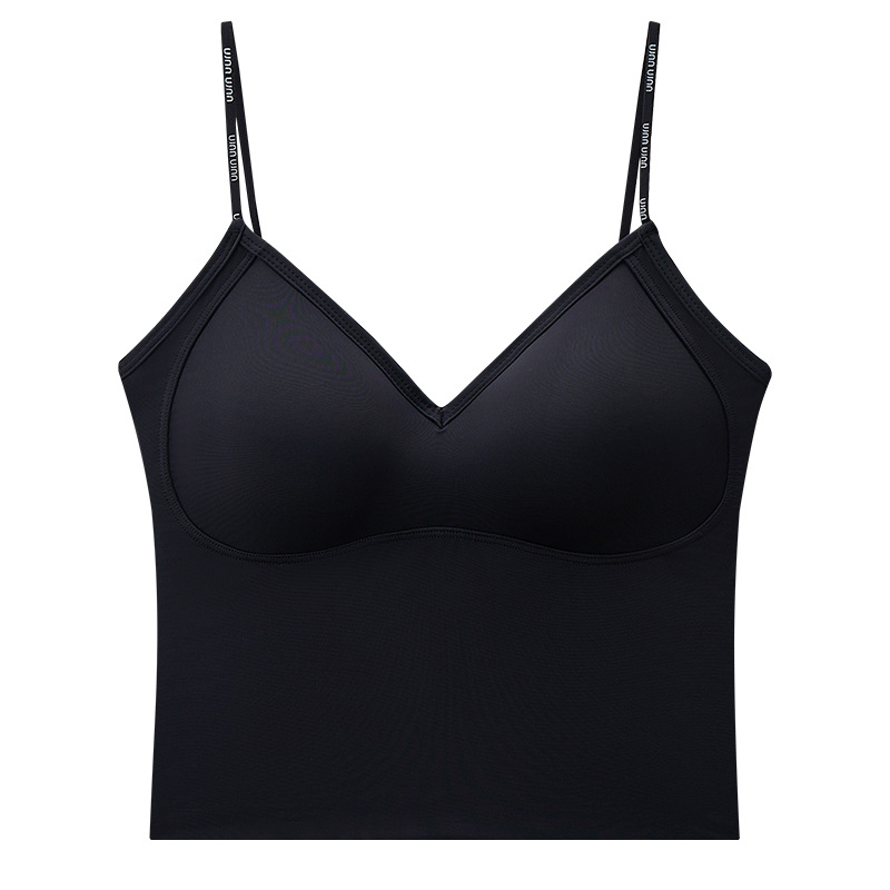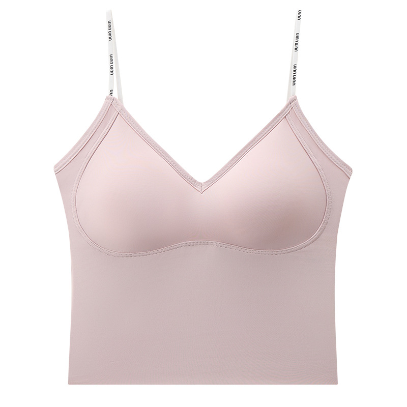 봄과 여름 2025 새로운 아름다운 백 슬링 레터 어깨 스트랩 원활한 아이스 실크 조끼 작은 가슴은 큰 내부 튜브 탑을 모았습니다.