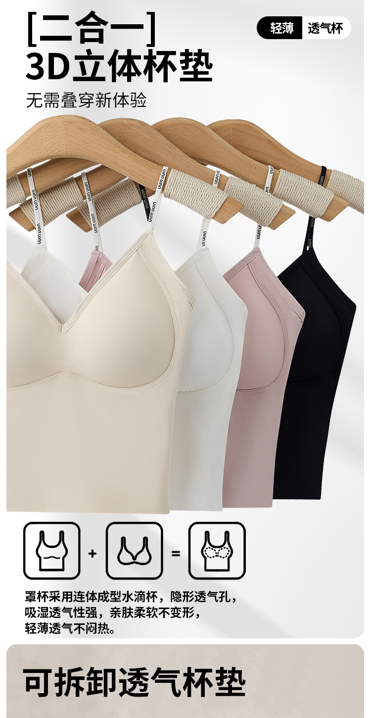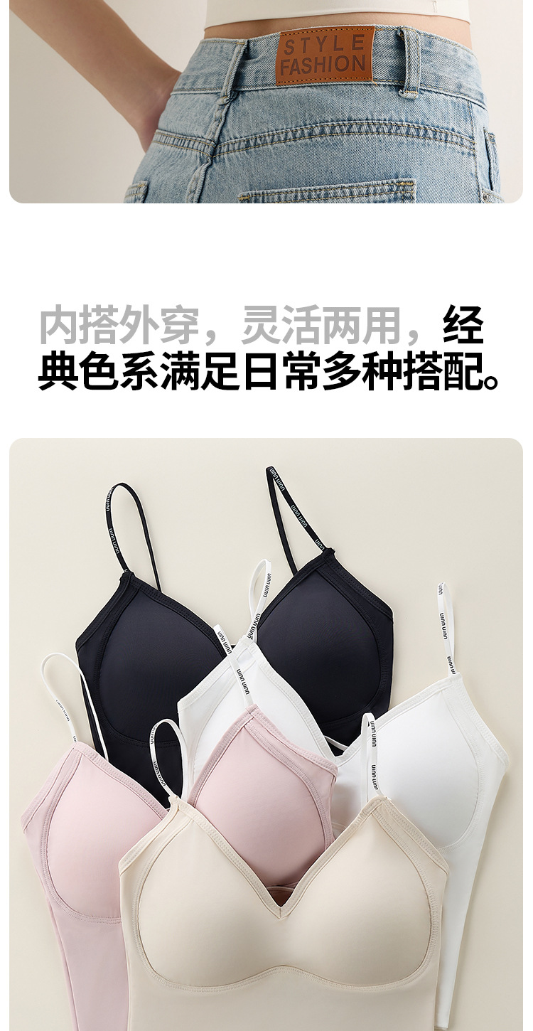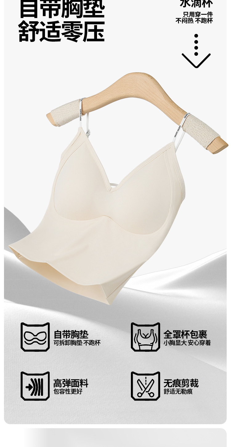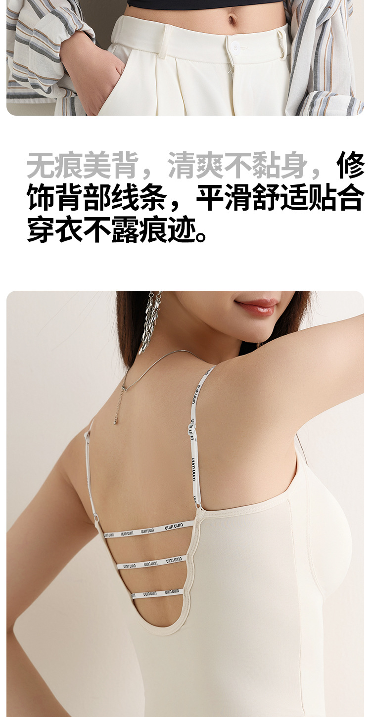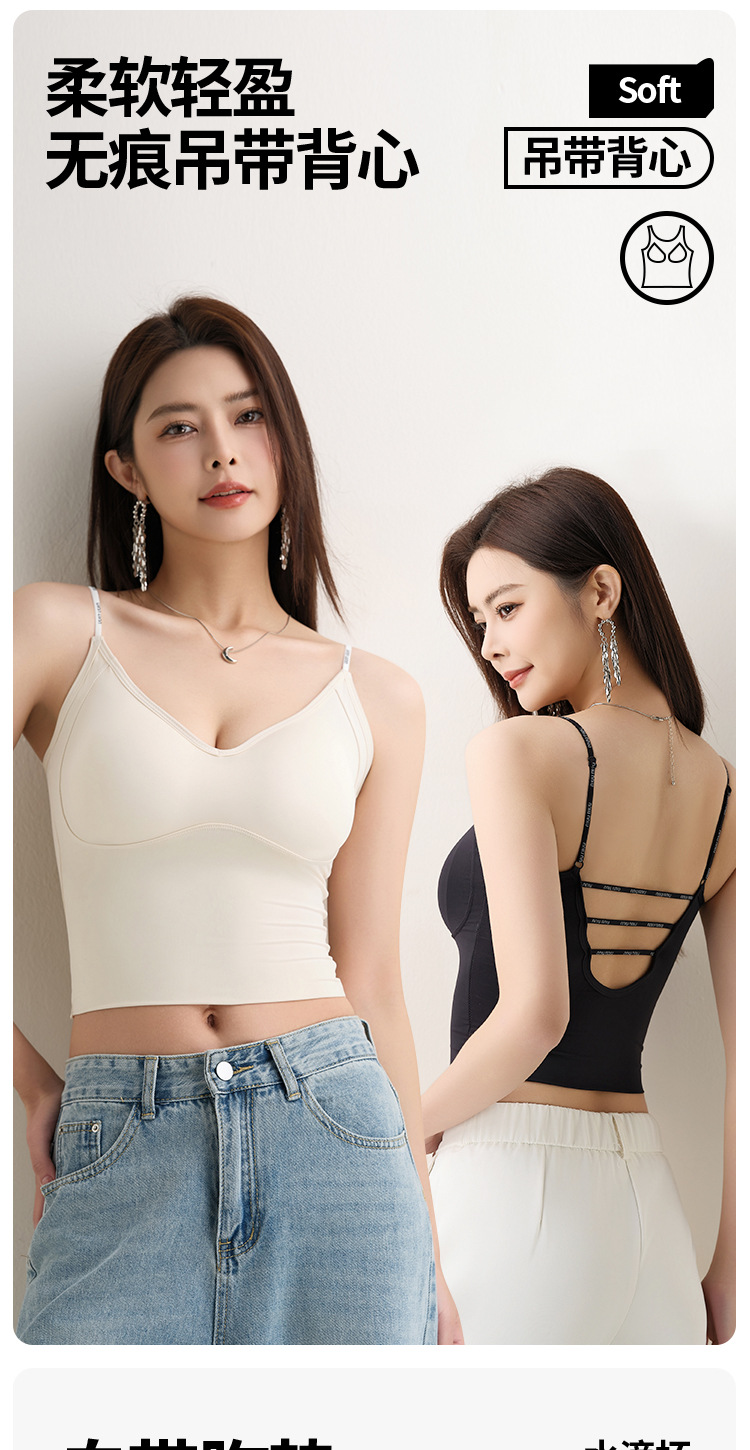 봄과 여름 2025 새로운 아름다운 백 슬링 레터 어깨 스트랩 원활한 아이스 실크 조끼 작은 가슴은 큰 내부 튜브 탑을 모았습니다.스토어 가기