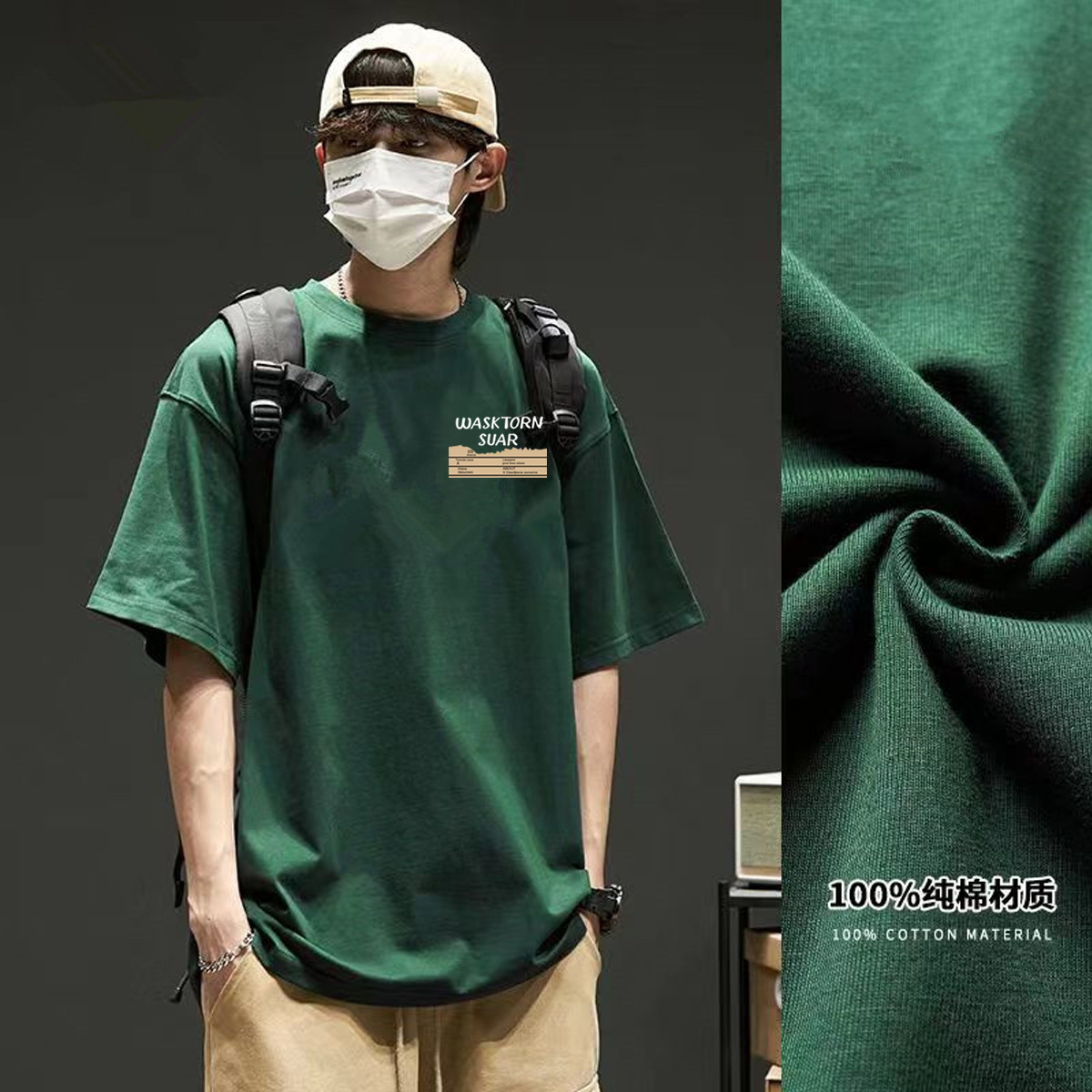 헤비 코튼 티셔츠 남성용 반팔 여름 새 인쇄 라운드 넥 반소매 루즈 탑 캐주얼 티셔츠스토어 가기