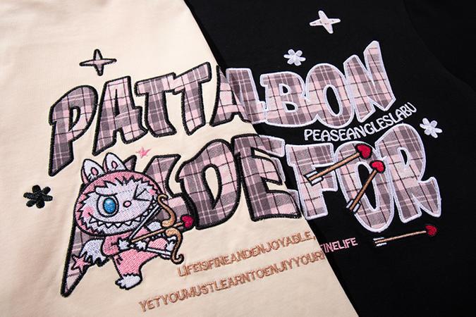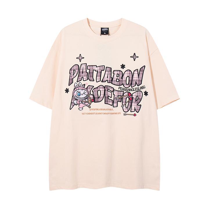 미국 스타일 유행 브랜드 만화 자수 라부부 반팔 티셔츠 하이 스트리트 스위트 쿨 스타일 올 매치 반소매 탑 남녀 커플스토어 가기