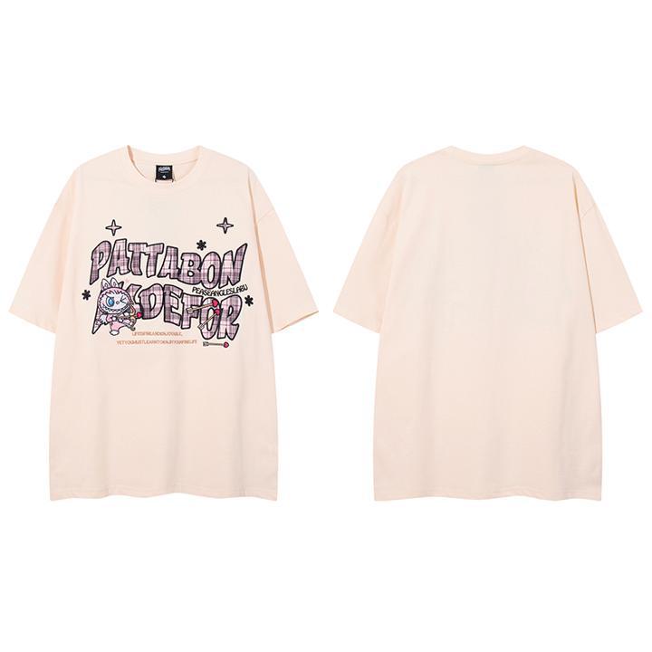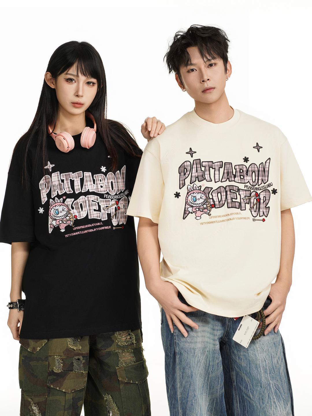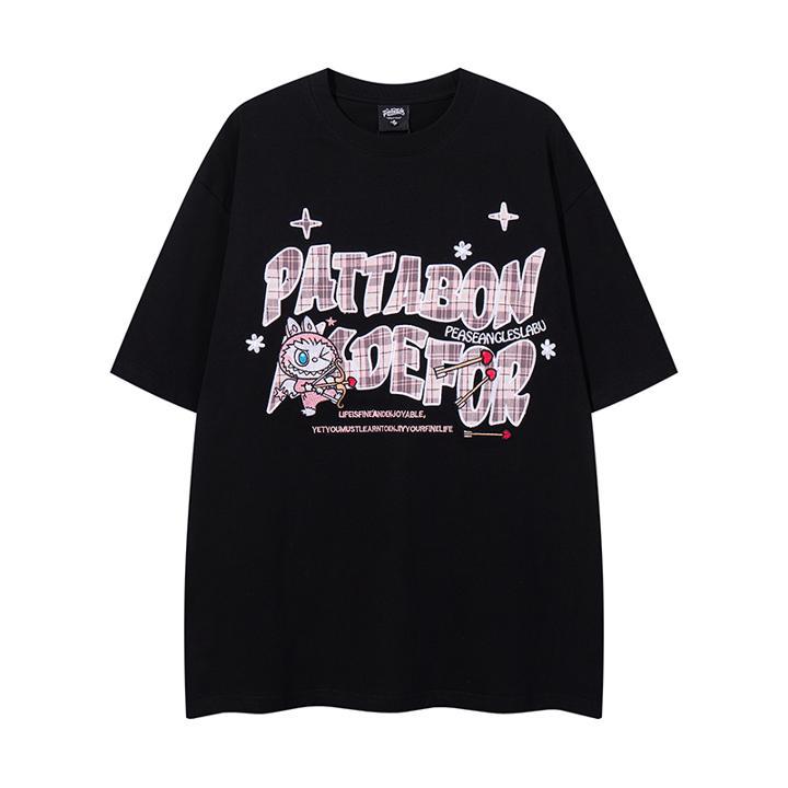 미국 스타일 유행 브랜드 만화 자수 라부부 반팔 티셔츠 하이 스트리트 스위트 쿨 스타일 올 매치 반소매 탑 남녀 커플