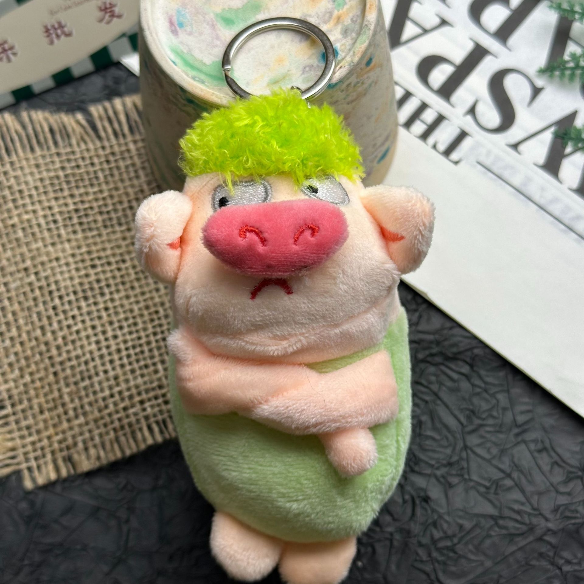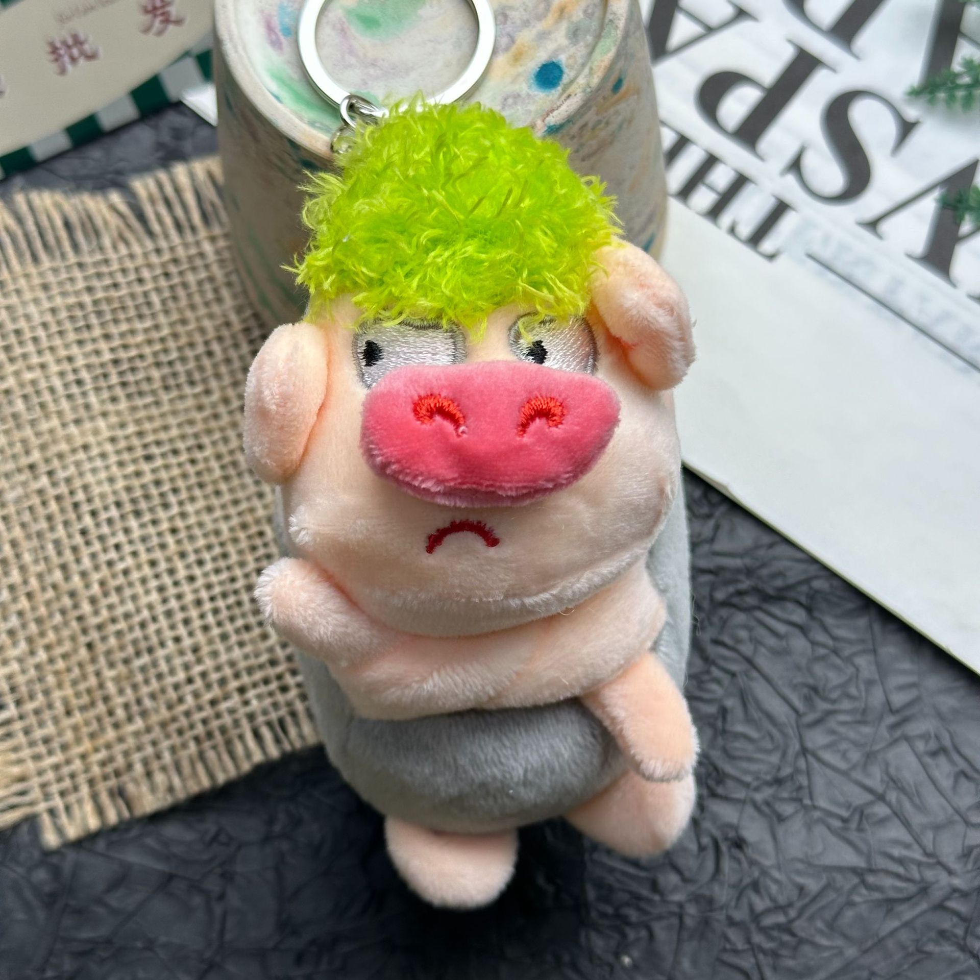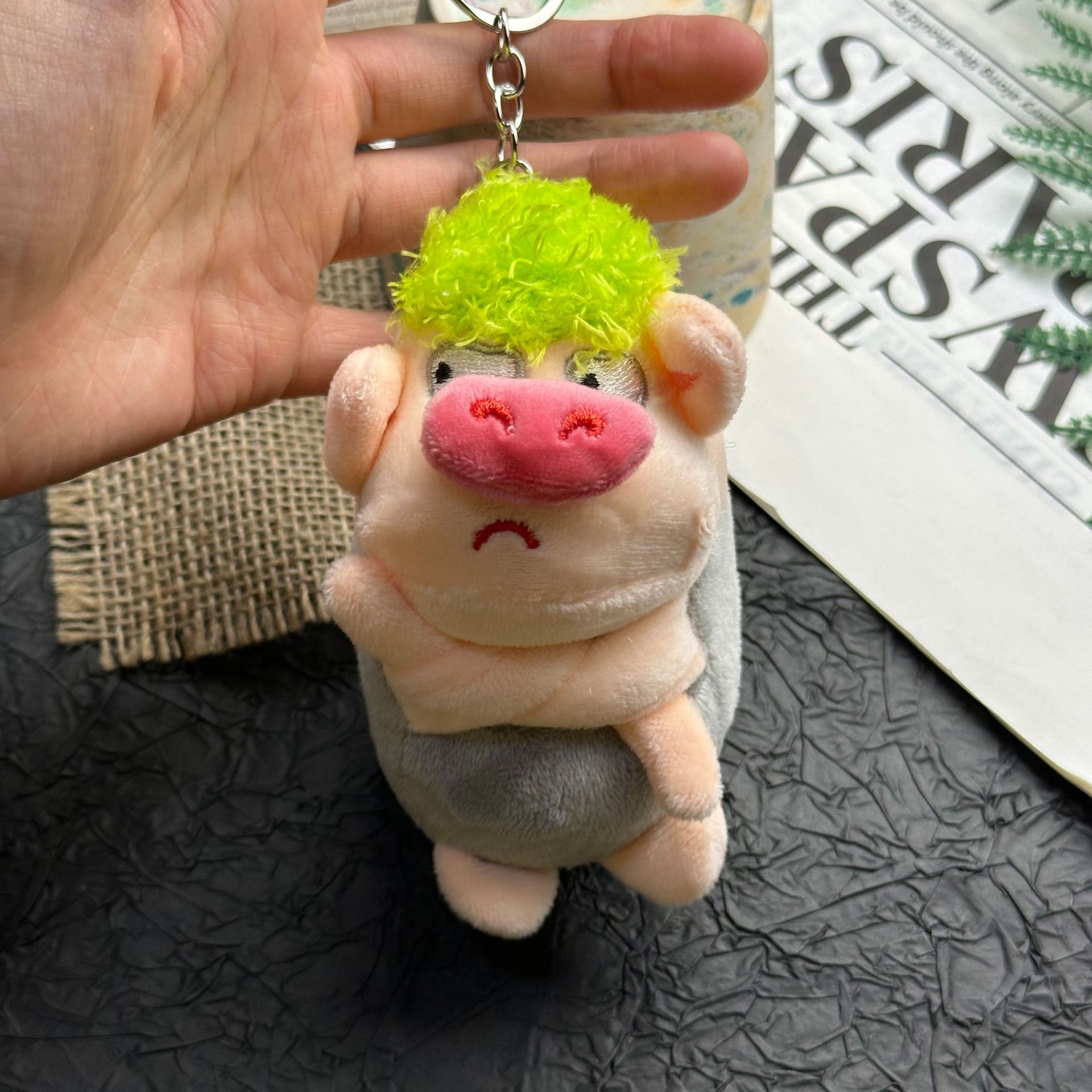 귀엽고 화난 돼지 인형, 푹신한 장난감, 돼지 키링, 책가방 장식, 재미있는 녹색 돼지 인형