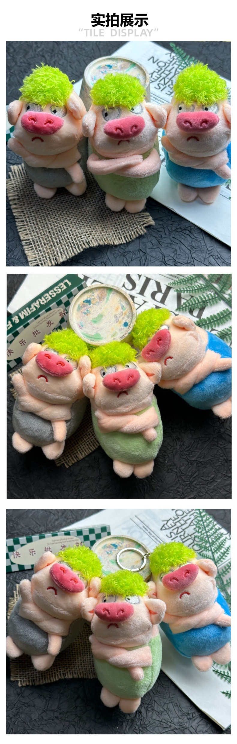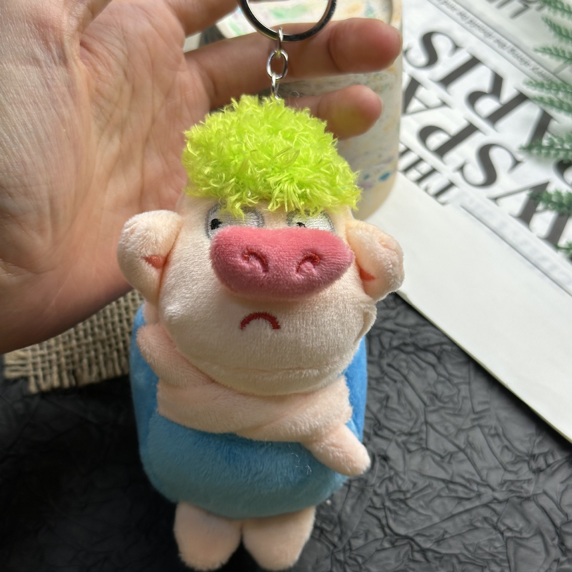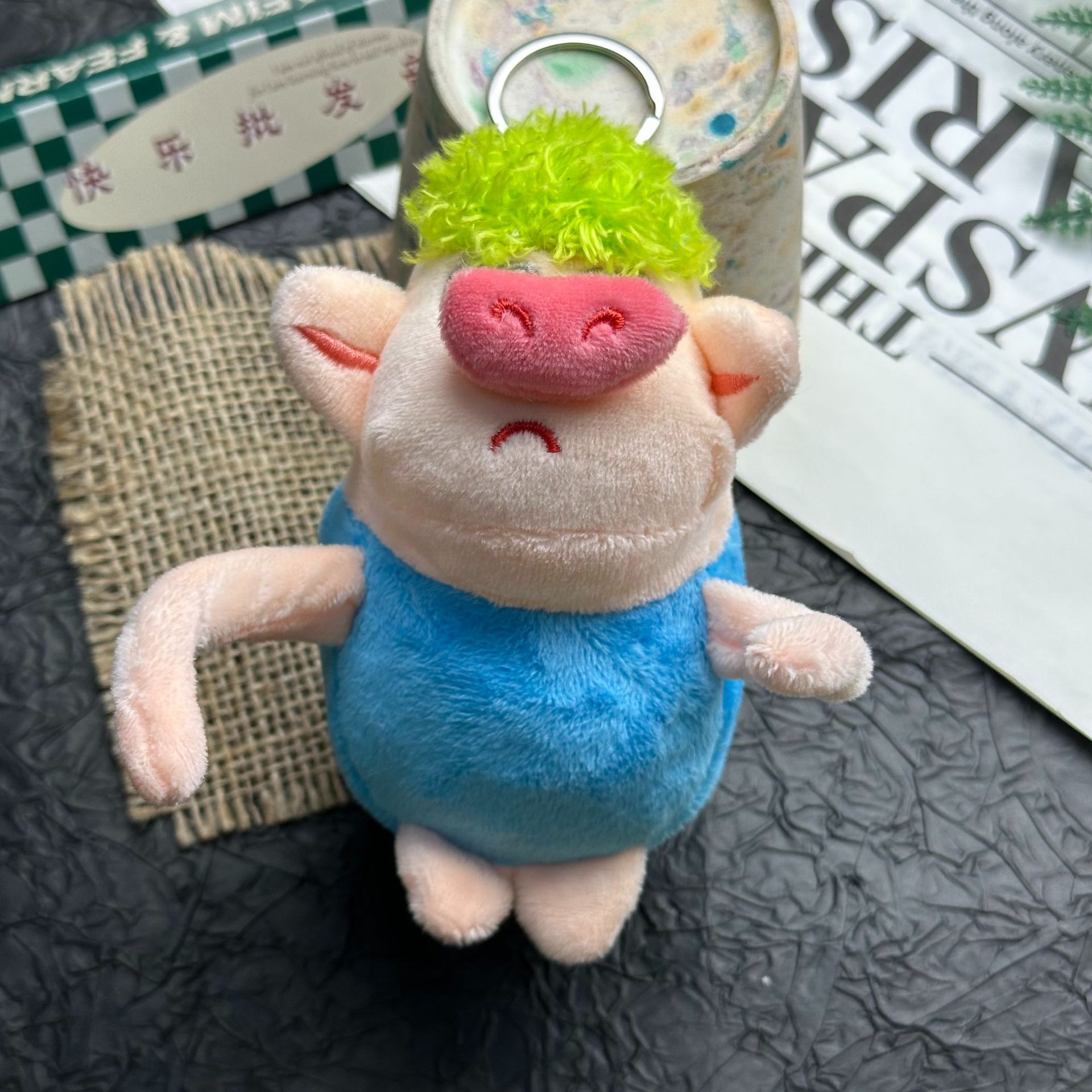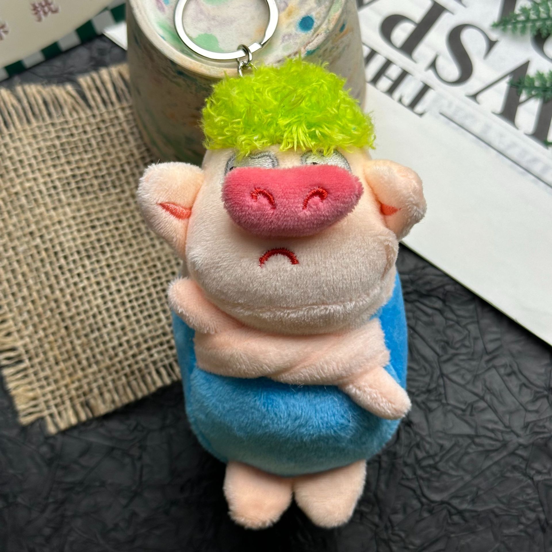 귀엽고 화난 돼지 인형, 푹신한 장난감, 돼지 키링, 책가방 장식, 재미있는 녹색 돼지 인형