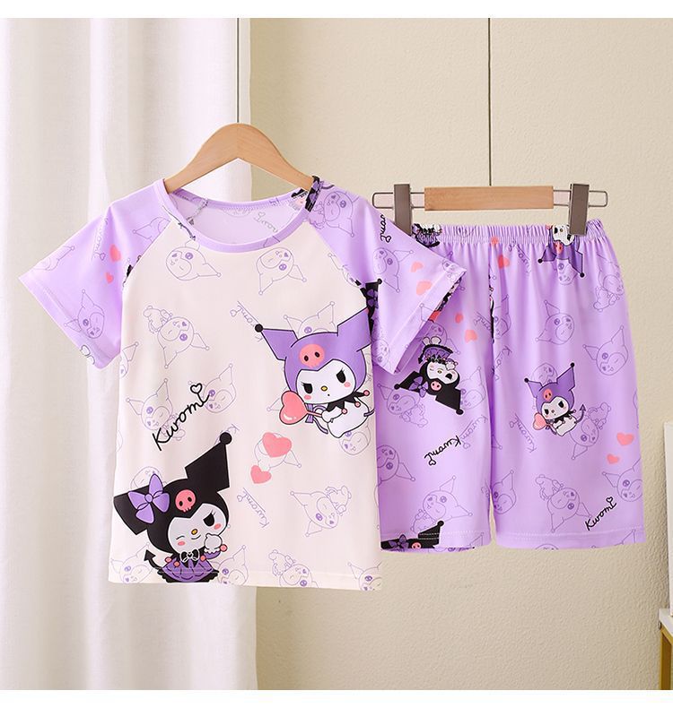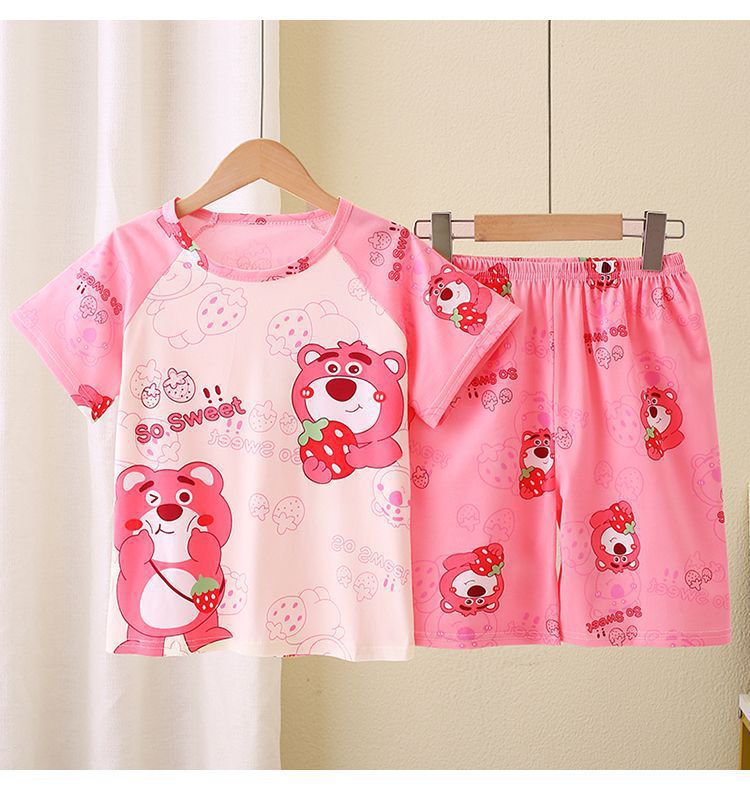 어린이 잠옷 소녀 얇은 여름 반팔 귀여운 만화 작은 소년의 집 옷 세트 국경 배치스토어 가기