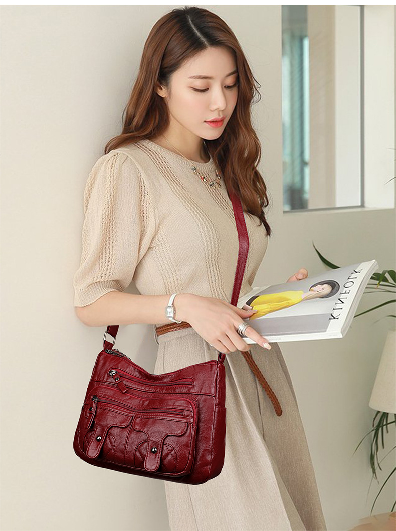 아마존 패션 사계절 소프트 가죽 멀티 구획 멀티 포켓 하이 엔드 센스 멀티 레이어 어깨 크로스 바디 백 여성용 가방