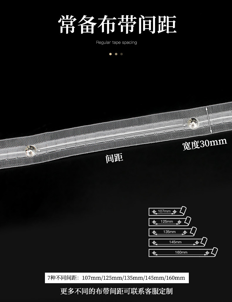 창 스크린 물 커튼 S 폴드 천 벨트 용 보이지 않는 천 벨트가있는 다양한 간격 3cm 투명 뱀 커튼스토어 가기