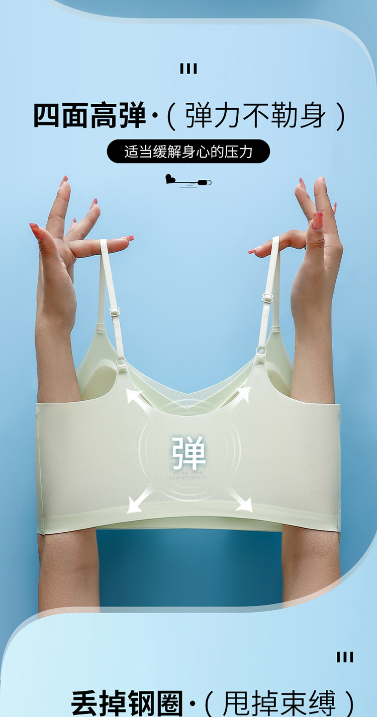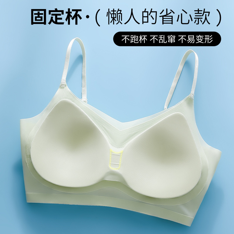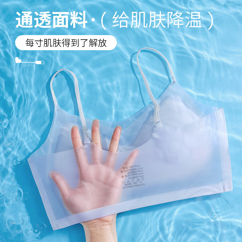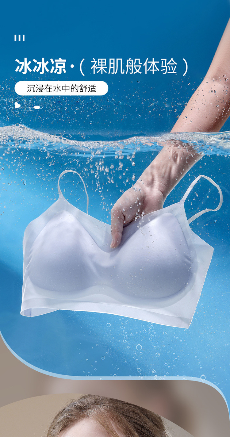 부드럽고 아름다운 ~ 아이스 실크 심리스 브라 여성용 아름다운 백 슬링 랩 브라 탑업 고정 컵 얇은 수면 브라스토어 가기