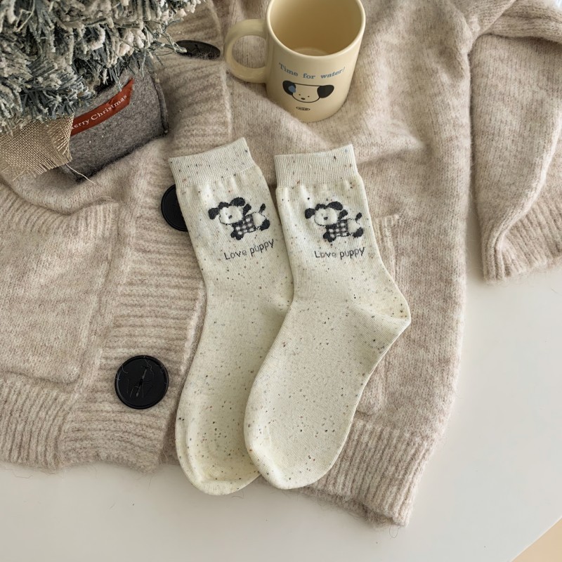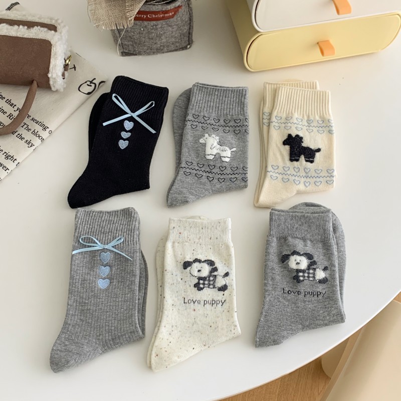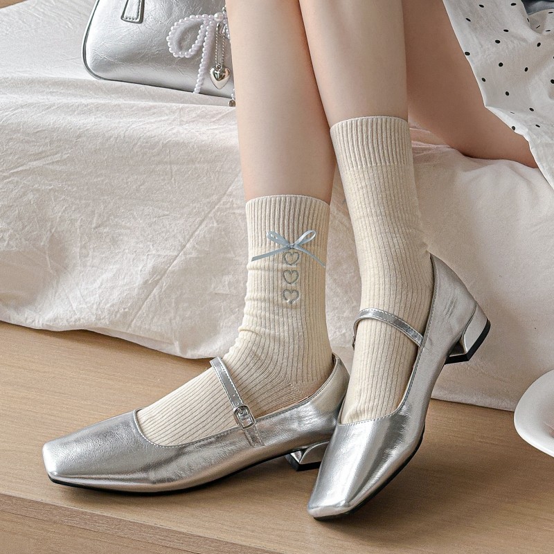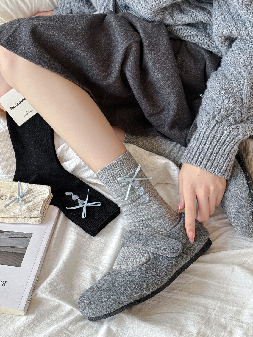 양말 여성의 봄과 여름 자수 사랑 회색 튜브 양말 miu 스타일 공정한 섬 나비 더미 복고풍 여성 양말