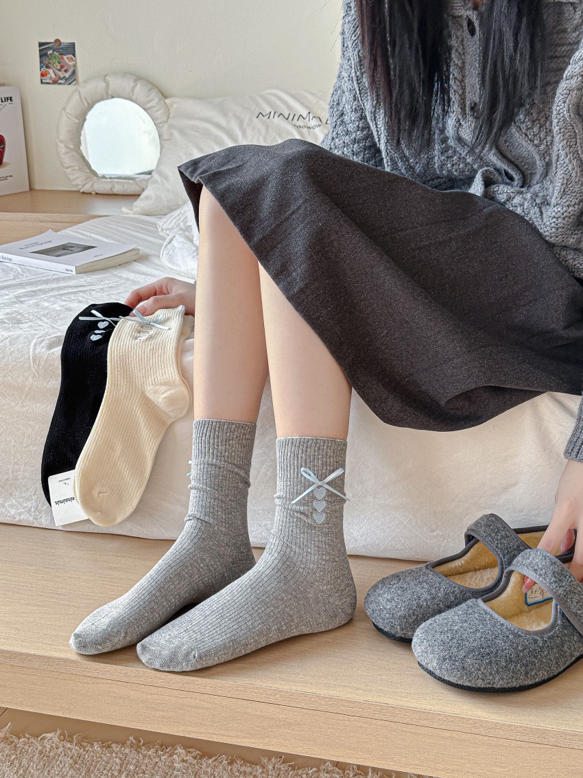 양말 여성의 봄과 여름 자수 사랑 회색 튜브 양말 miu 스타일 공정한 섬 나비 더미 복고풍 여성 양말스토어 가기