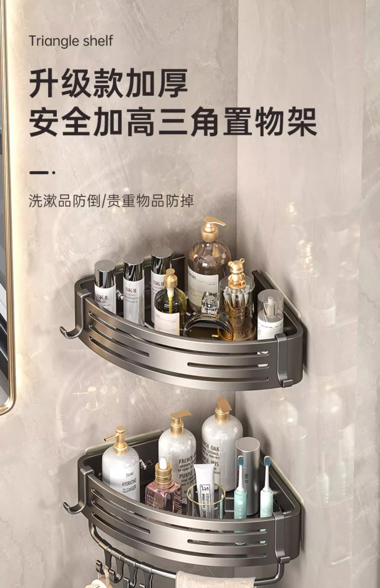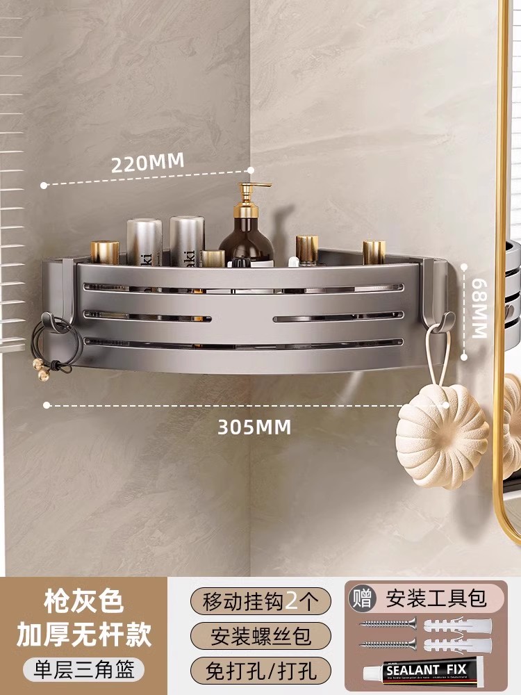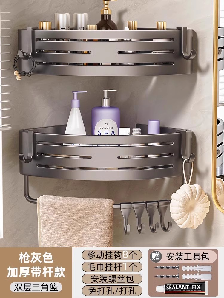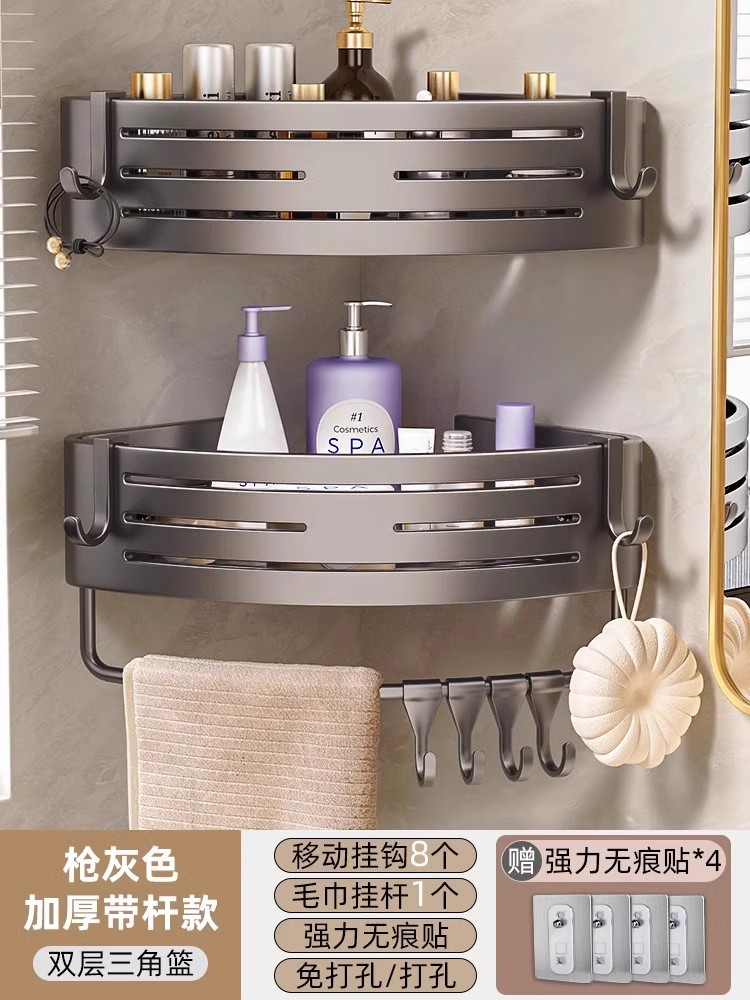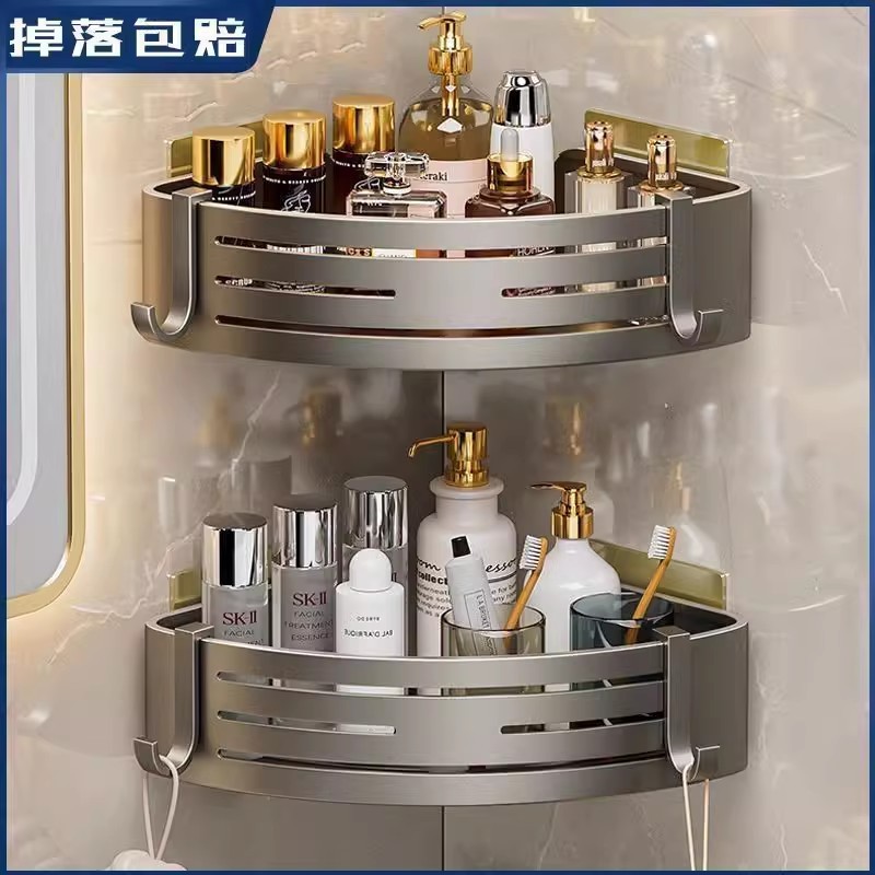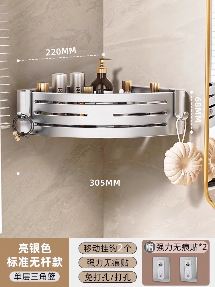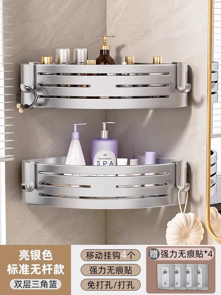 욕실 보관 랙 펀치 프리 화장실 삼각형 바구니 벽걸이 형 선반 화장실 보관 랙 코너 주방 공간 알루미늄스토어 가기