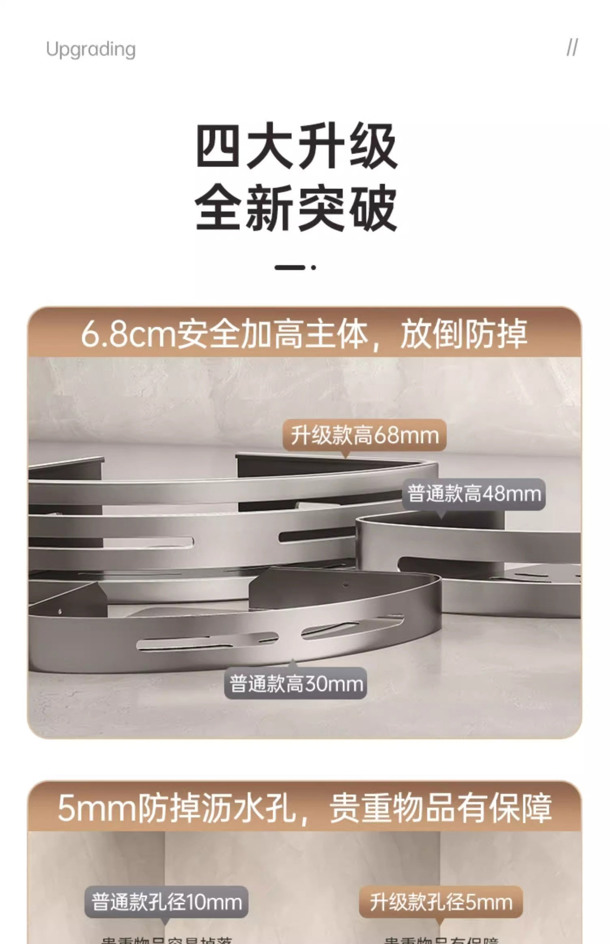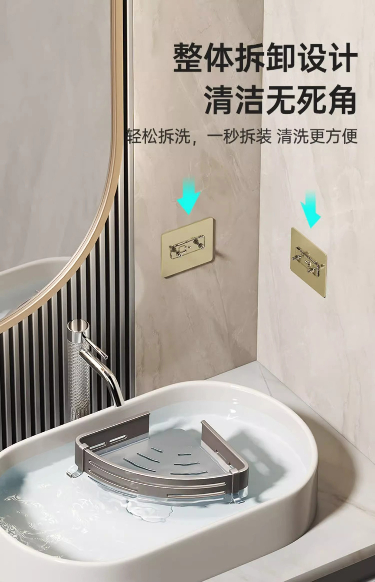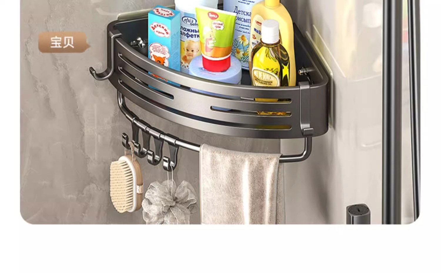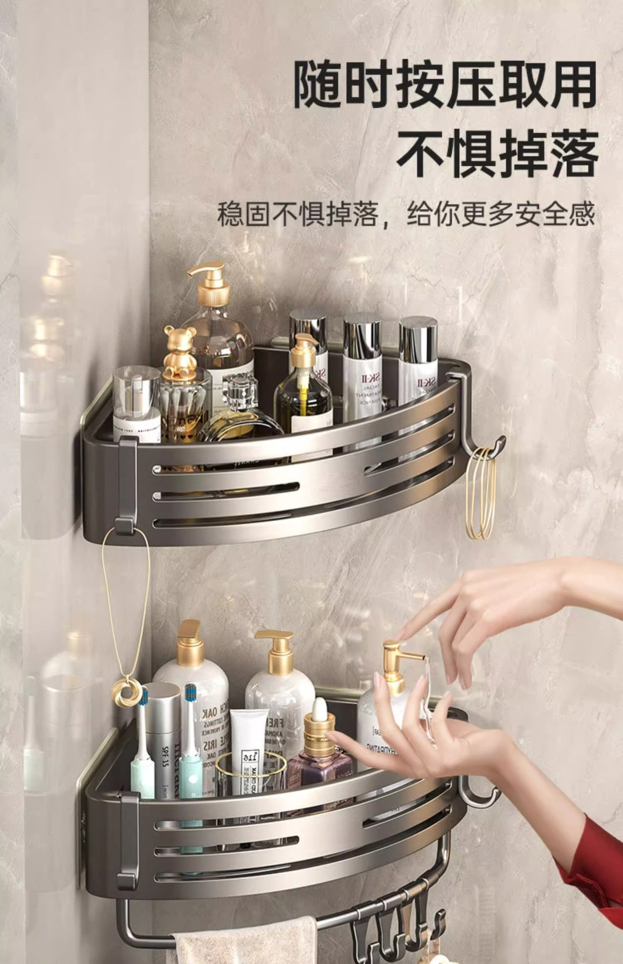 욕실 보관 랙 펀치 프리 화장실 삼각형 바구니 벽걸이 형 선반 화장실 보관 랙 코너 주방 공간 알루미늄스토어 가기