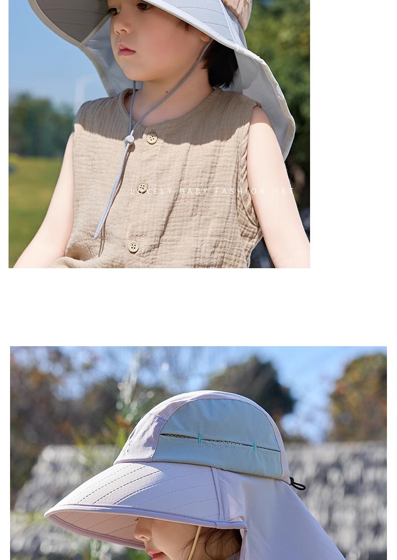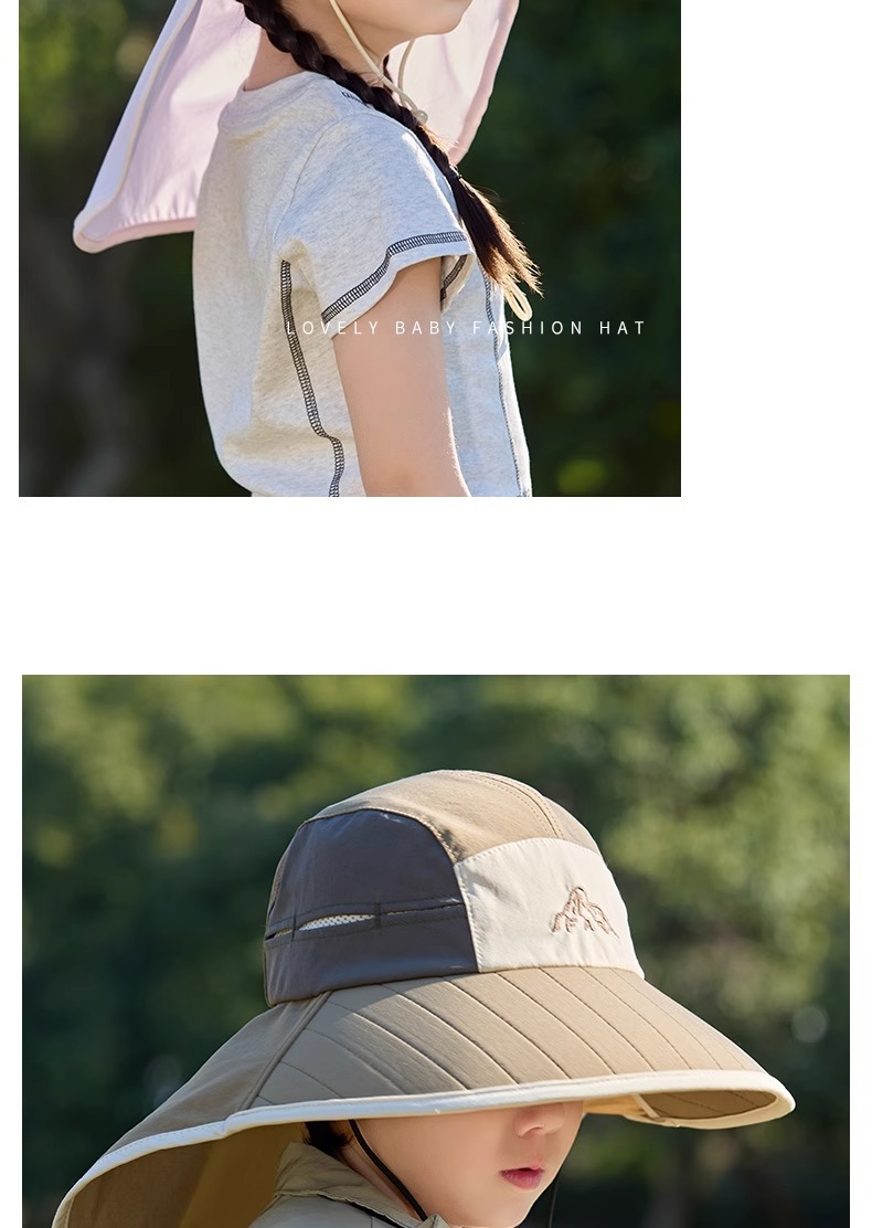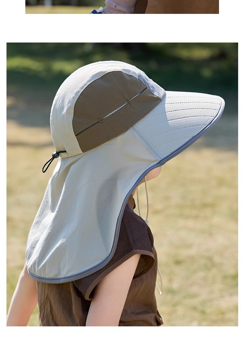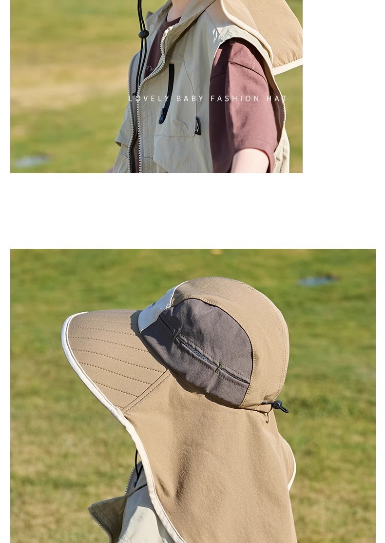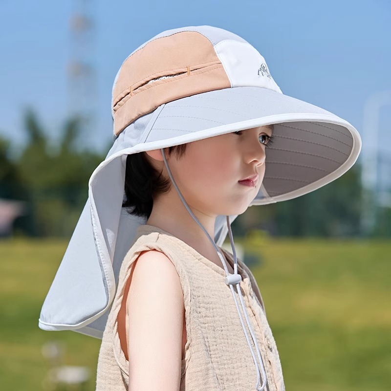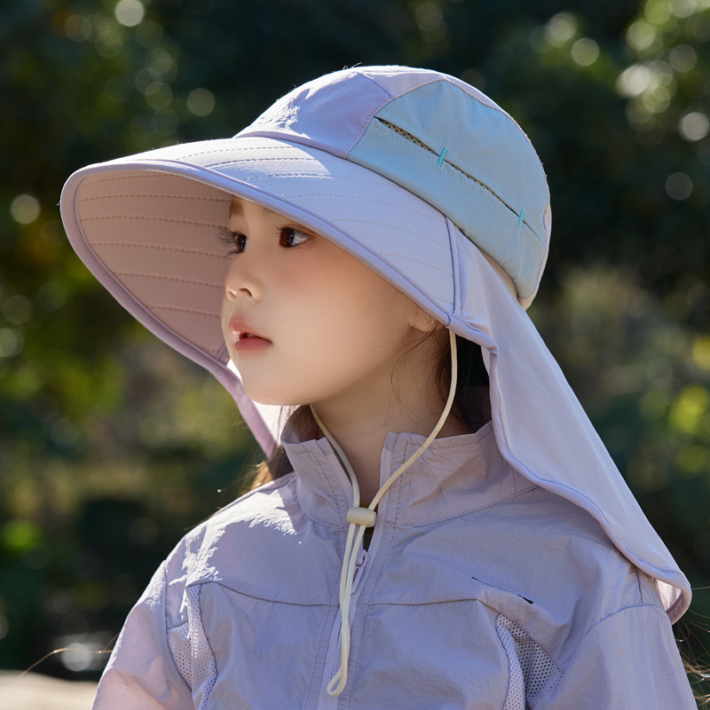 어린이 선 스크린 모자 봄과 여름 소년과 소녀 대조 색 목도리 어부 모자 태양 모자 목 보호 빠른 건조 태양 모자