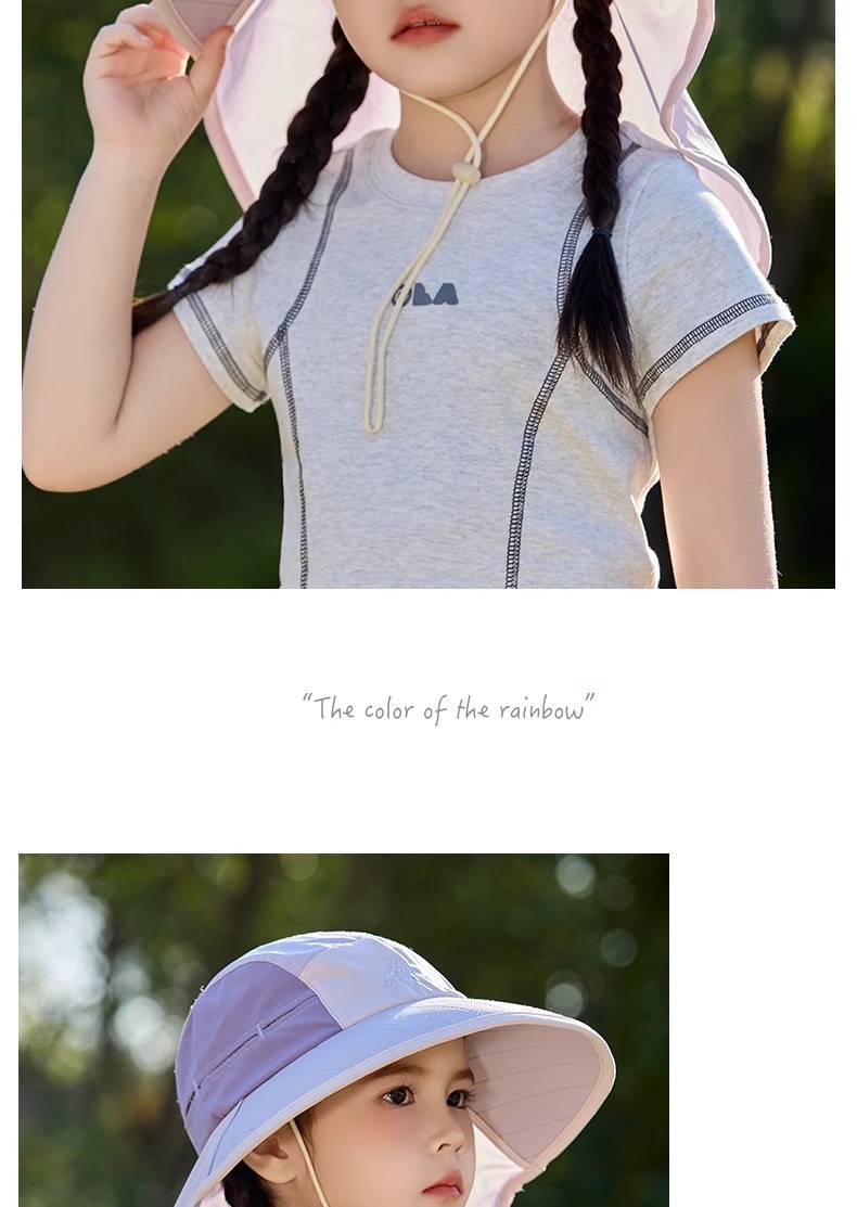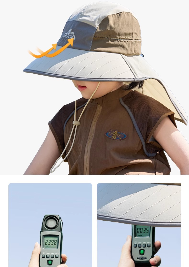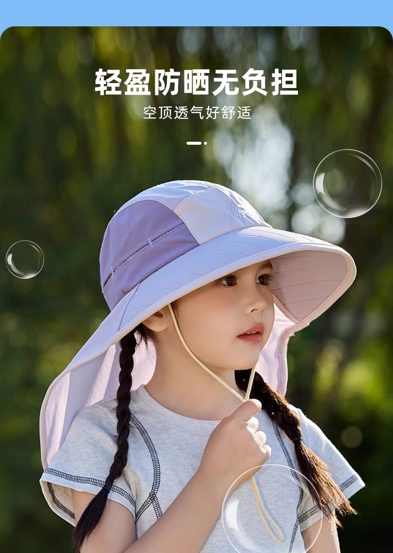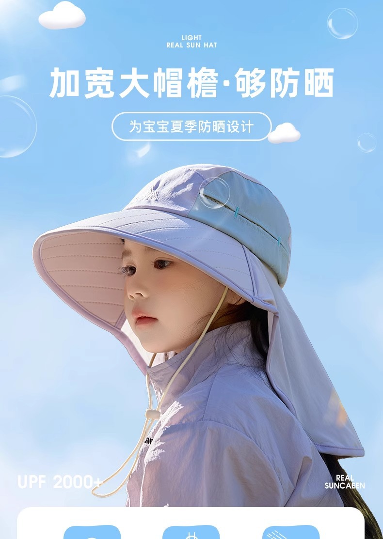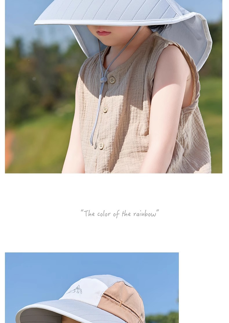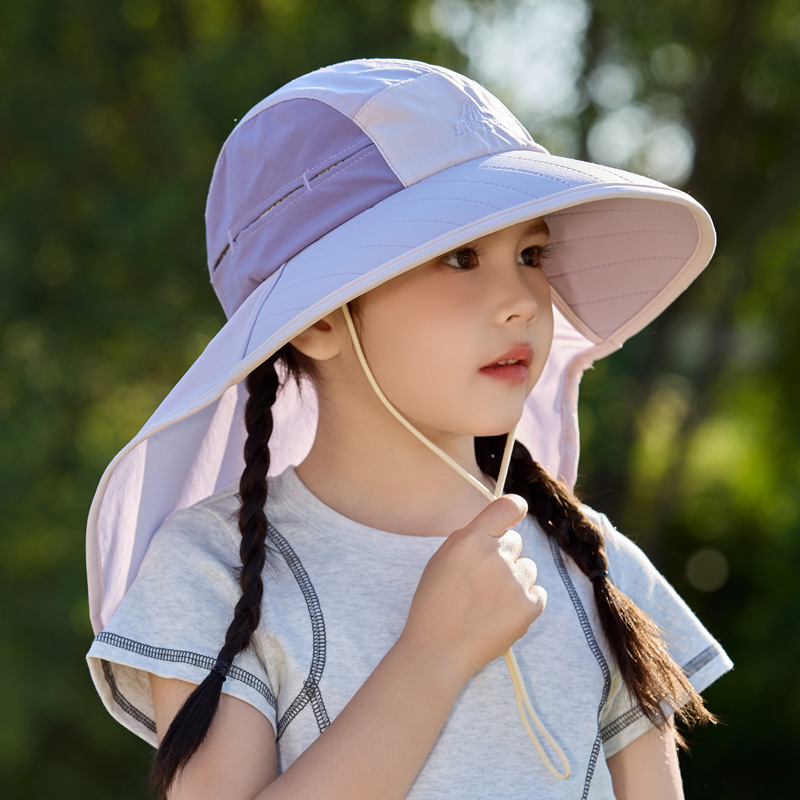 어린이 선 스크린 모자 봄과 여름 소년과 소녀 대조 색 목도리 어부 모자 태양 모자 목 보호 빠른 건조 태양 모자