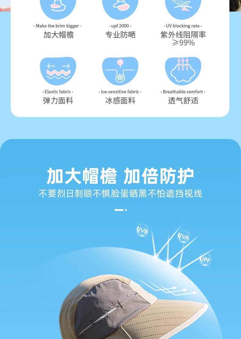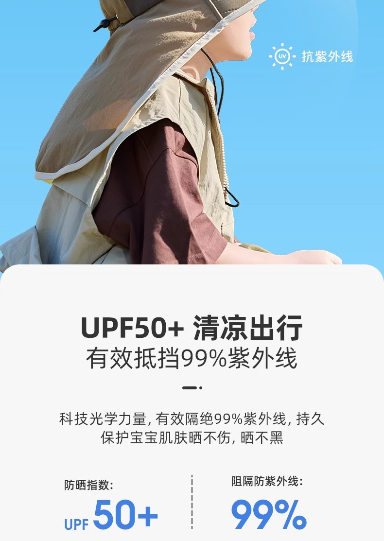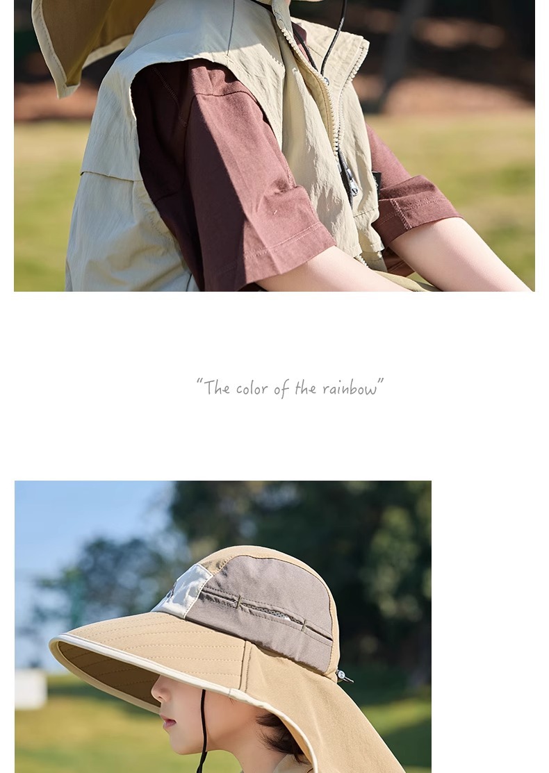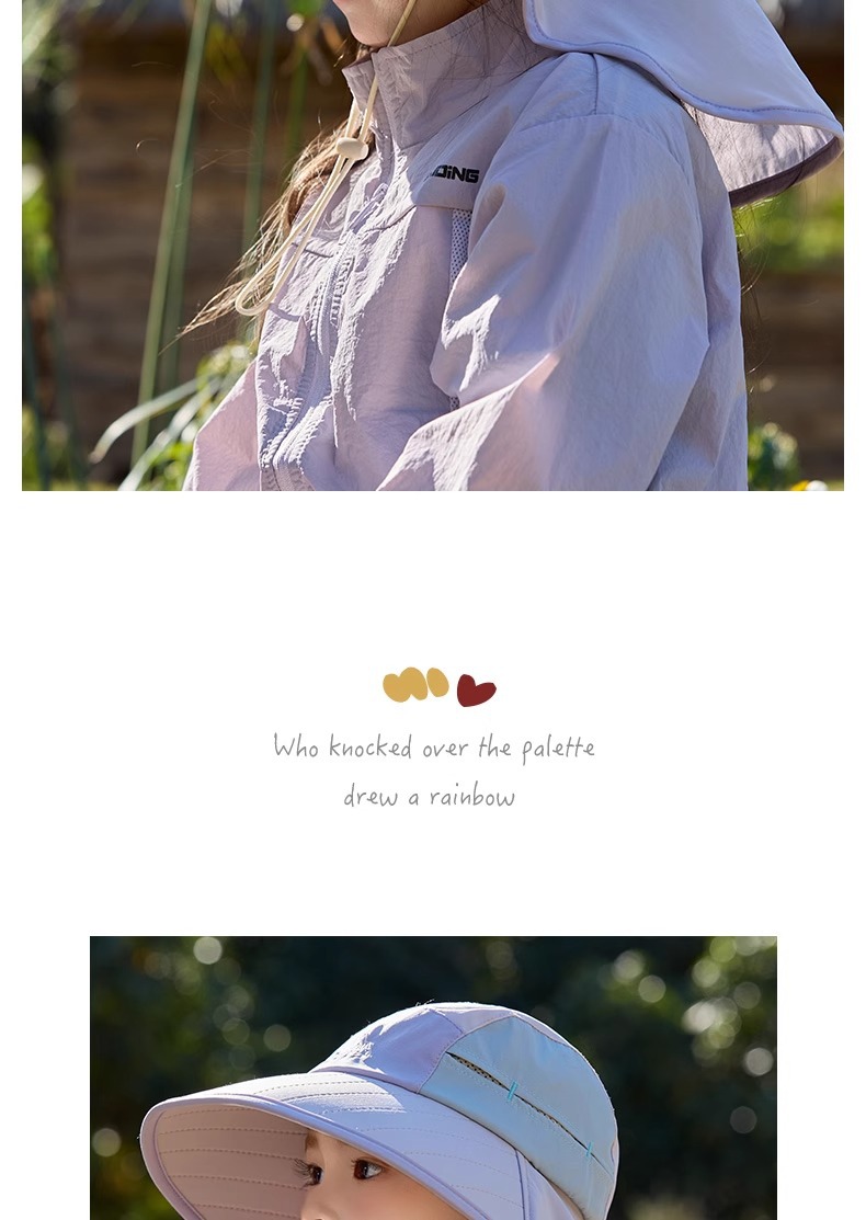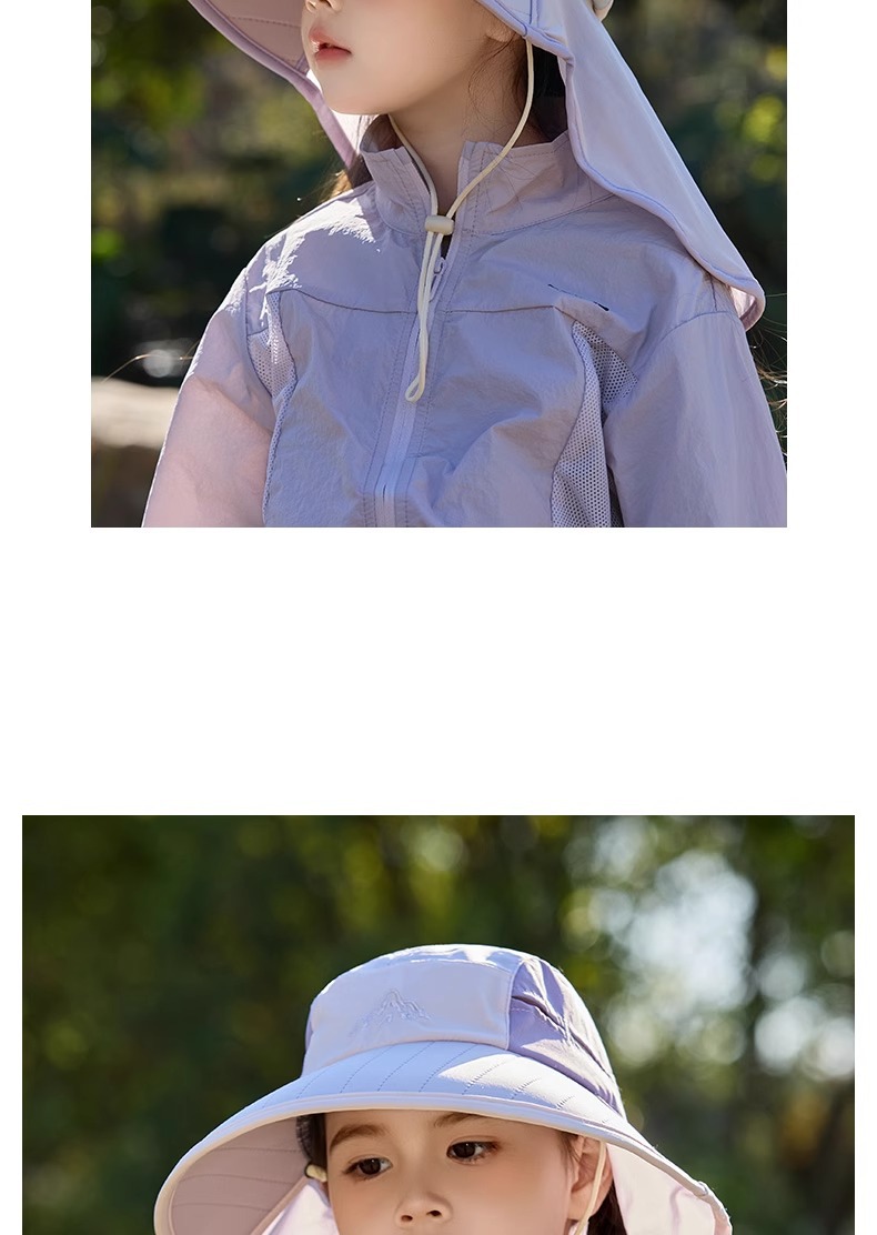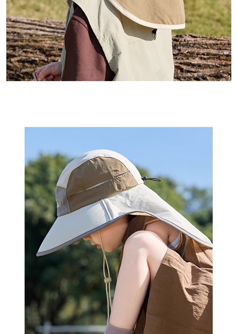 어린이 선 스크린 모자 봄과 여름 소년과 소녀 대조 색 목도리 어부 모자 태양 모자 목 보호 빠른 건조 태양 모자