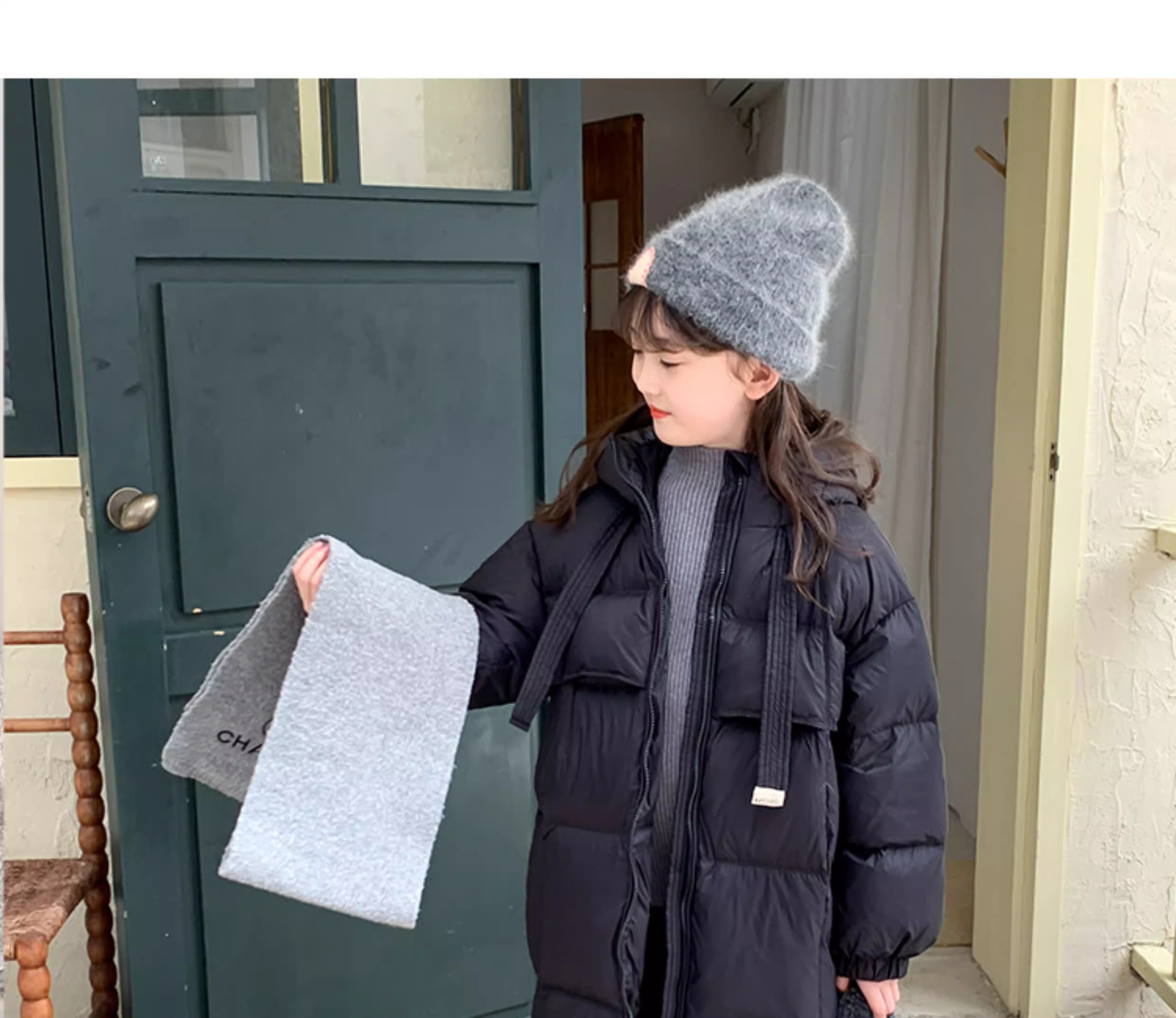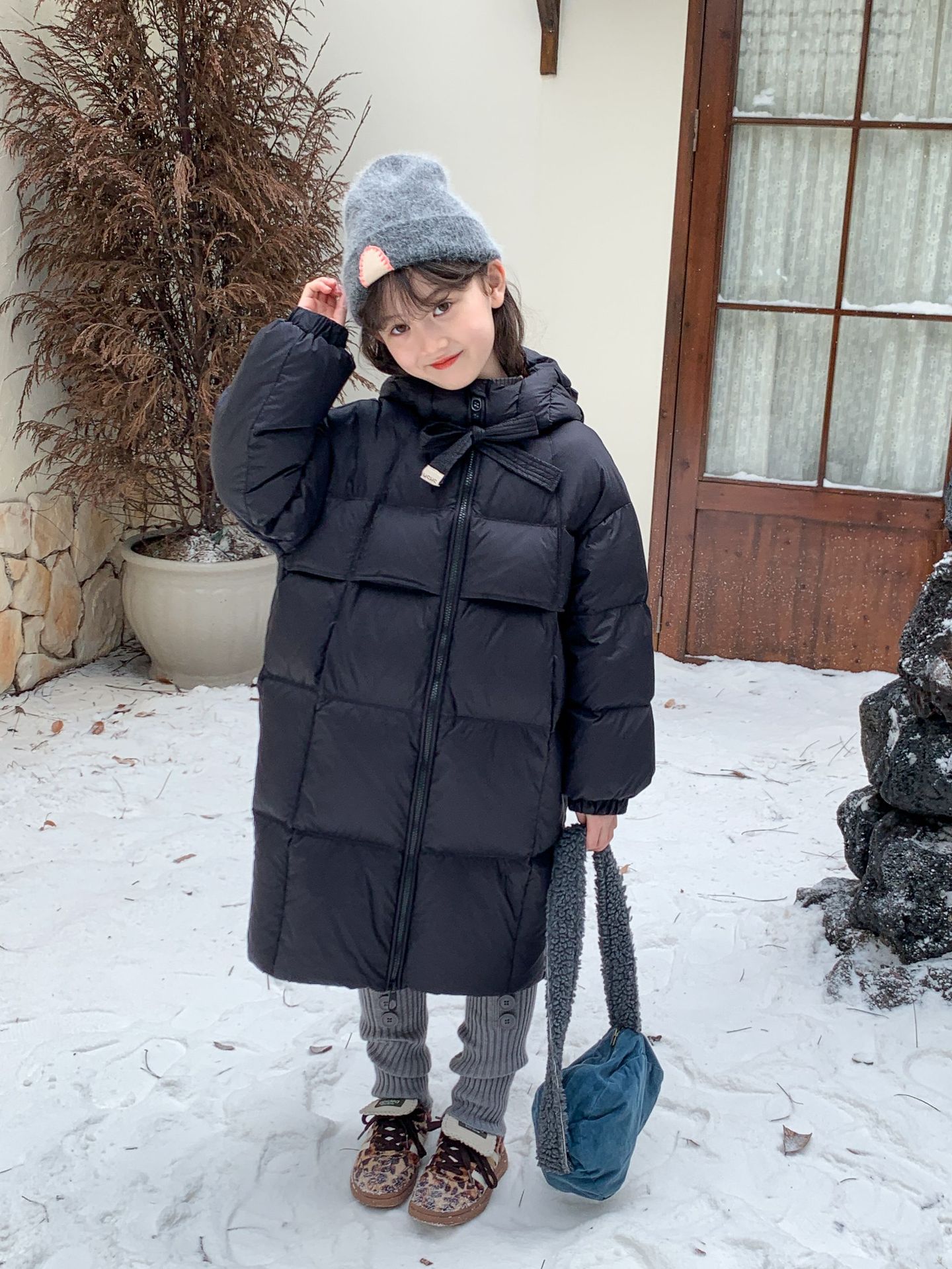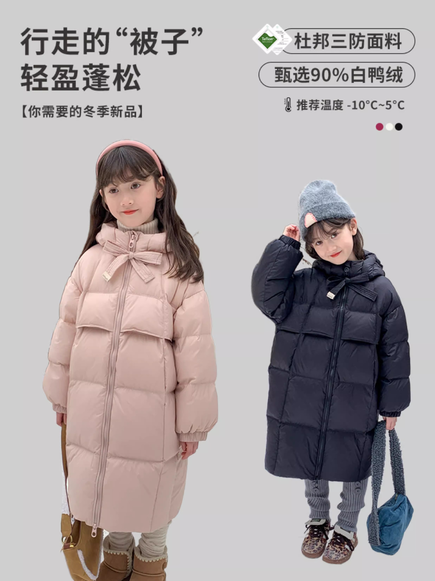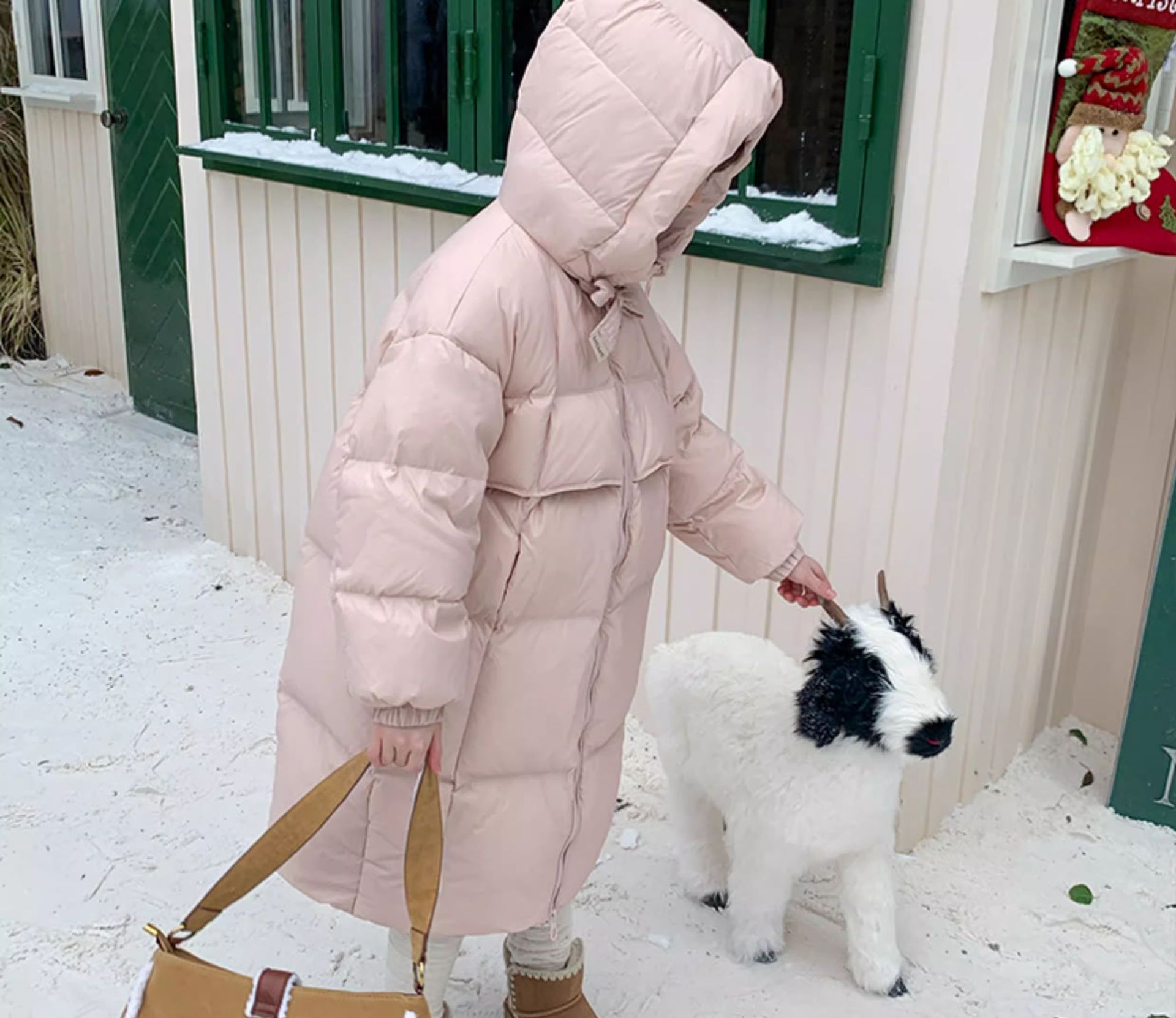 소녀 다운 재킷 2025 겨울 90 벨벳 새로운 GB 어린이를위한 3 가지 증거 두꺼운 중간 및 긴 무릎 자켓스토어 가기