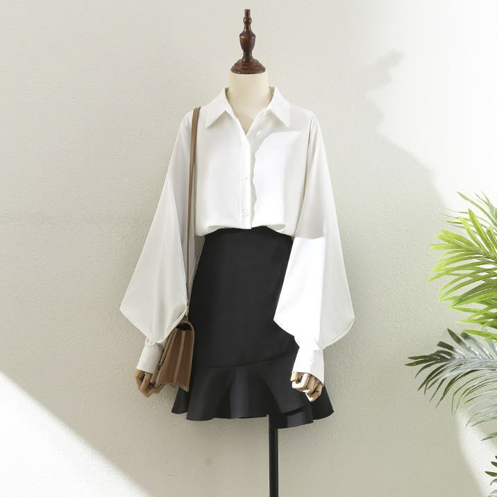흰색 셔츠 여성의 봄과 가을 랜턴 슬리브 올 매치 디자인 센스 서양식 셔츠 카디건 탑 얇은 프랑스 스타일스토어 가기