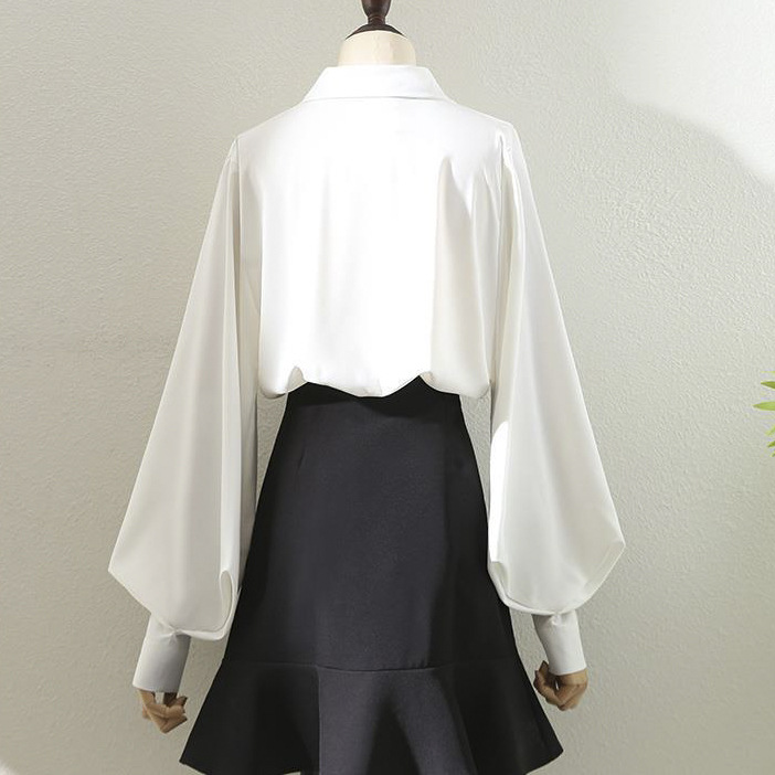 흰색 셔츠 여성의 봄과 가을 랜턴 슬리브 올 매치 디자인 센스 서양식 셔츠 카디건 탑 얇은 프랑스 스타일