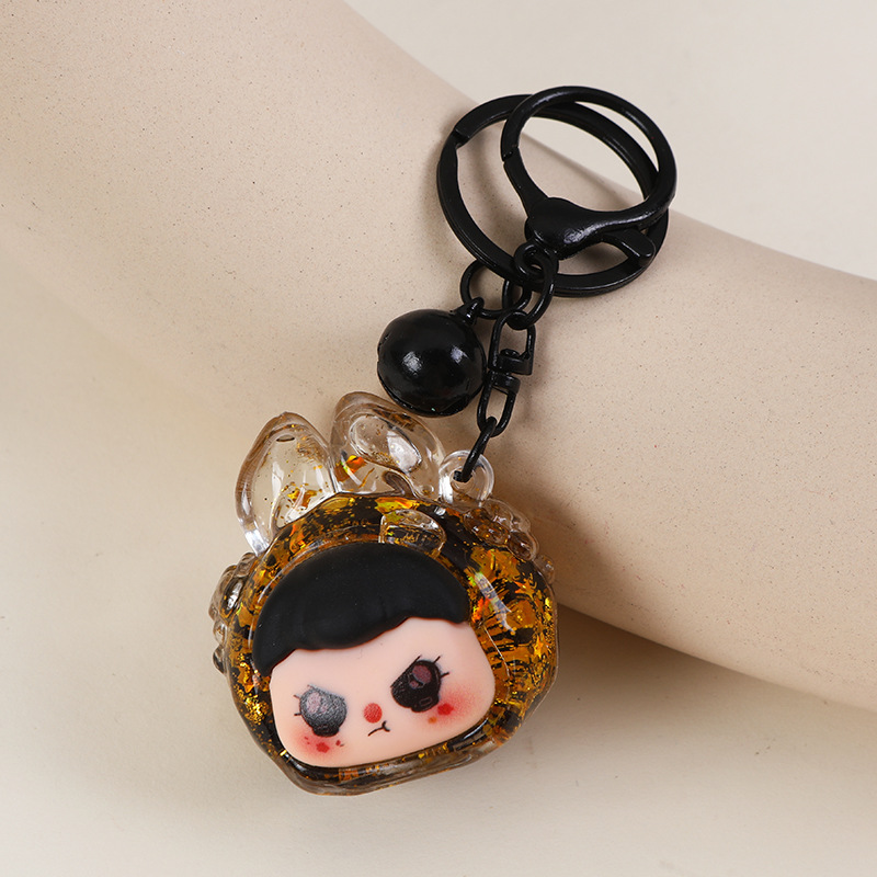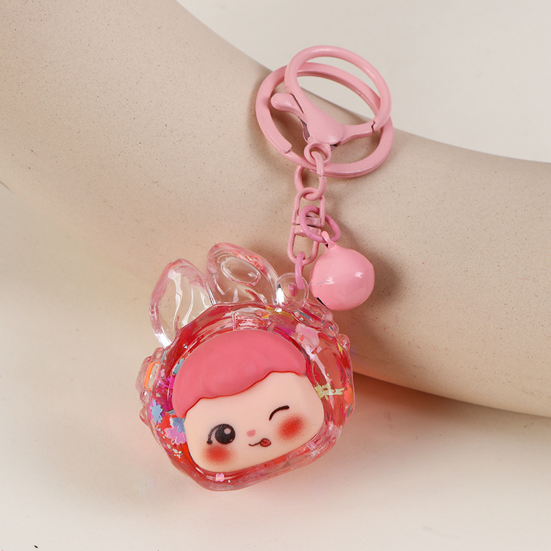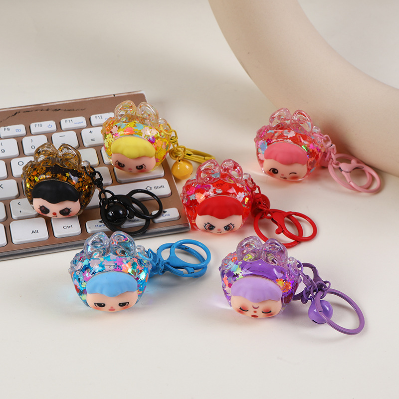 유성 퀵 샌드 병 키 체인 오일 퀵 샌드 장식품 만화 작은 선물 아크릴 학교 가방 장식 작은 펜던트