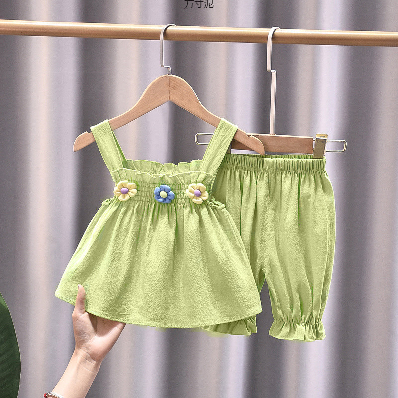 소녀 세트 여름 2025 새로운 아기 서양 스타일 공주 스타일 아기 사이버 축하 꽃 목가적 스타일 투피스 세트스토어 가기