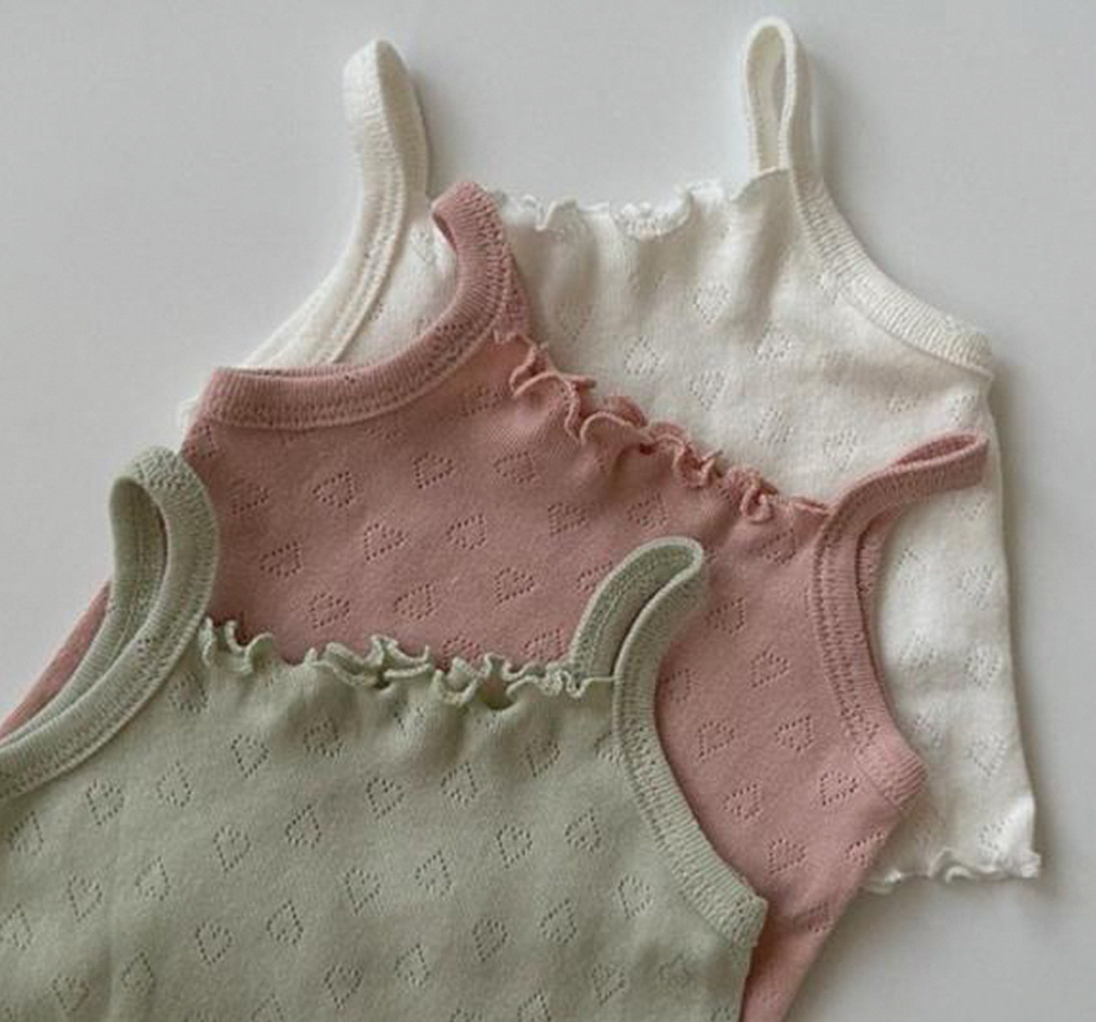 2025 여름 한국 스타일 새 아기 면 할로우 슬링 여름 소녀 얇은 니트 조끼 올 매치 편안한