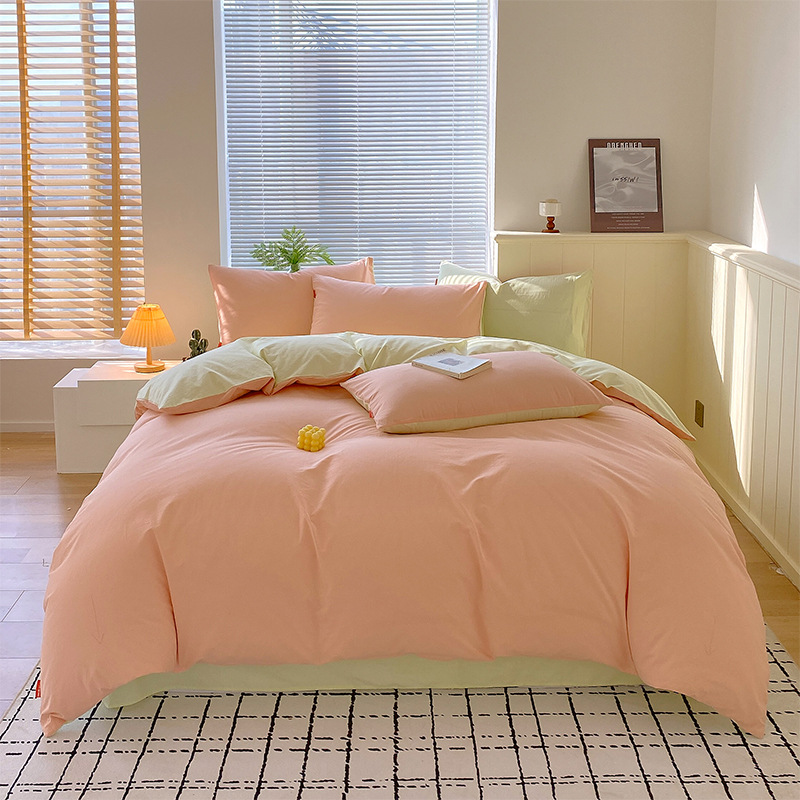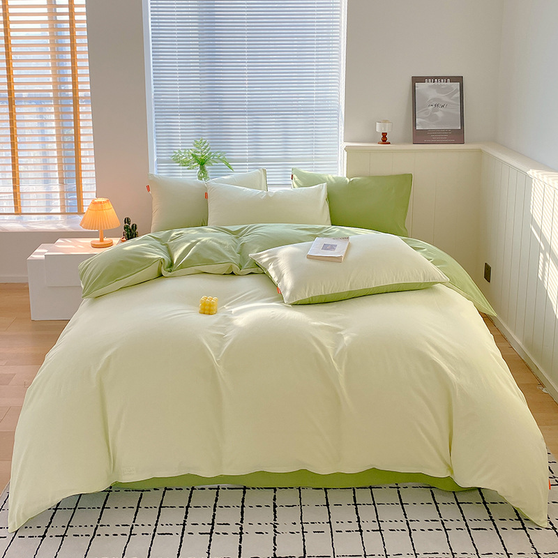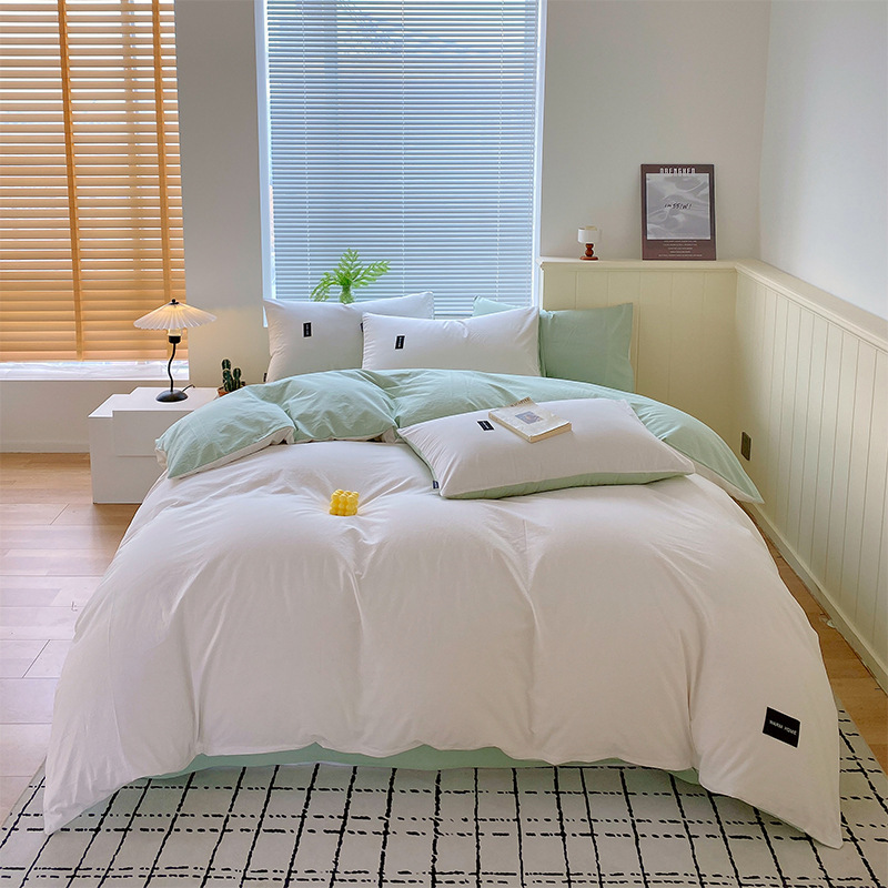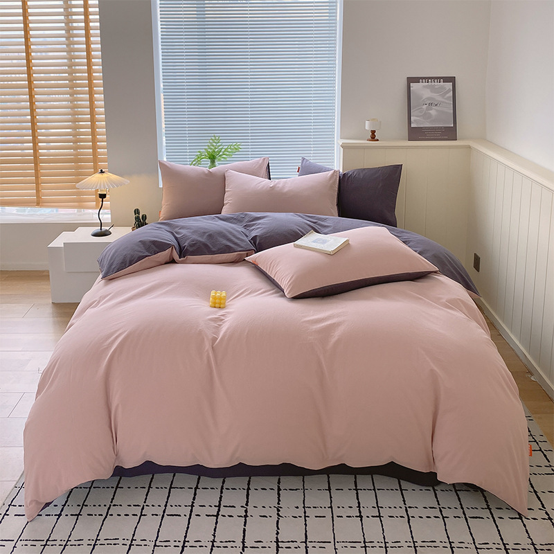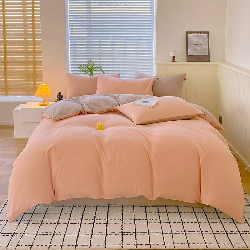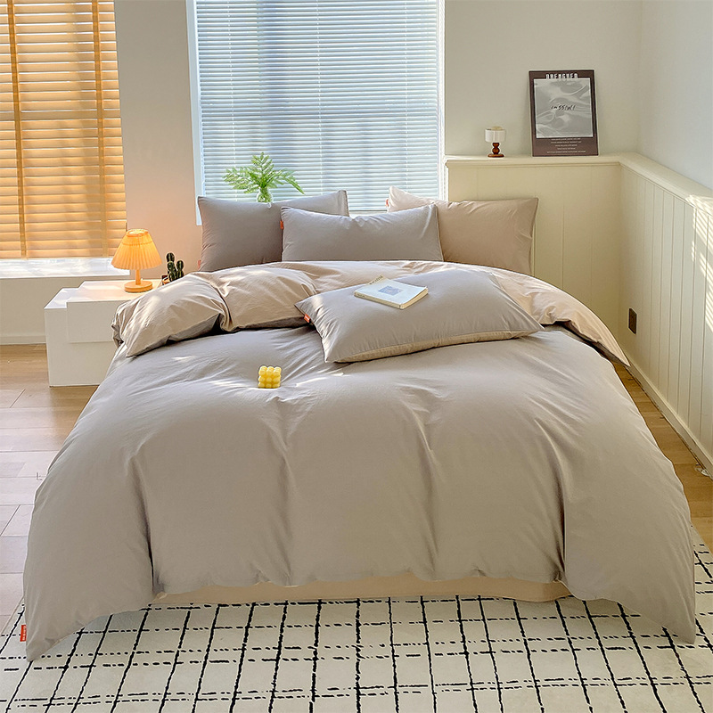 솔리드 컬러 코튼 세척 된 코튼 침대 4 피스 세트 퓨어 코튼 간단한 기숙사 침구 시트 퀼트 커버 3 피스 세트 침대 커버