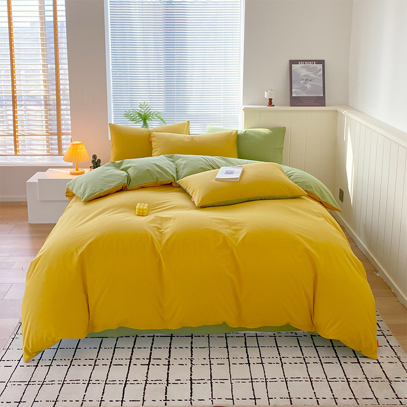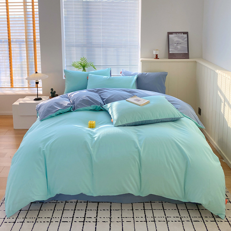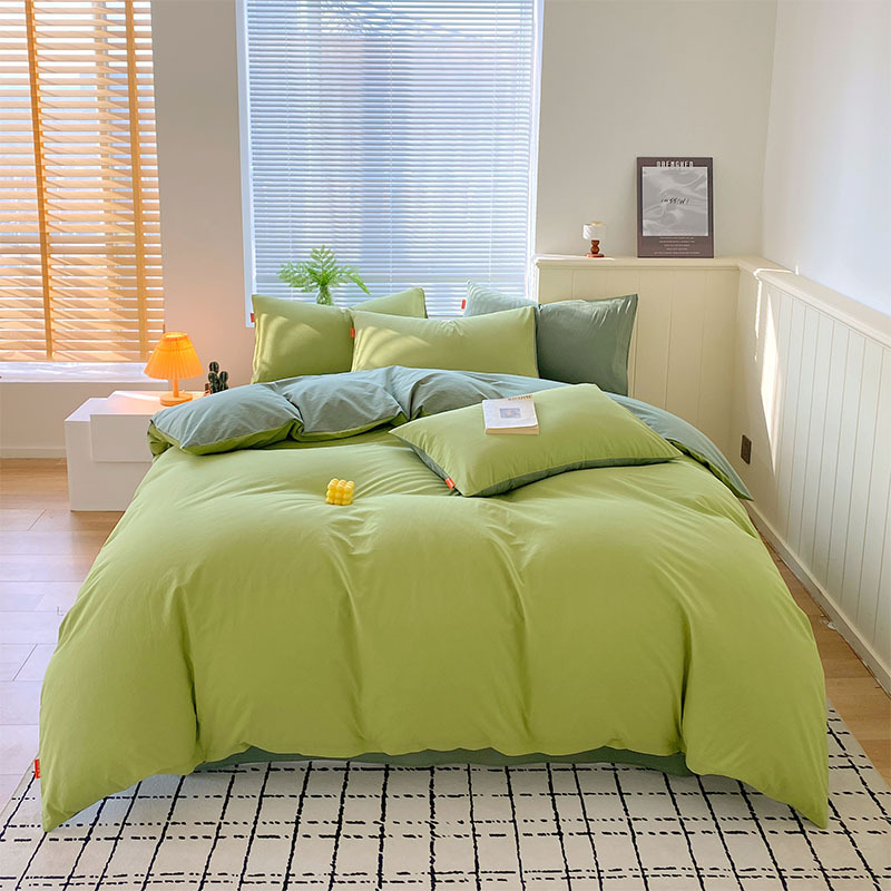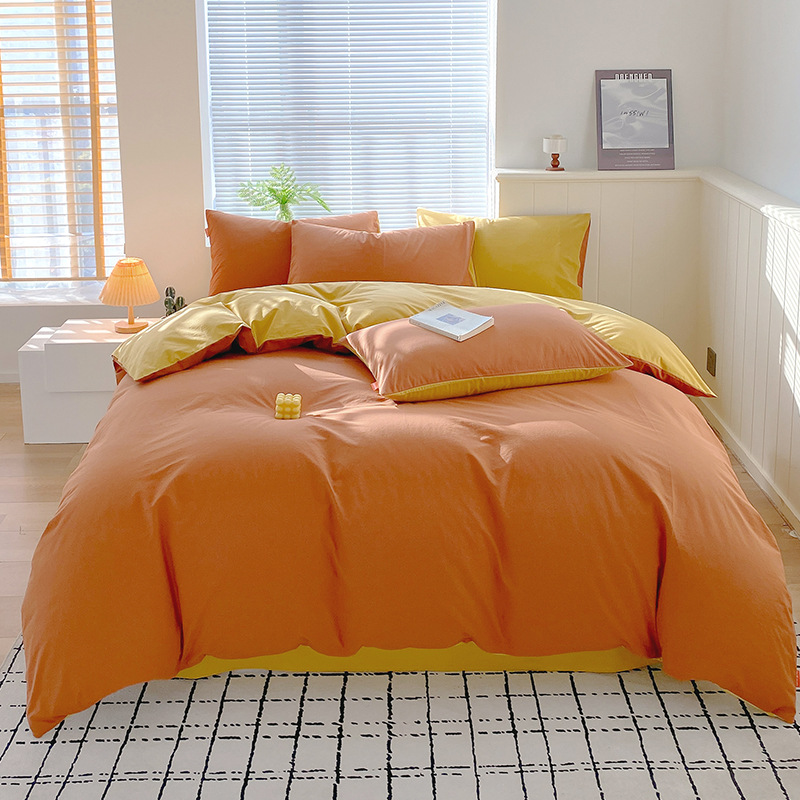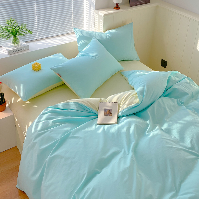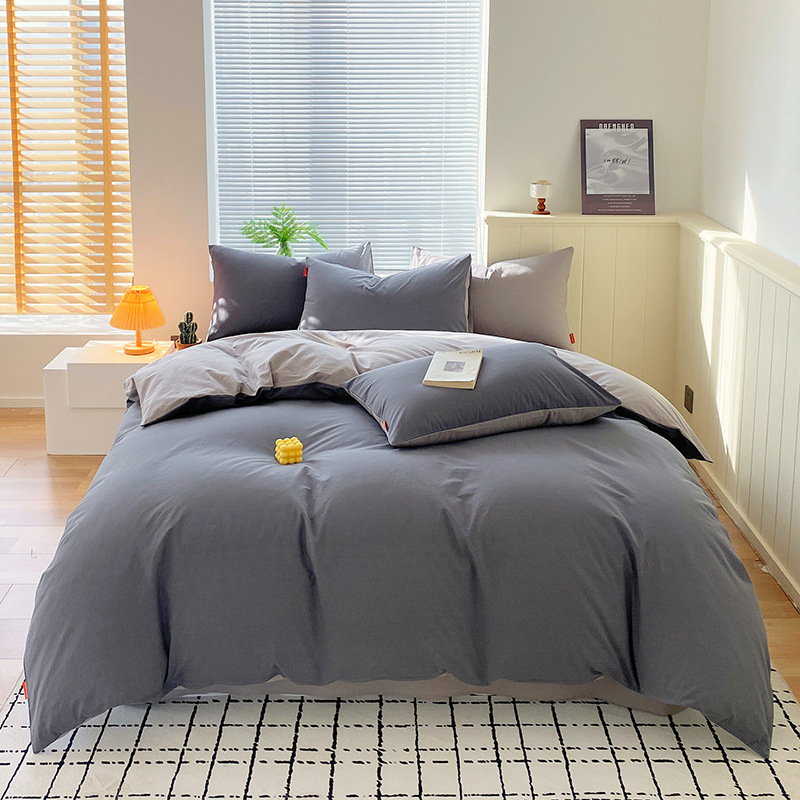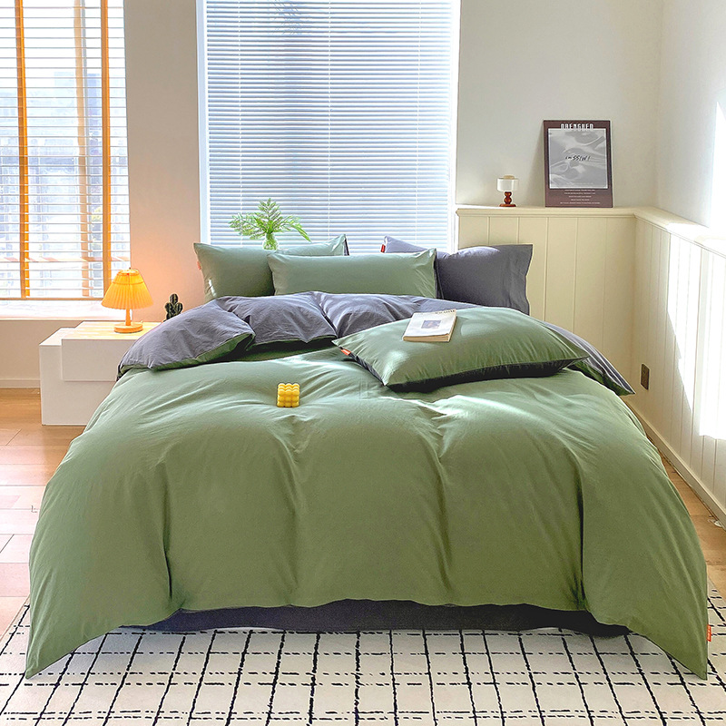 솔리드 컬러 코튼 세척 된 코튼 침대 4 피스 세트 퓨어 코튼 간단한 기숙사 침구 시트 퀼트 커버 3 피스 세트 침대 커버