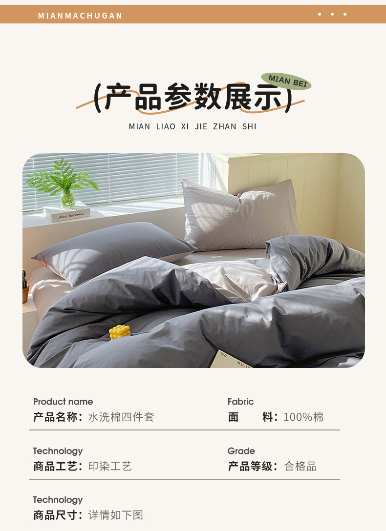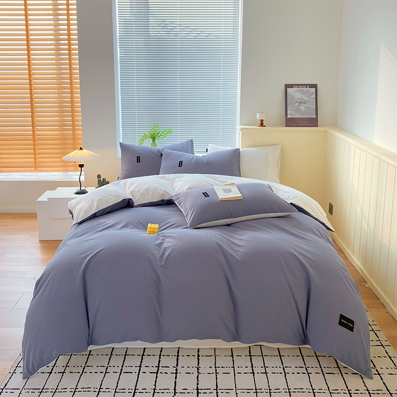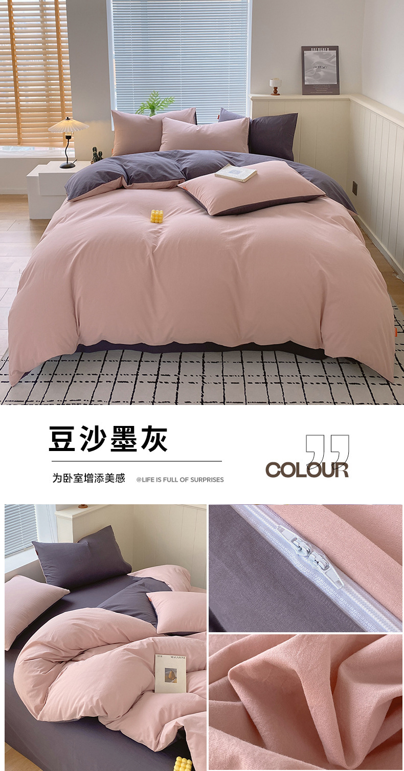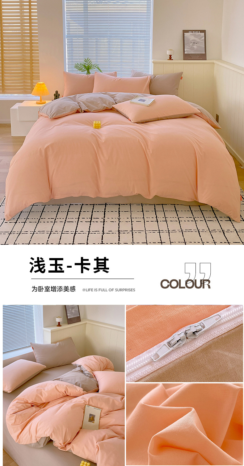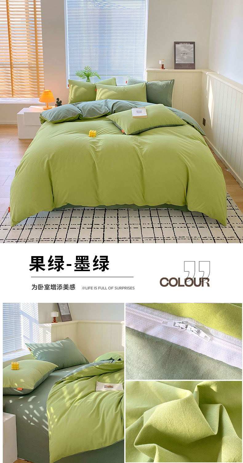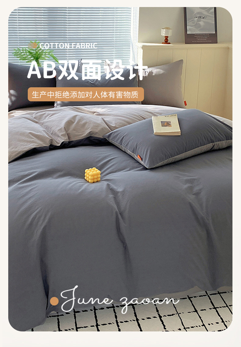 솔리드 컬러 코튼 세척 된 코튼 침대 4 피스 세트 퓨어 코튼 간단한 기숙사 침구 시트 퀼트 커버 3 피스 세트 침대 커버스토어 가기