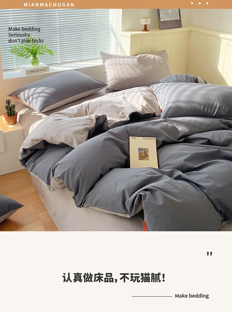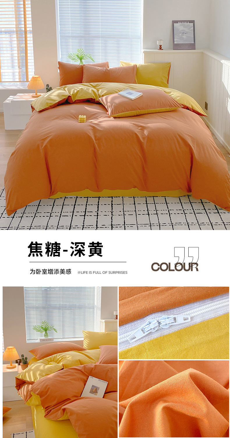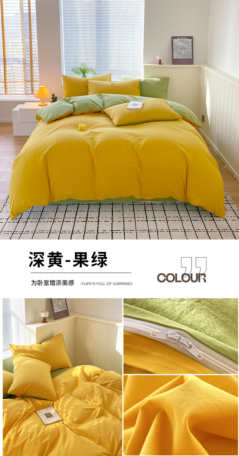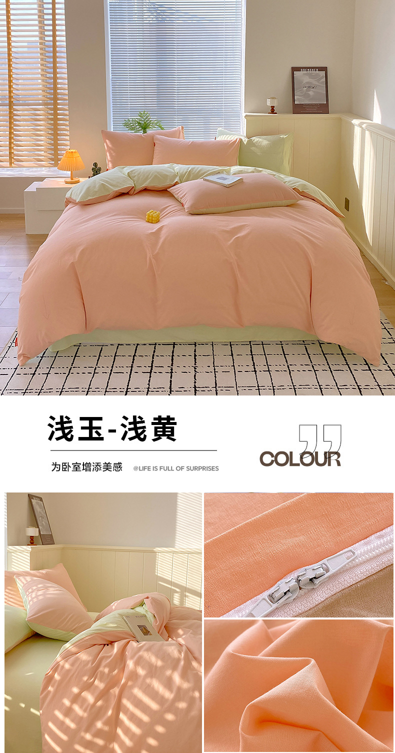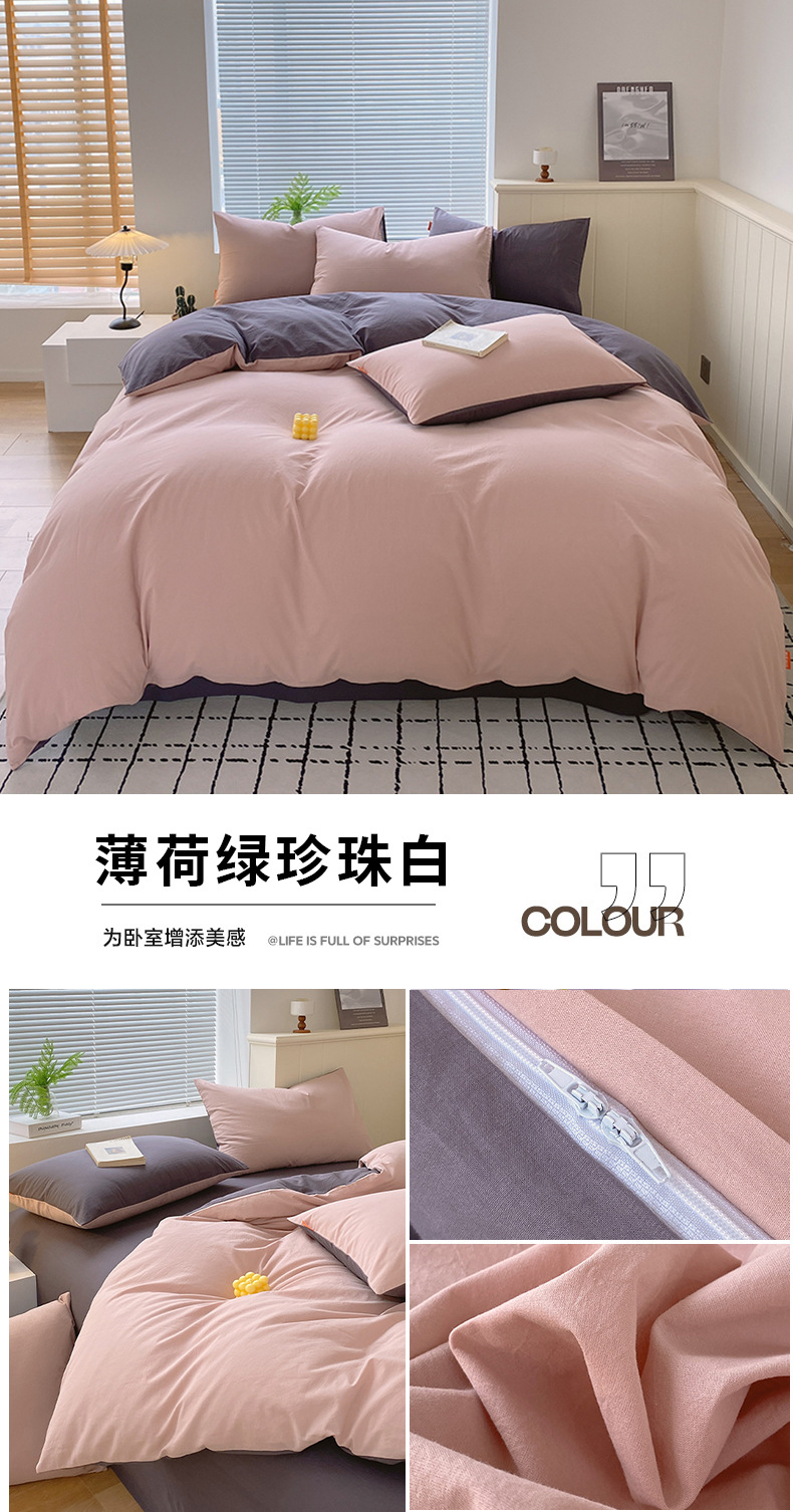 솔리드 컬러 코튼 세척 된 코튼 침대 4 피스 세트 퓨어 코튼 간단한 기숙사 침구 시트 퀼트 커버 3 피스 세트 침대 커버스토어 가기