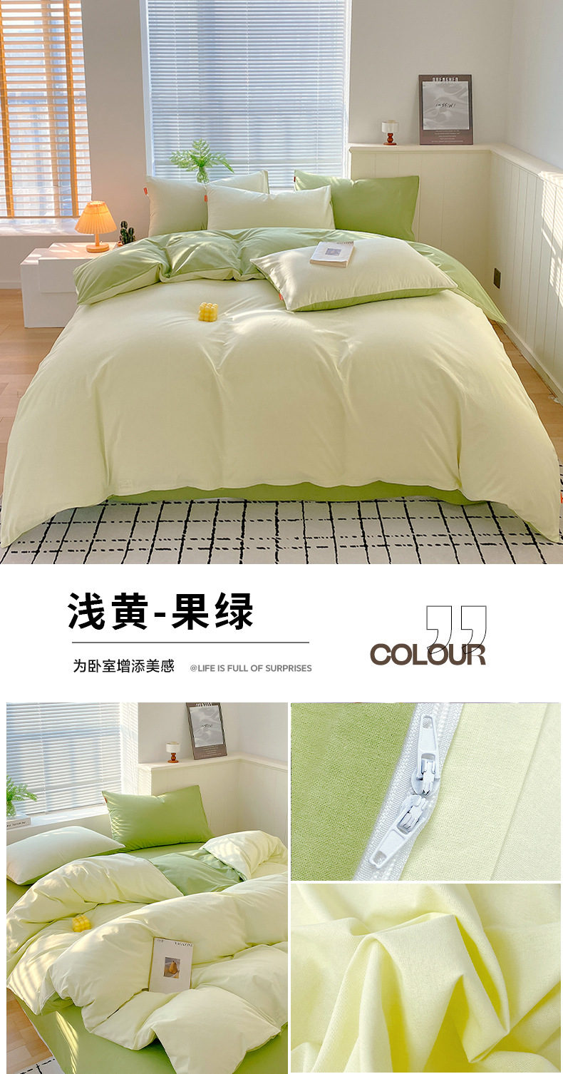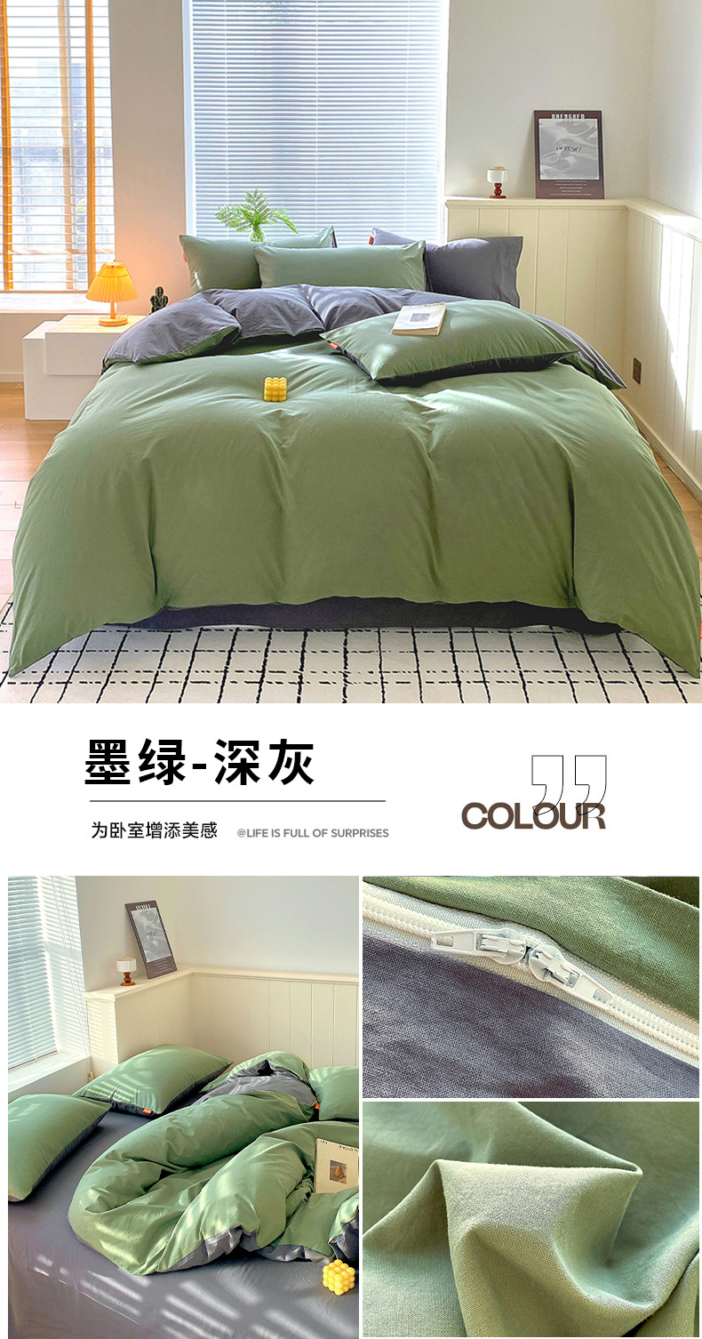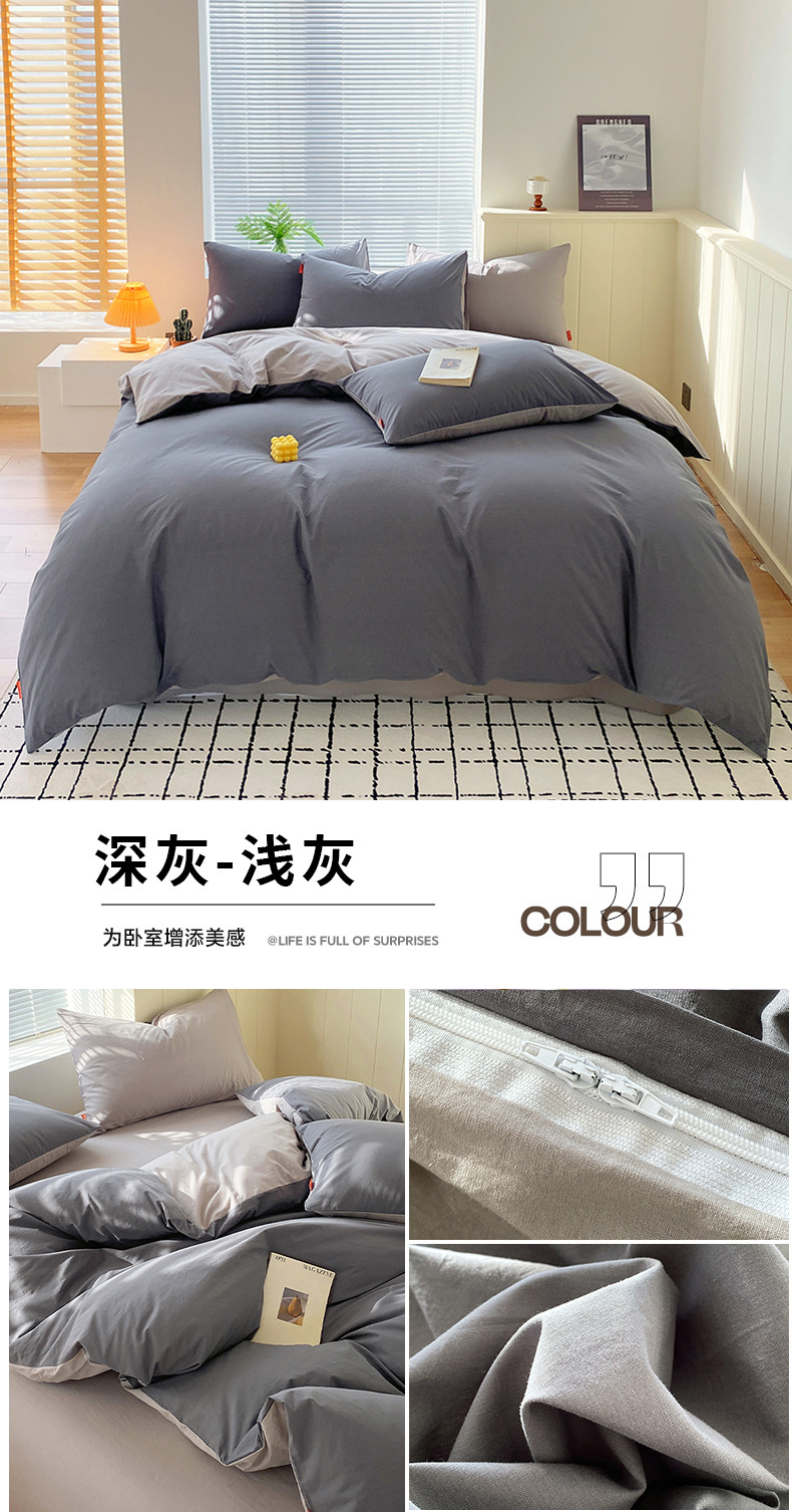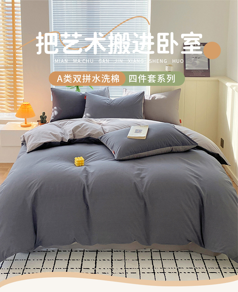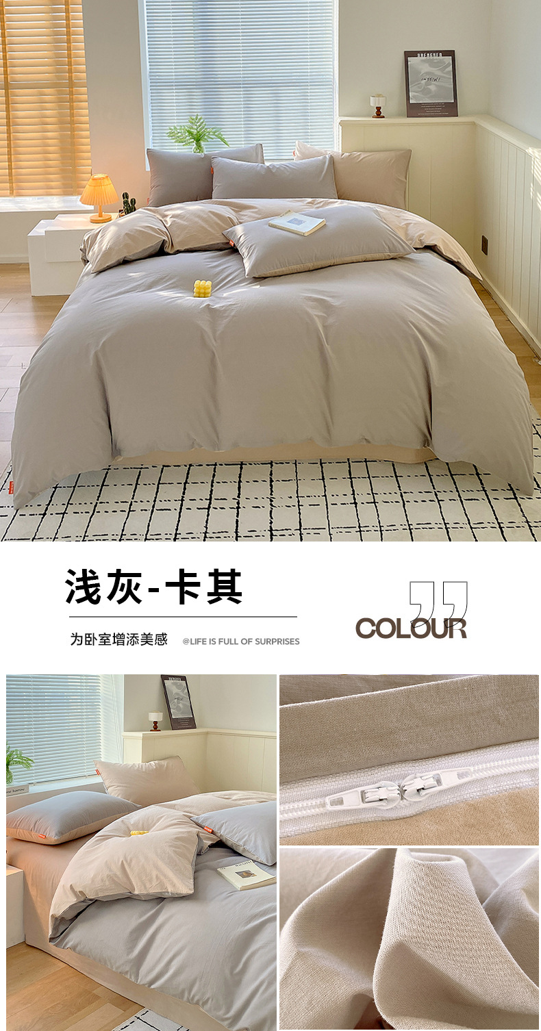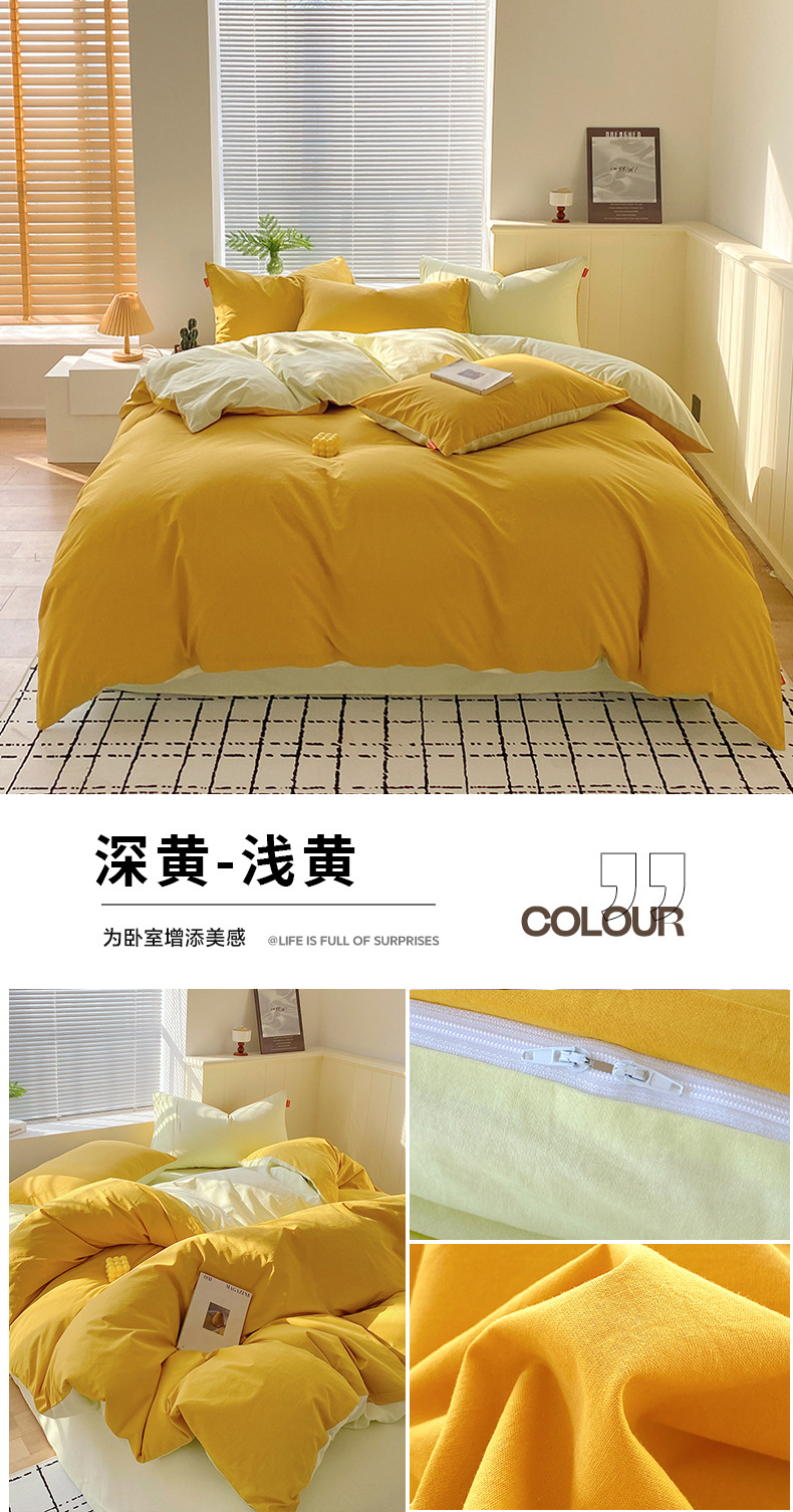 솔리드 컬러 코튼 세척 된 코튼 침대 4 피스 세트 퓨어 코튼 간단한 기숙사 침구 시트 퀼트 커버 3 피스 세트 침대 커버스토어 가기