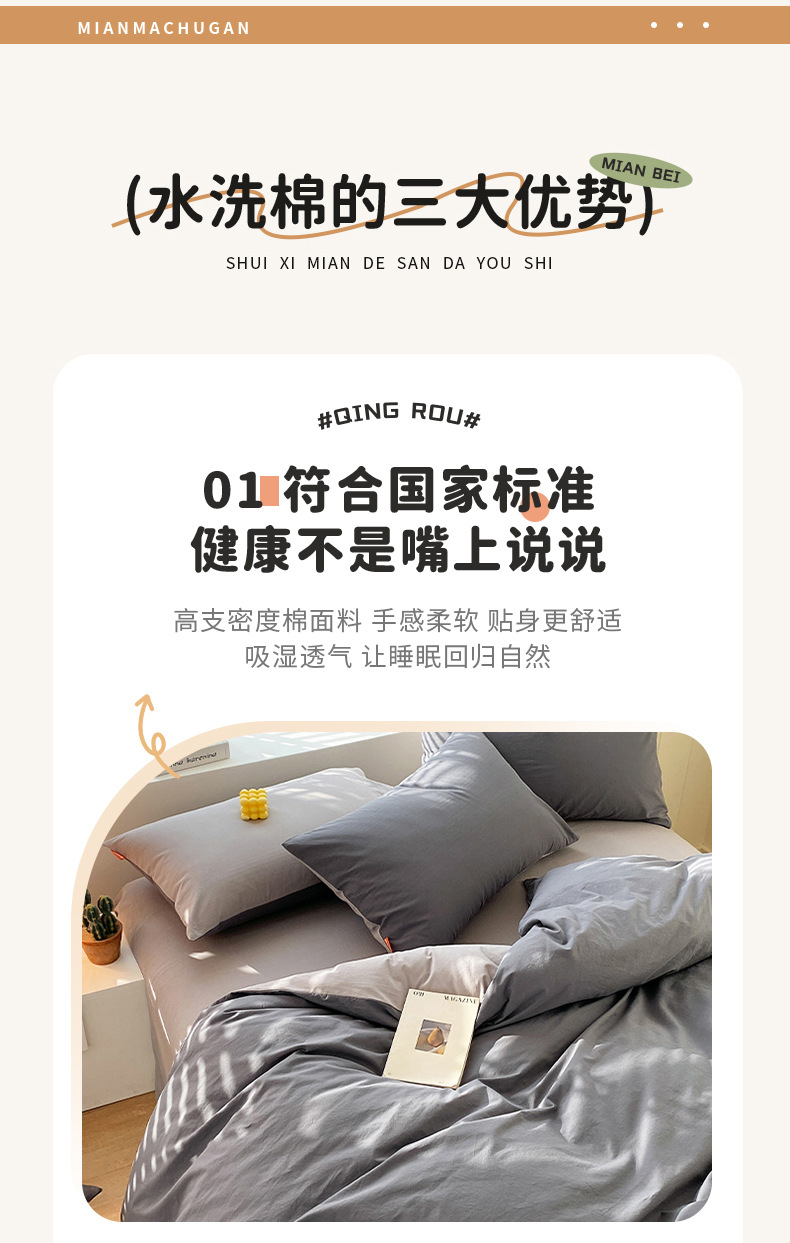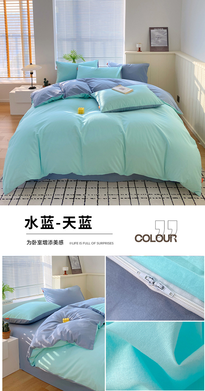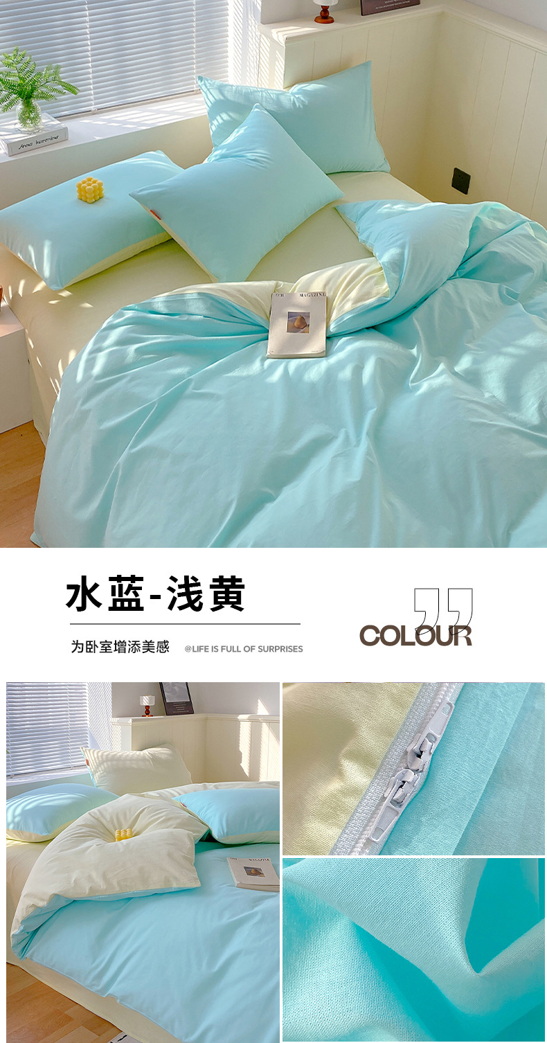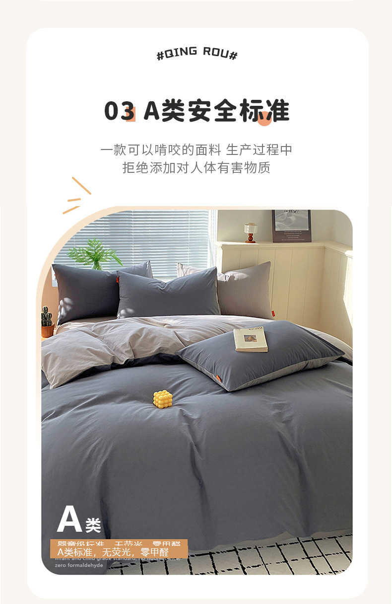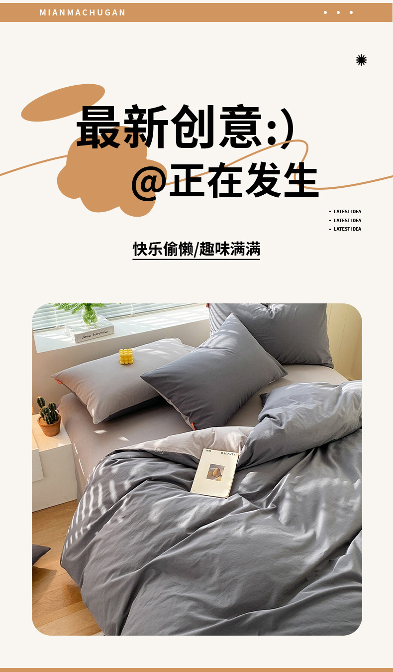 솔리드 컬러 코튼 세척 된 코튼 침대 4 피스 세트 퓨어 코튼 간단한 기숙사 침구 시트 퀼트 커버 3 피스 세트 침대 커버스토어 가기
