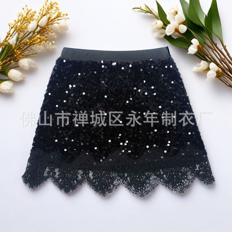 여자 2025 봄과 여름 새로운 도착 Sequin 스커트 올매치 패셔너블 스커트 우아한 레이스 스커트 슬림 핏 짧은 스커트 트렌디스토어 가기
