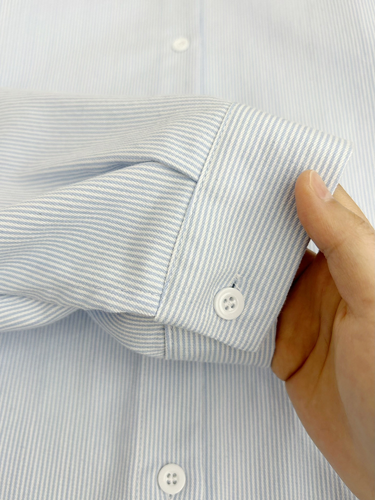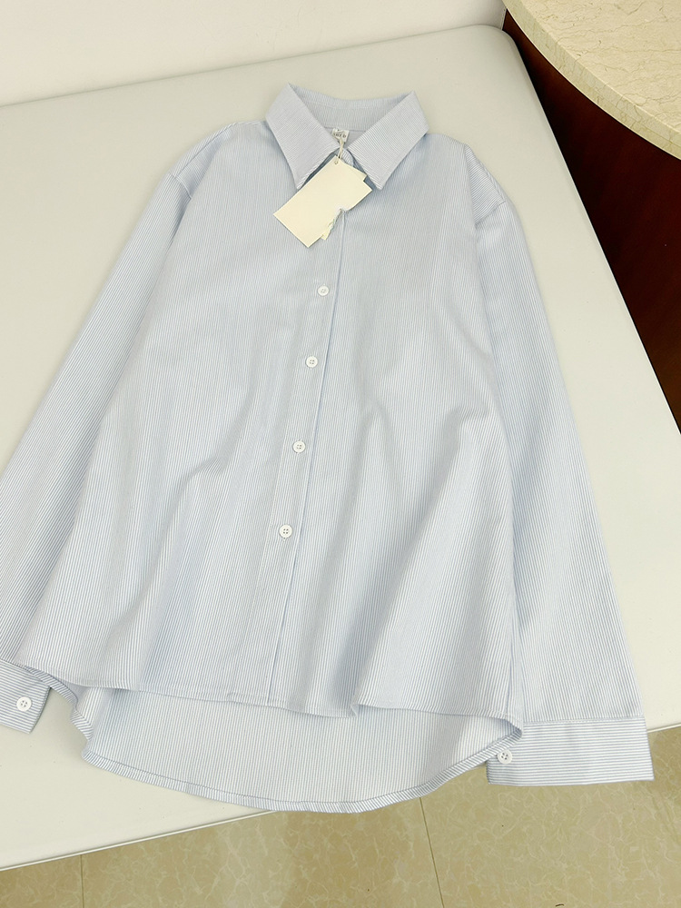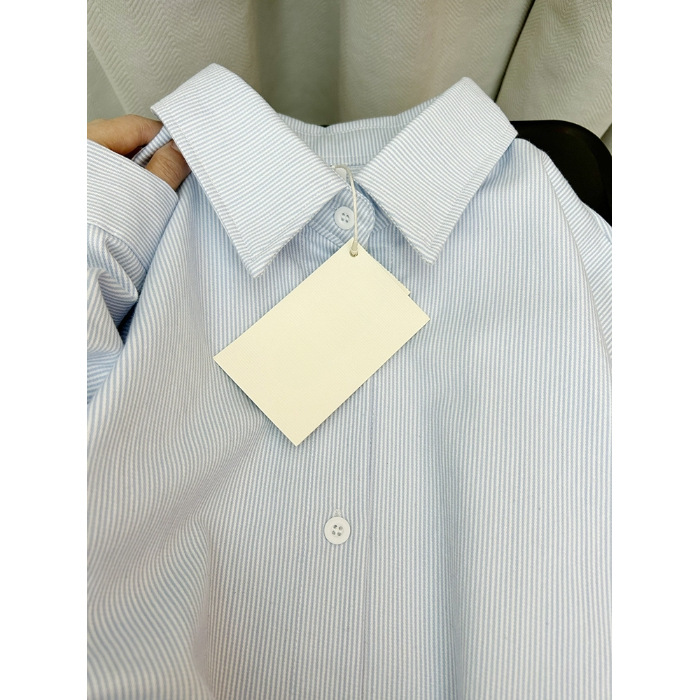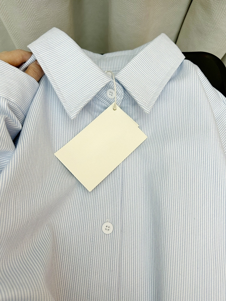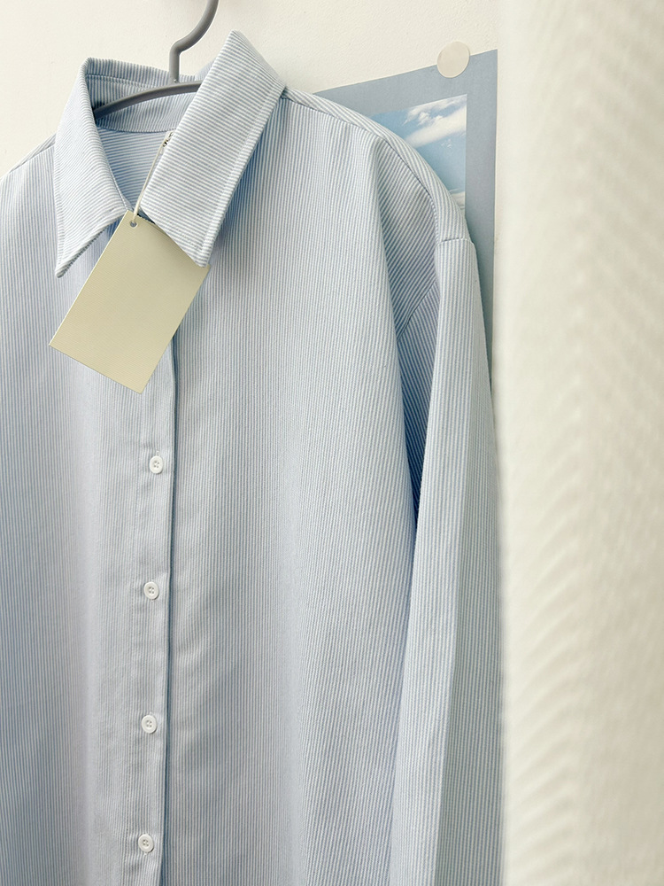 파인 스트라이프 면 블루 셔츠 긴팔 디자인 감각 있는 틈새 시장 2025 루즈핏 다용도 셔츠 여성용스토어 가기