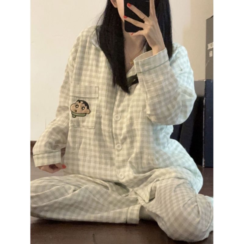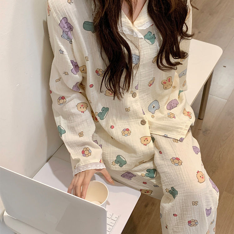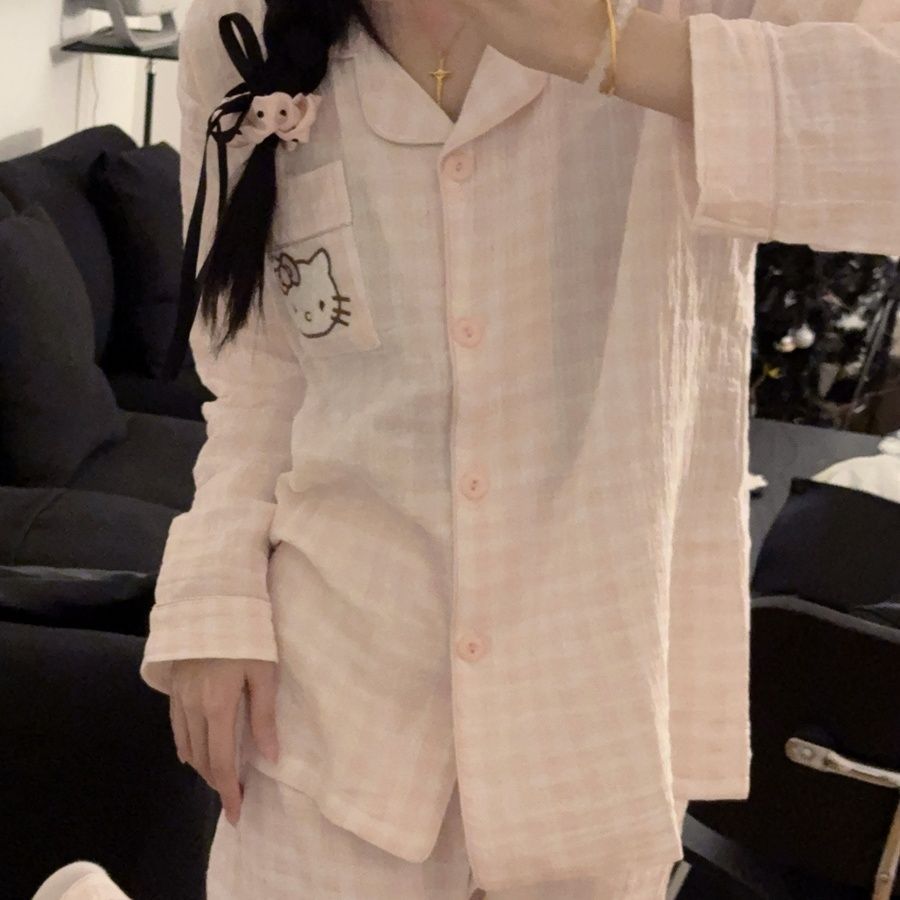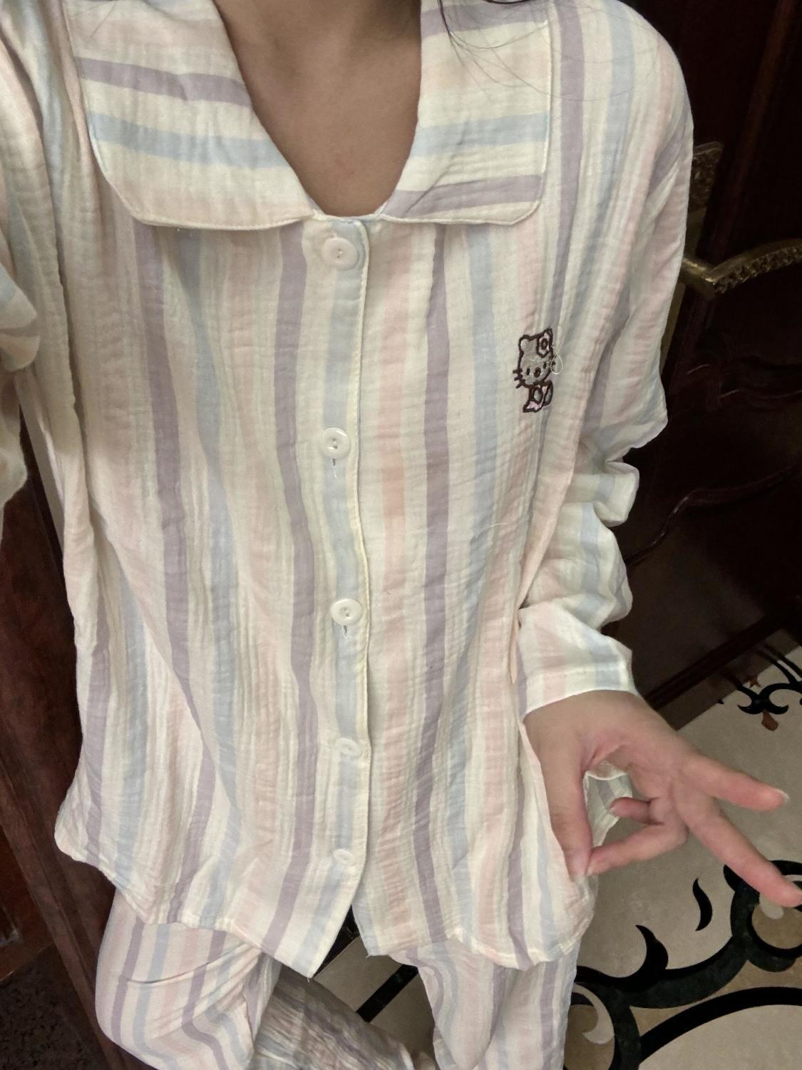 화려한 줄무늬 헬로 키티 고양이 잠옷 여성의 봄과 가을 새로운 긴 소매 일본 스타일 귀여운 학생 홈 옷스토어 가기