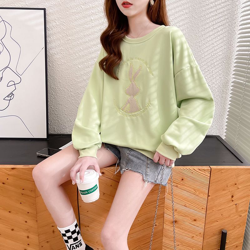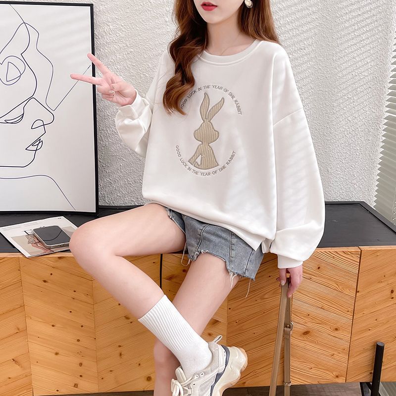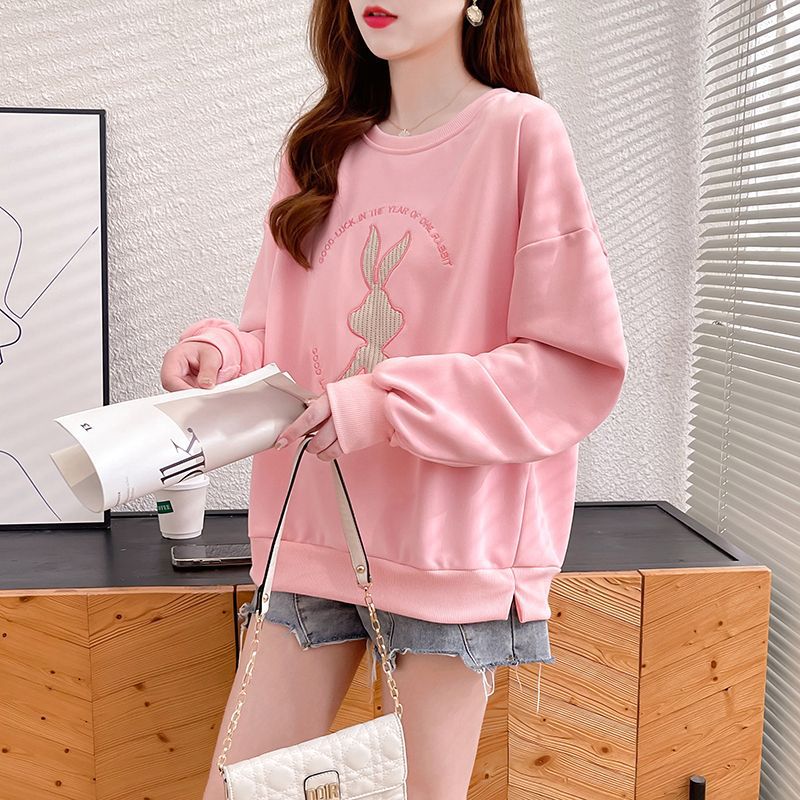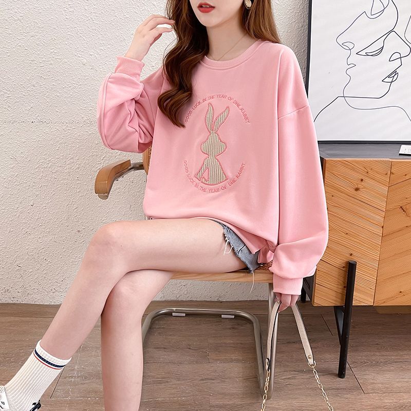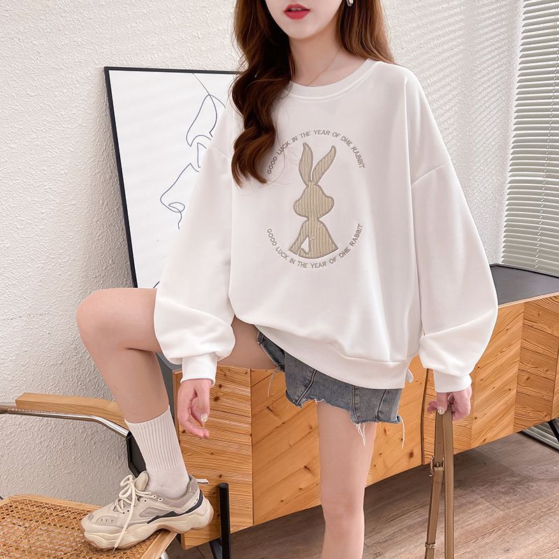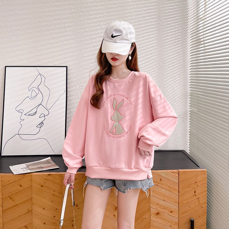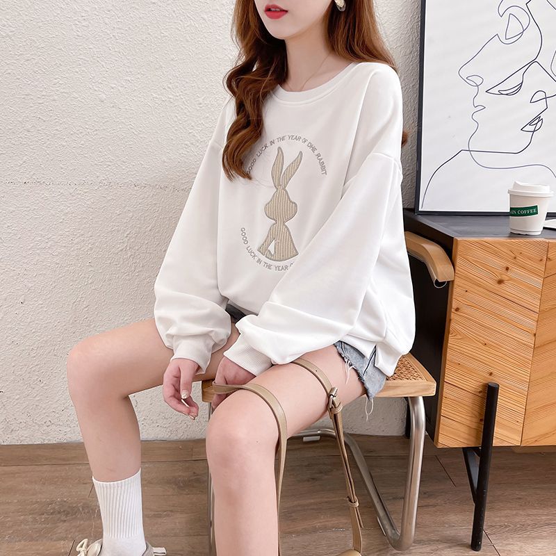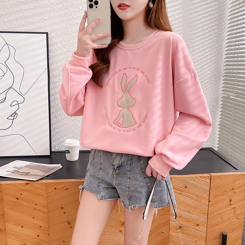 가을 여성의 2025 새로운 토끼 스웨트 셔츠 여성의 얇은 봄과 가을 느슨한 패션 서양식 폭발 코트 옷