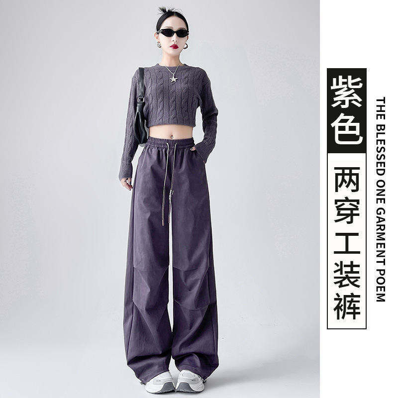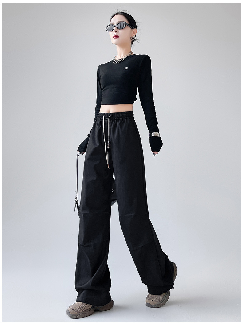 미국 블랙 크록 바지 여자 봄 2025 새로운 높은 허리 쿨 사 타이-다이 낙하산 스포츠 등산 바지스토어 가기