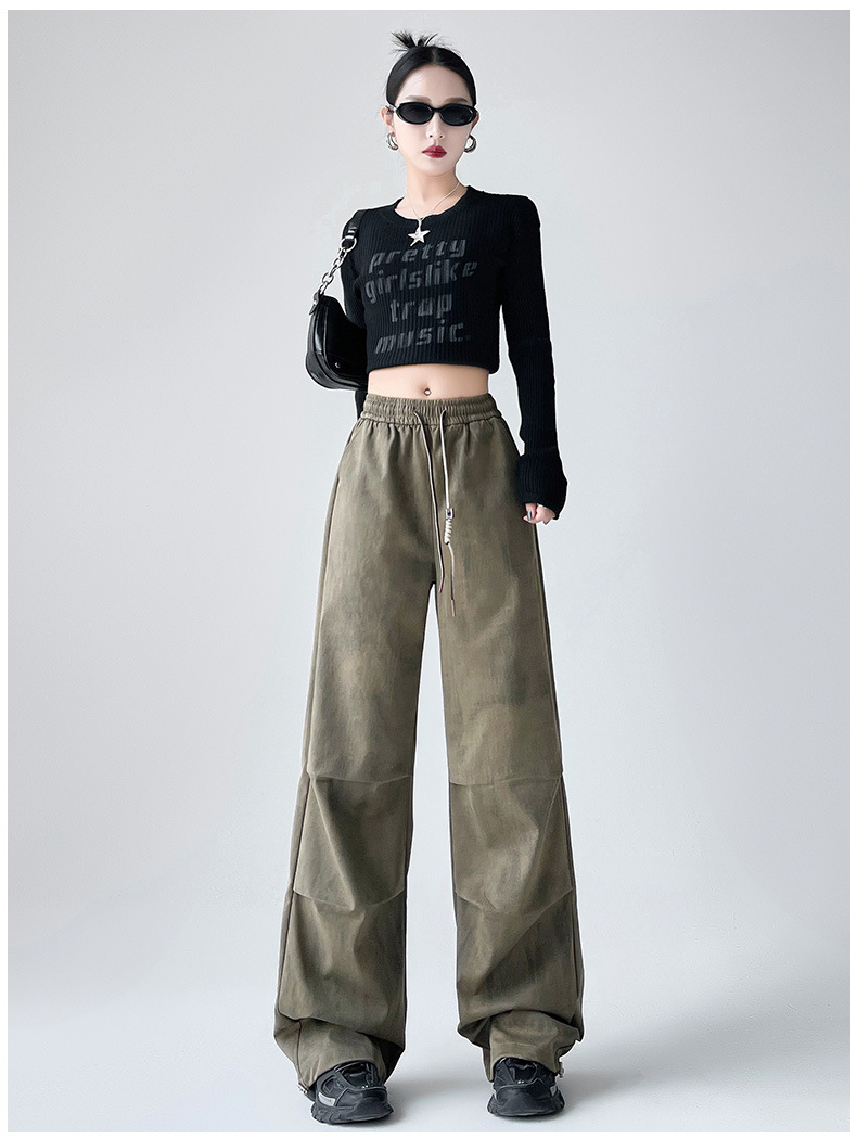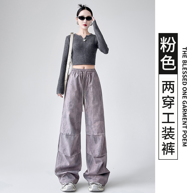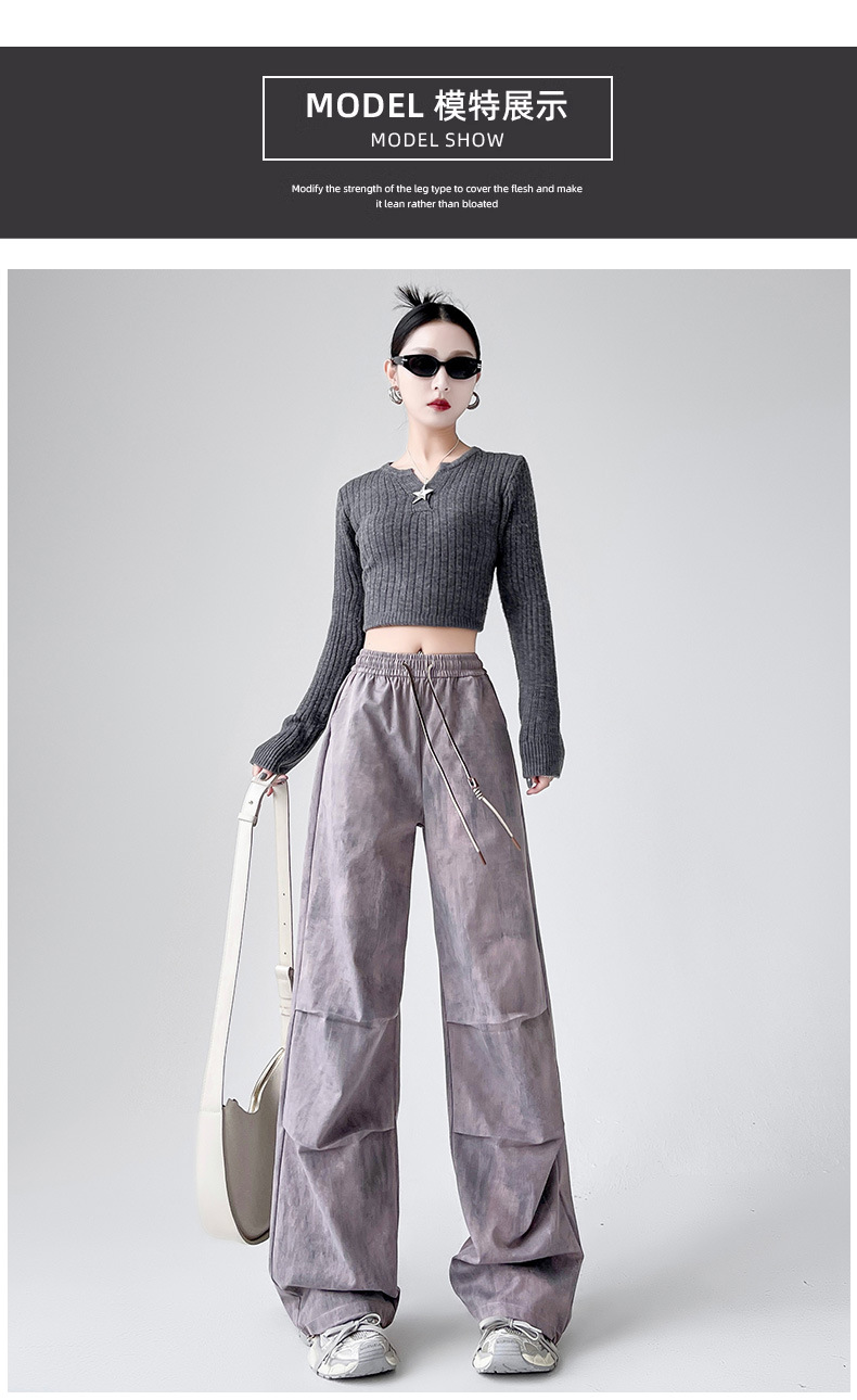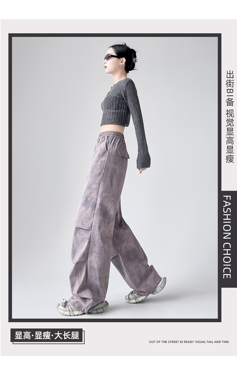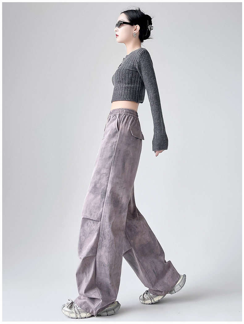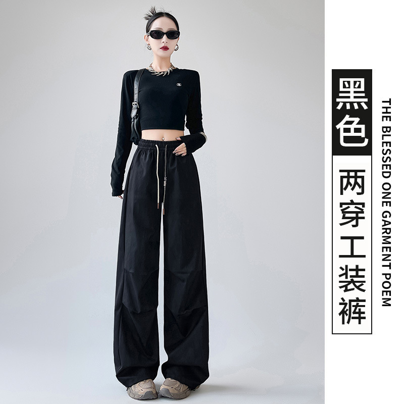 미국 블랙 크록 바지 여자 봄 2025 새로운 높은 허리 쿨 사 타이-다이 낙하산 스포츠 등산 바지