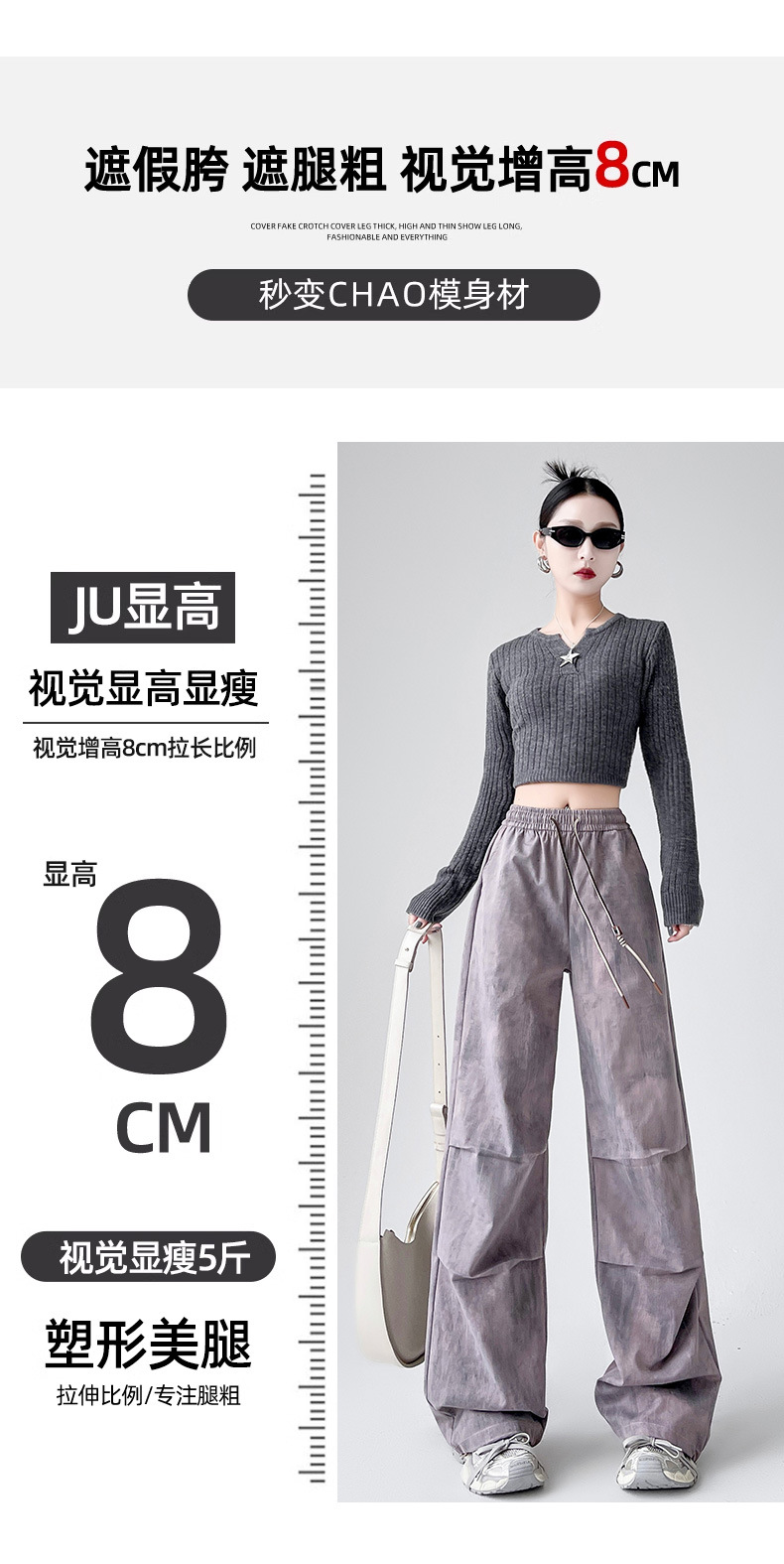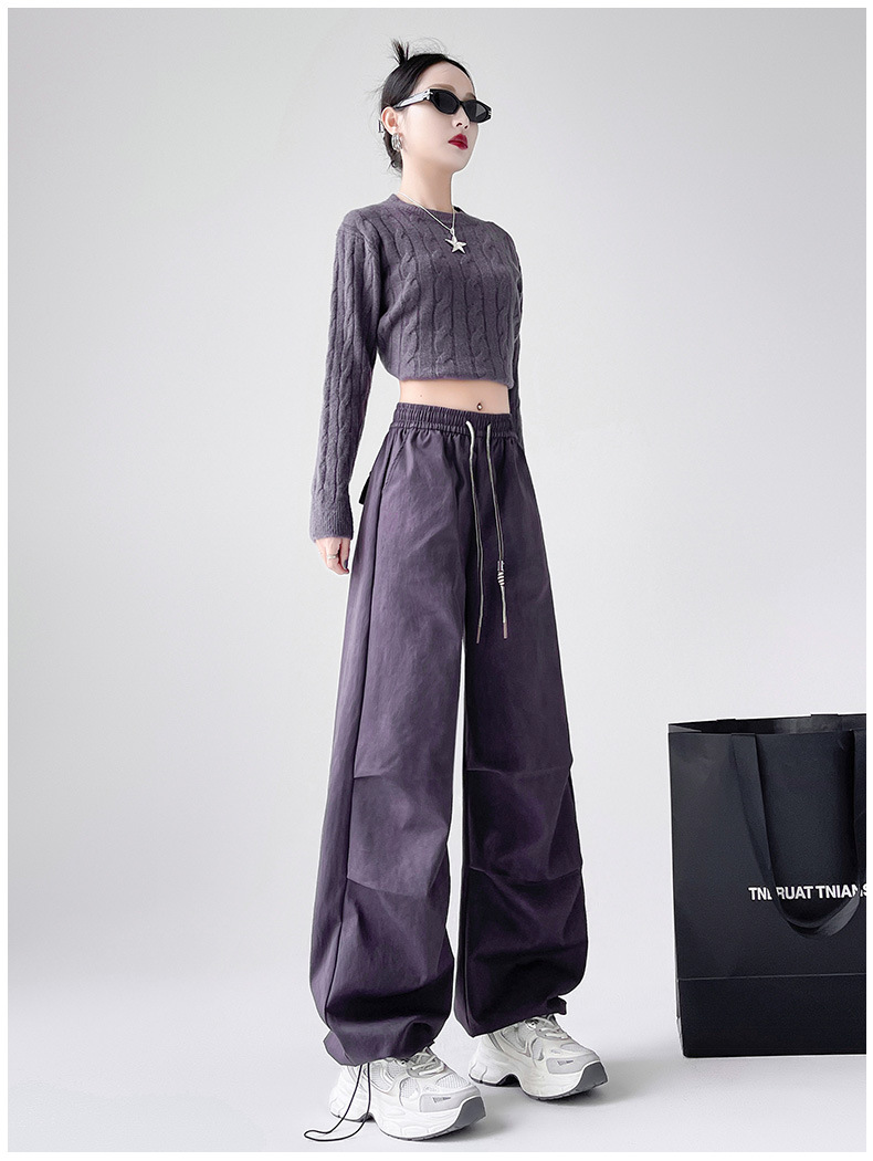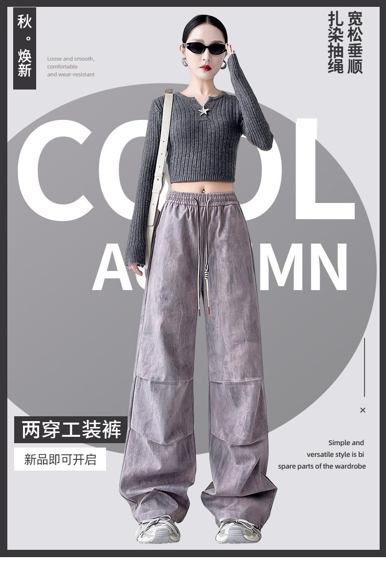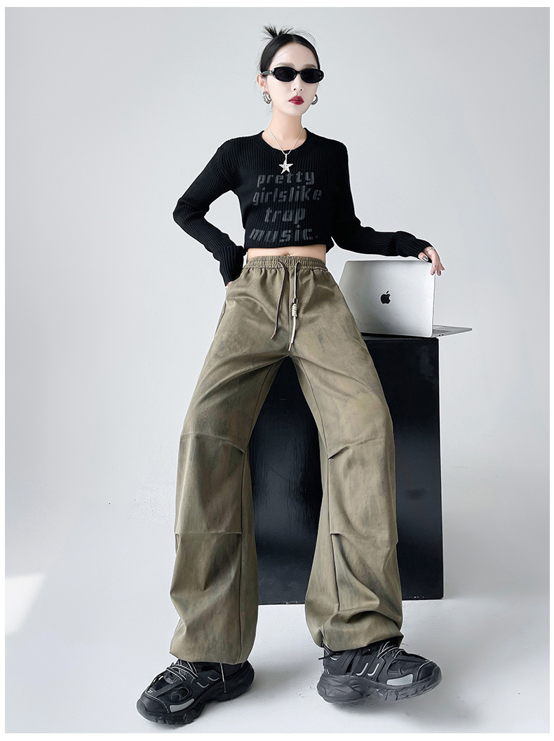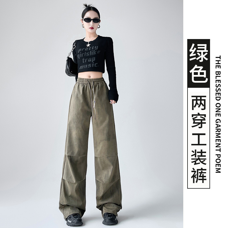 미국 블랙 크록 바지 여자 봄 2025 새로운 높은 허리 쿨 사 타이-다이 낙하산 스포츠 등산 바지