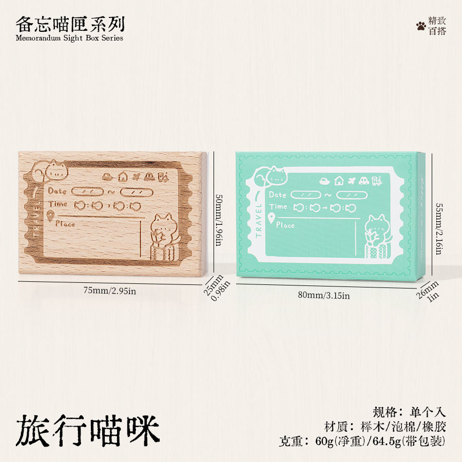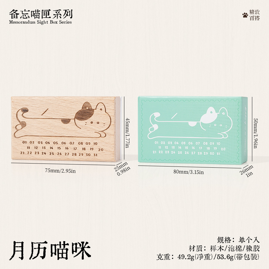 메모 고양이 상자 나무 손 계정 스탬프 레트로 고양이 일정 계획 너도밤 나무 스탬프 매일 메모 스탬프