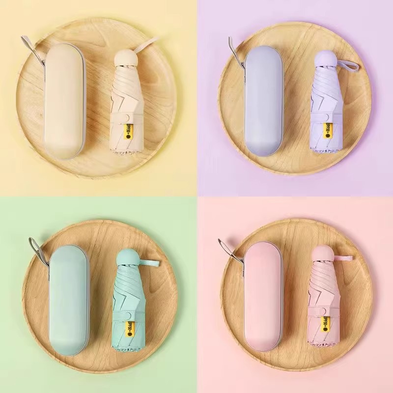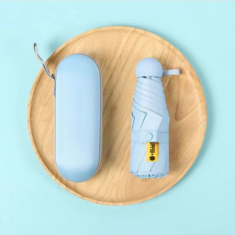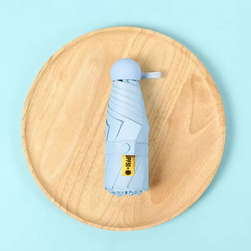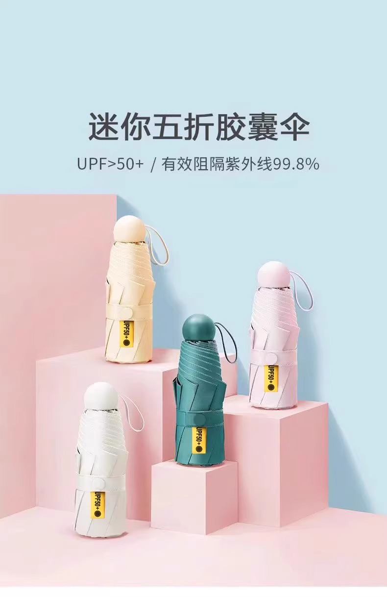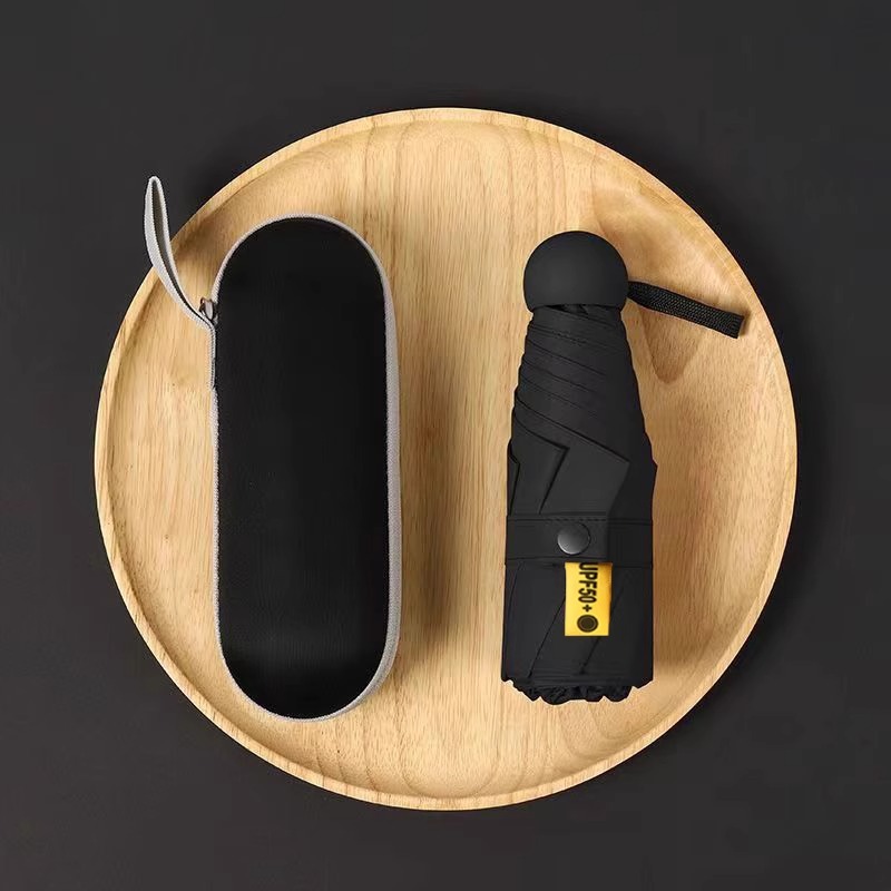 선스크린 5 배 우산 수동 접는 자외선 방지 블랙 접착제 미니 캡슐 써니 및 비 이중 목적 우산 맞춤 로고
