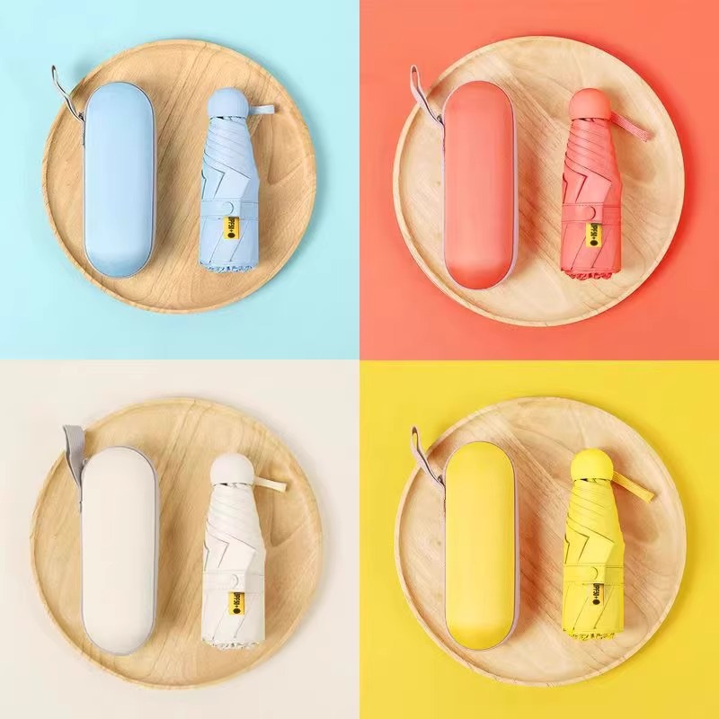 선스크린 5 배 우산 수동 접는 자외선 방지 블랙 접착제 미니 캡슐 써니 및 비 이중 목적 우산 맞춤 로고스토어 가기