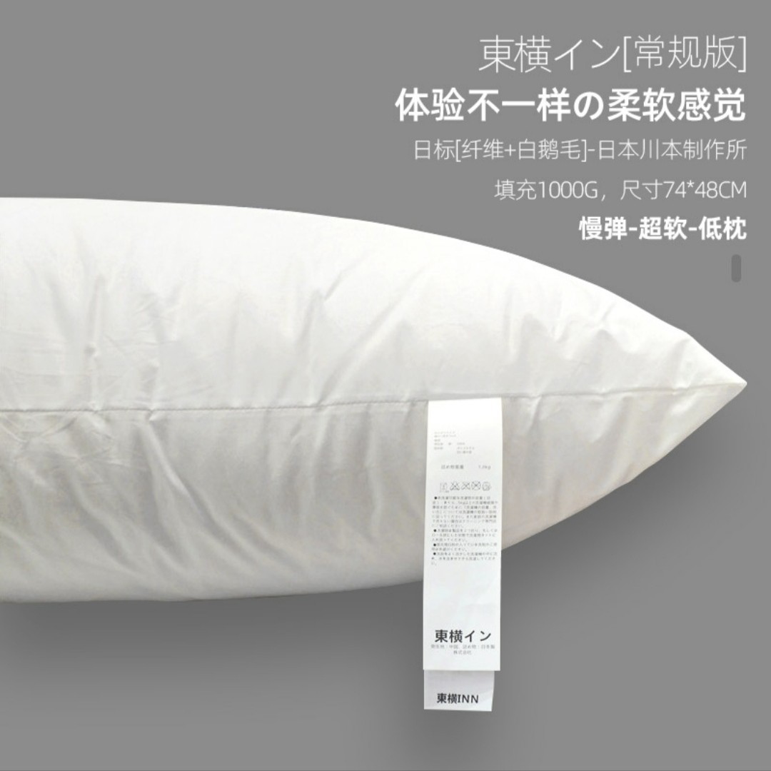 • 흰 거위 깃털이 달린 Dongheng 단면 낮은 베개 1000g