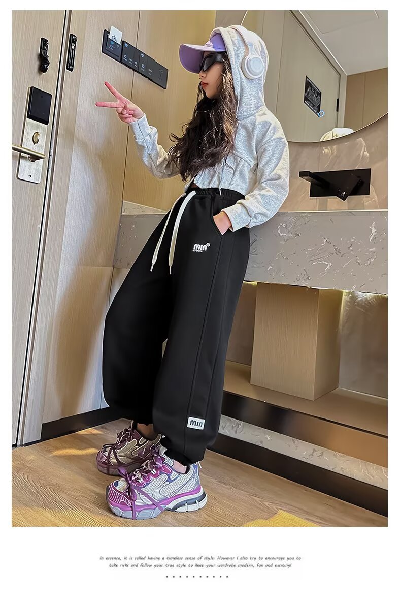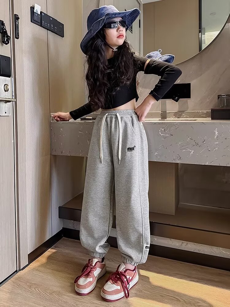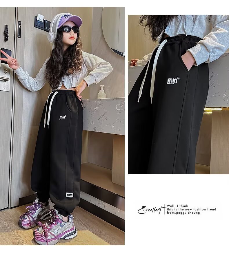 소녀 스포츠 바지 봄과 가을 새로운 어린이 중 큰 어린이 캐주얼 바지 느슨한 소녀 가을 겨울 바지