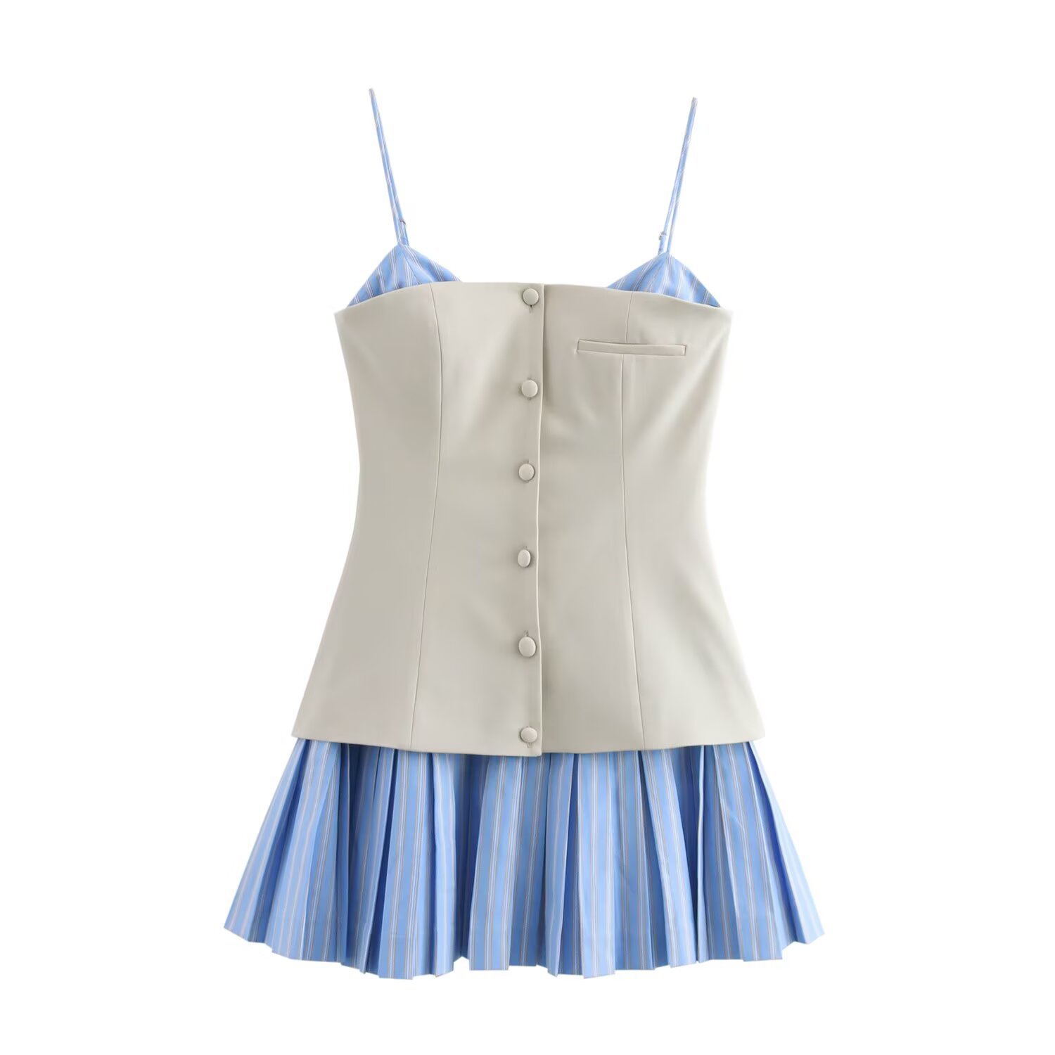 UC & ZA 국경 간 AliExpress 여성의 새로운 명암 색 줄무늬 스티칭 슬림 맞춤 슬링 원피스 2304165