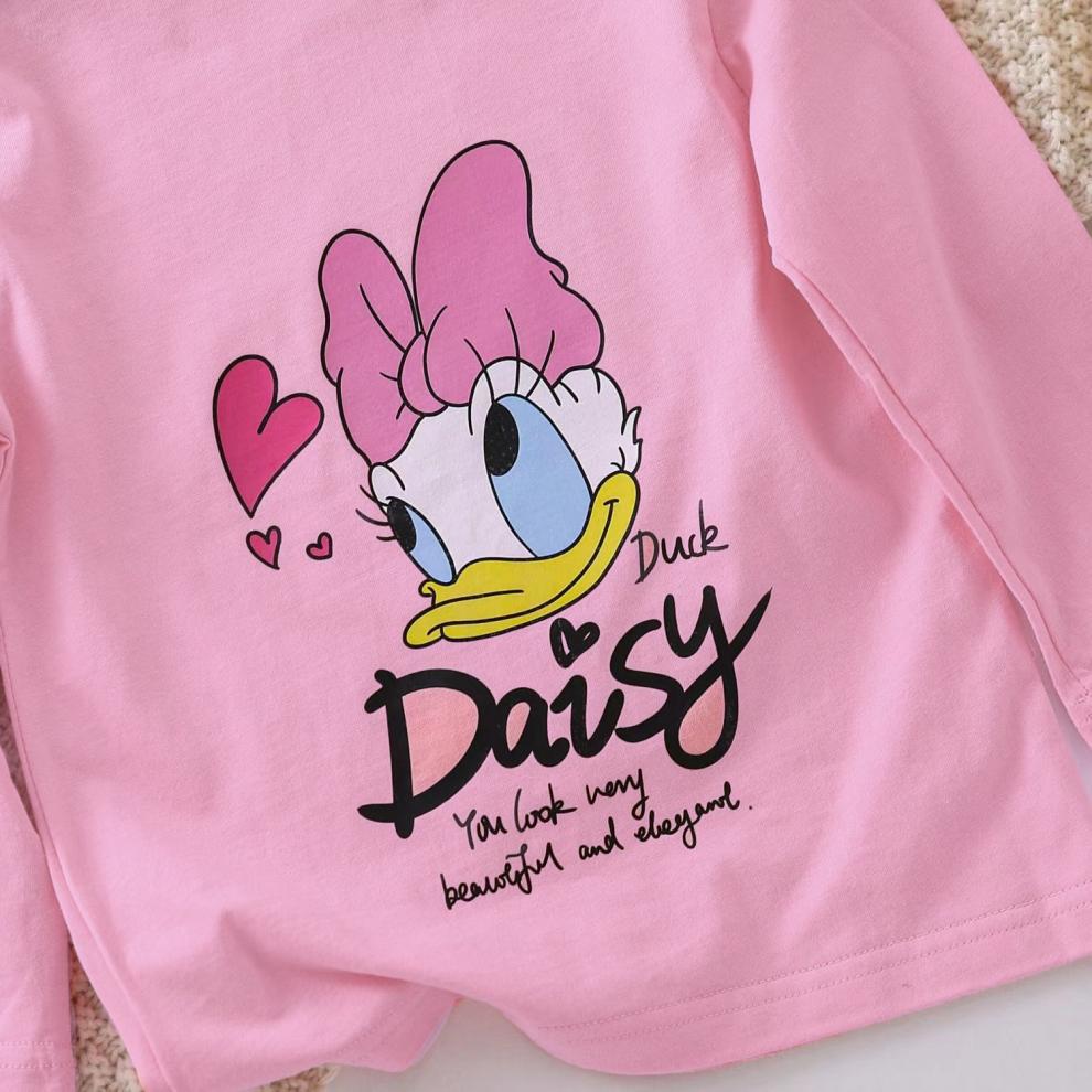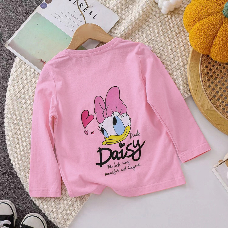 여자 티셔츠 긴 소매 면 2025 새 옷 아기 소녀 봄과 가을 긴 소매 어린이 최고 도널드 덕 T