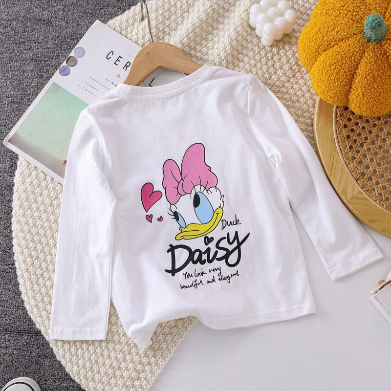 여자 티셔츠 긴 소매 면 2025 새 옷 아기 소녀 봄과 가을 긴 소매 어린이 최고 도널드 덕 T스토어 가기