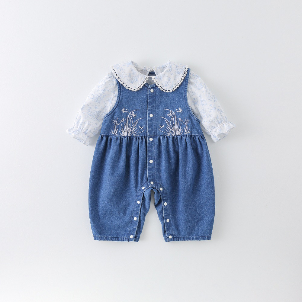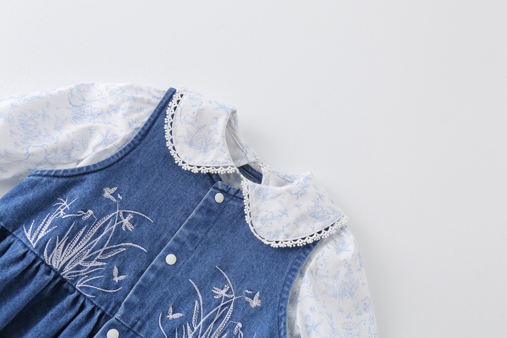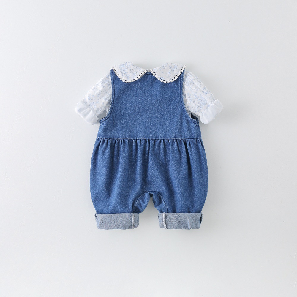 소녀 세트 봄 옷 25 새로운 스타일 여성의 보물 작은 티셔츠 데님 가방 봄 아기 옷 두 조각 세트스토어 가기