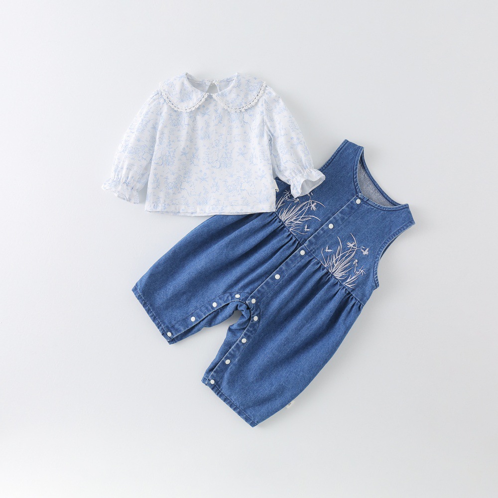 소녀 세트 봄 옷 25 새로운 스타일 여성의 보물 작은 티셔츠 데님 가방 봄 아기 옷 두 조각 세트