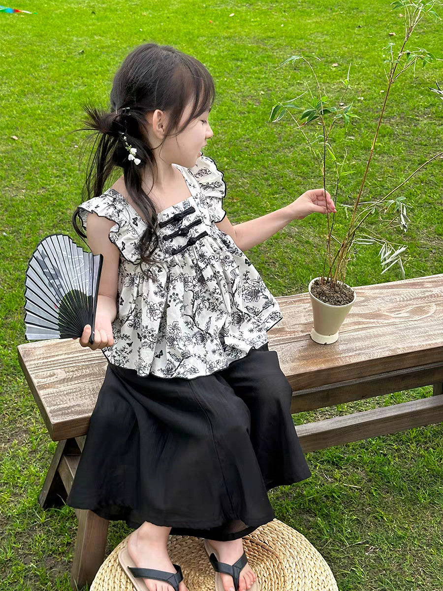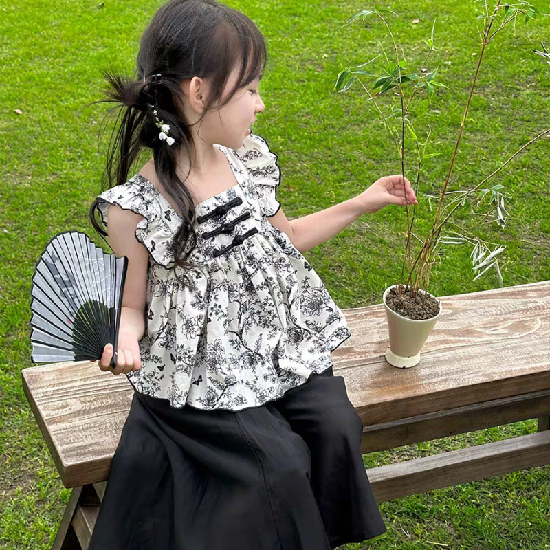 소녀의 새로운 중국 스타일 세트 어린이 여름 원피스 2024 새로운 서양 스타일 여름 소녀의 캐주얼 투피스 유행